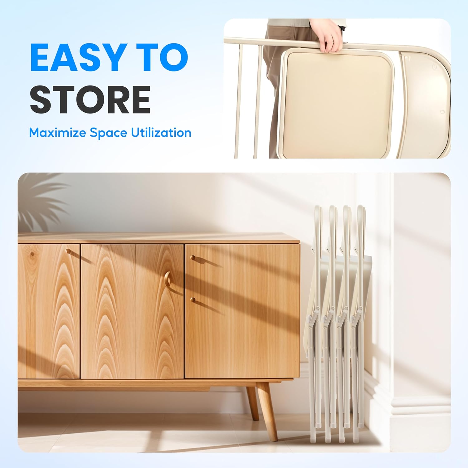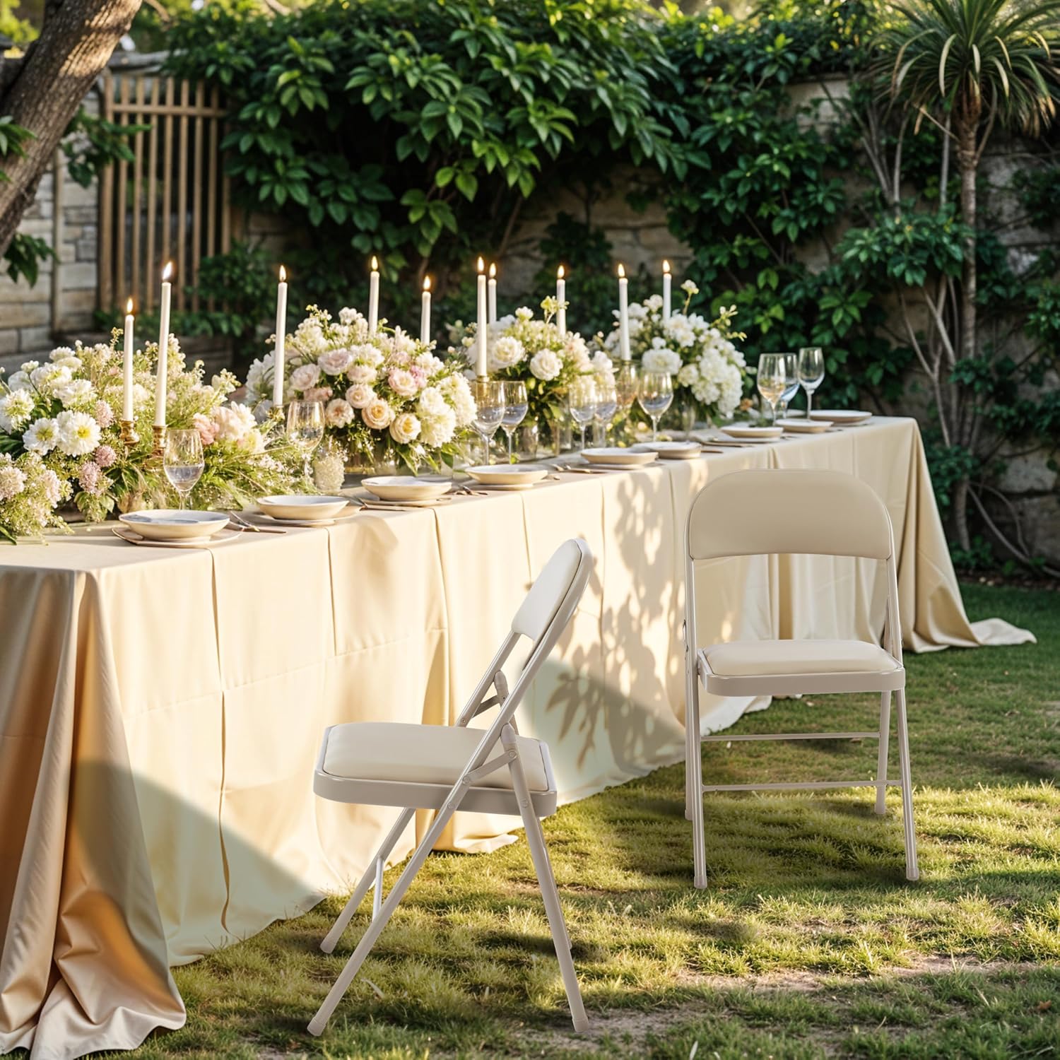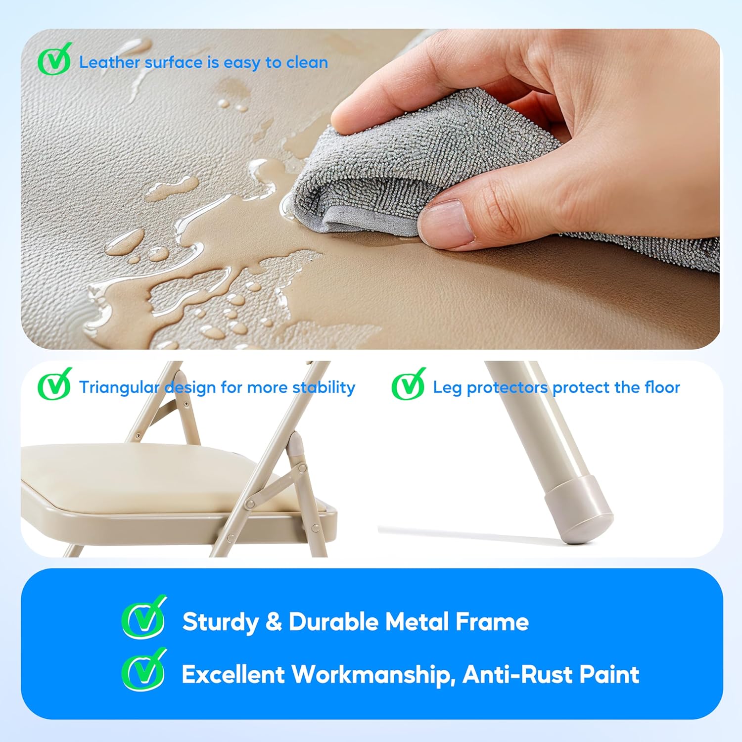 4 Pack Folding Chairs With Leather Padded Cushion Seats & Durable Metal Frame, Comfortable, Foldable, Portable, Commercial Event Seat, Indoor Outdoor For Parties, Home, Office, Kahki Khaki Leather