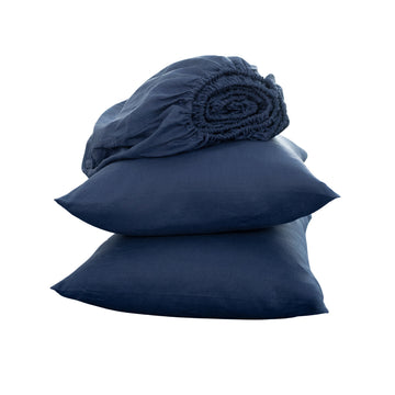 4 Pcs California King Bed Set, Premium Linen Bedding Sheets & Pillowcases, California King Bed In A Bag California King Navy Linen
