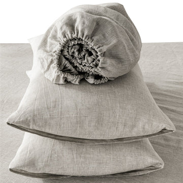 4 Pcs King Bedding Set, Premium Linen Bedding Sheets & Pillowcases, Bed In A Bag King Size Bed Set, Greige Bedding Sheet & Pillowcase Sets Greige Linen Linen