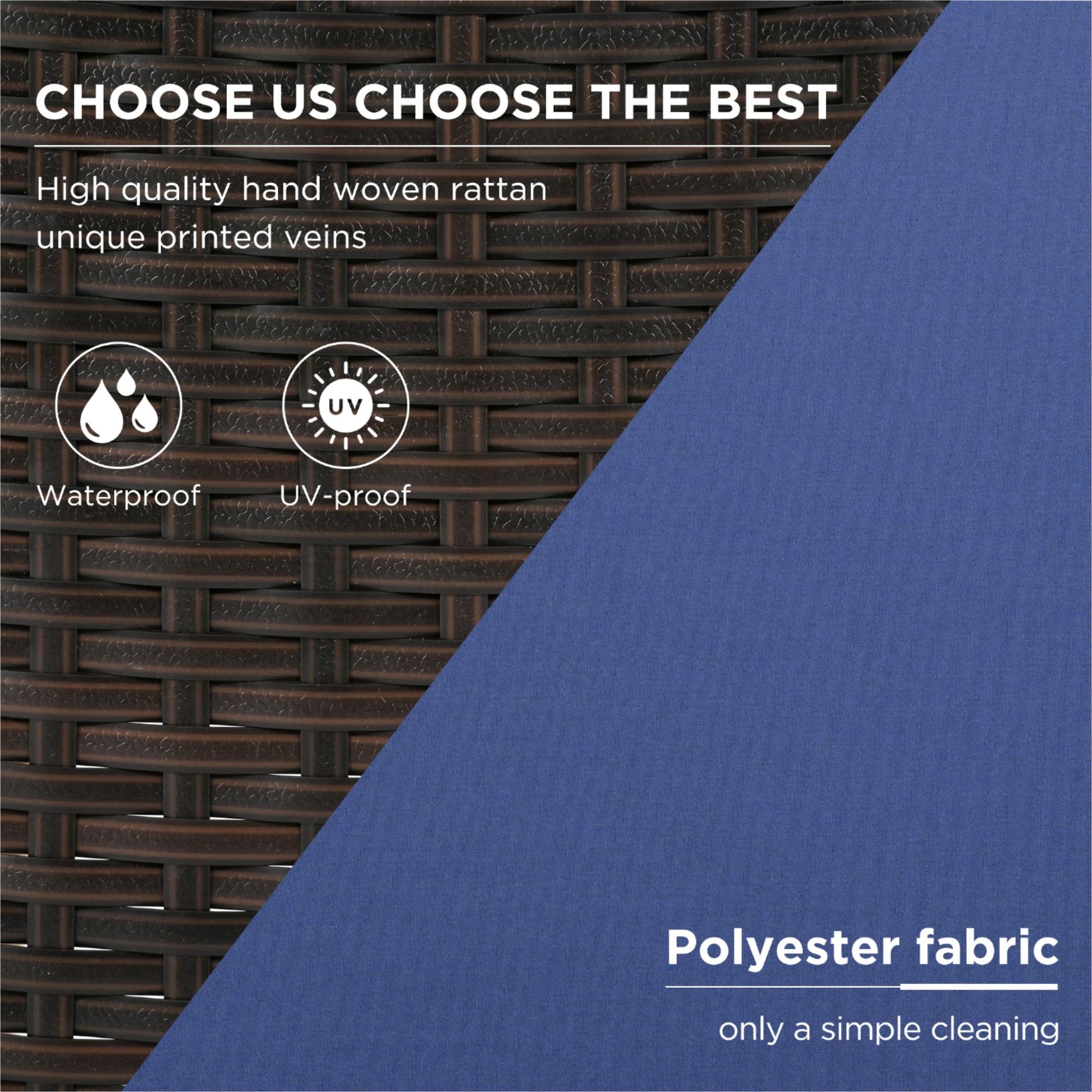 4 Piece Garden Furniture, Patio Seating Set, Pe Rattan Outdoor Sofa Set, Wood Table And Legs, Brown And Blue Yes Blue Shredded Polyurethane Foam Polyester,Wicker