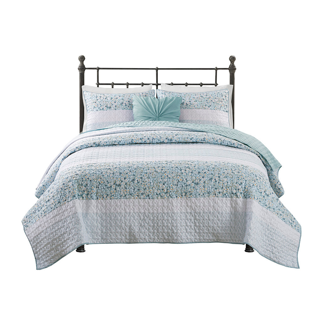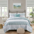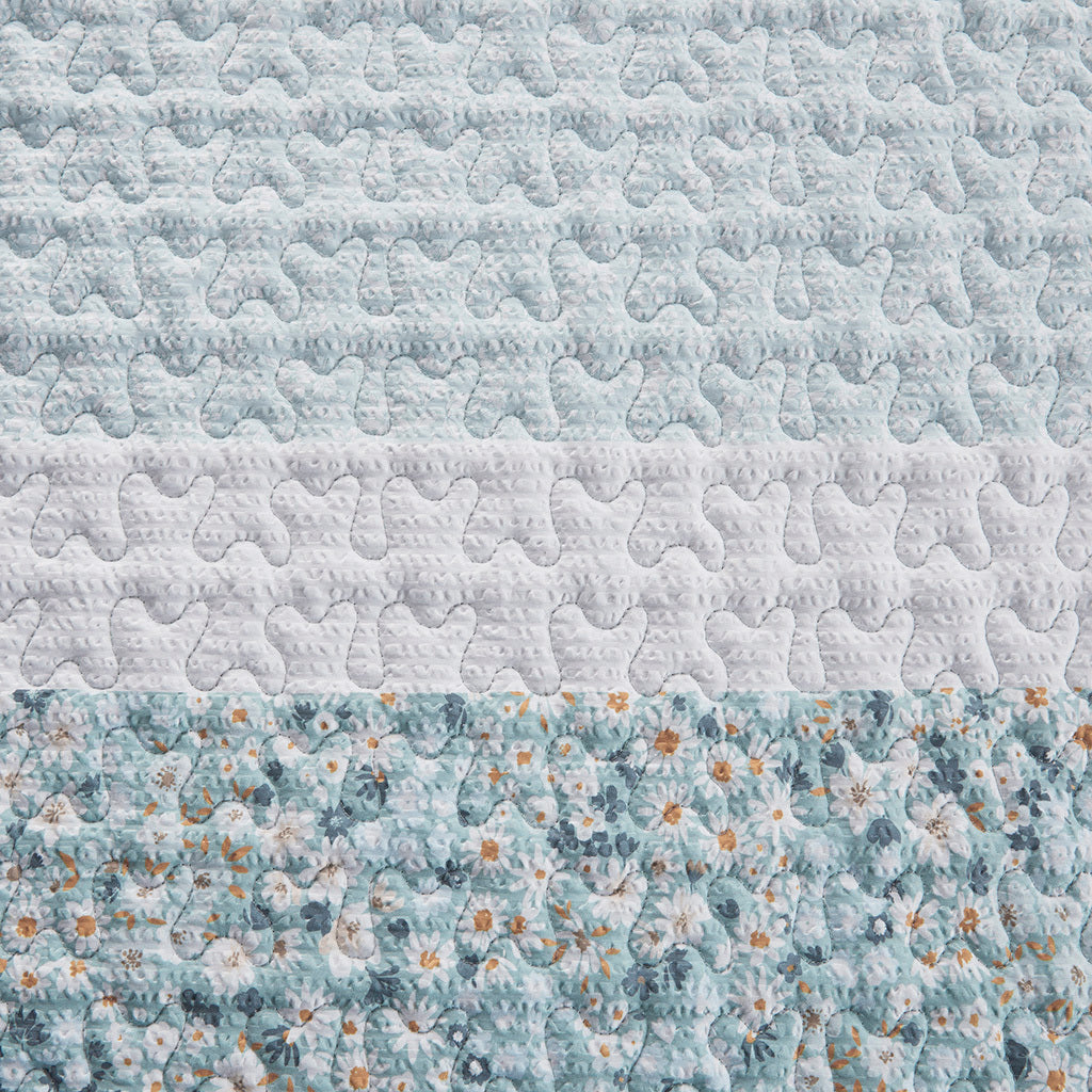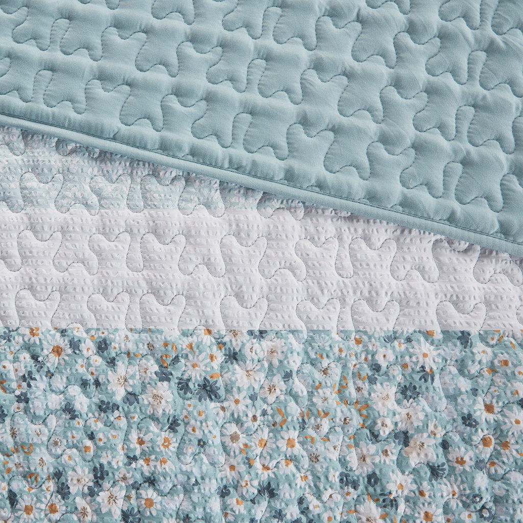 4 Piece Seersucker Quilt Set With Throw Pillow Aqua Polyester