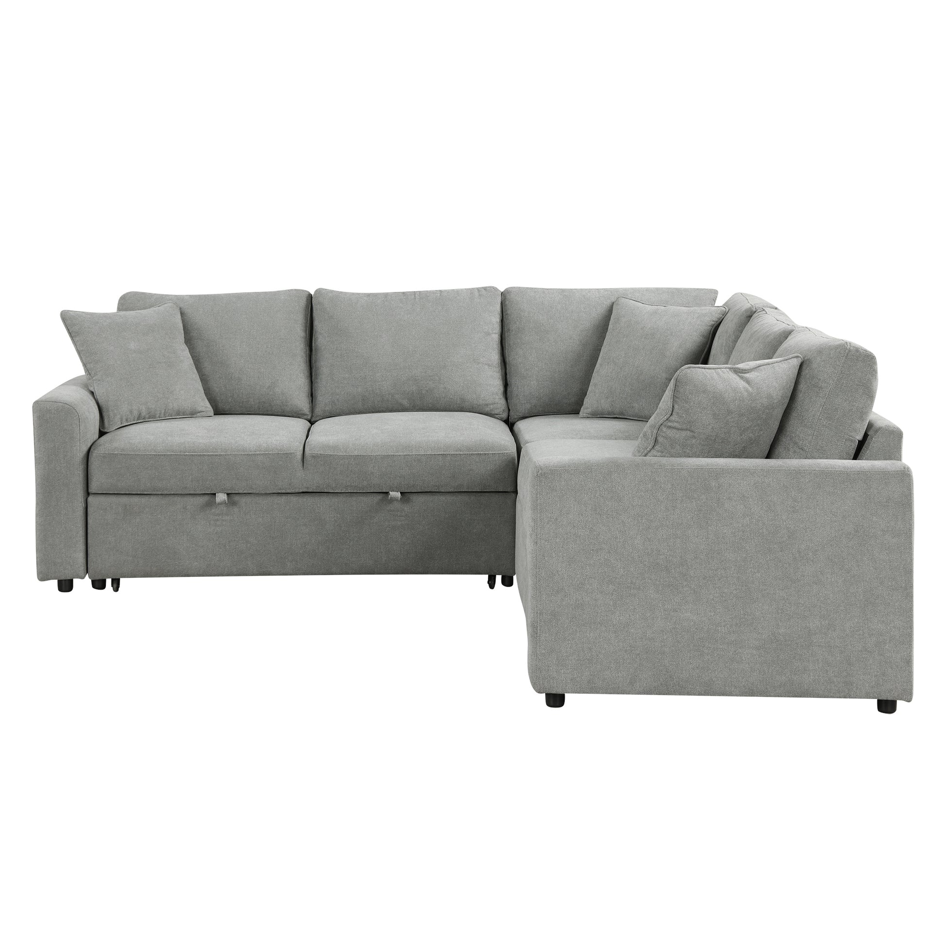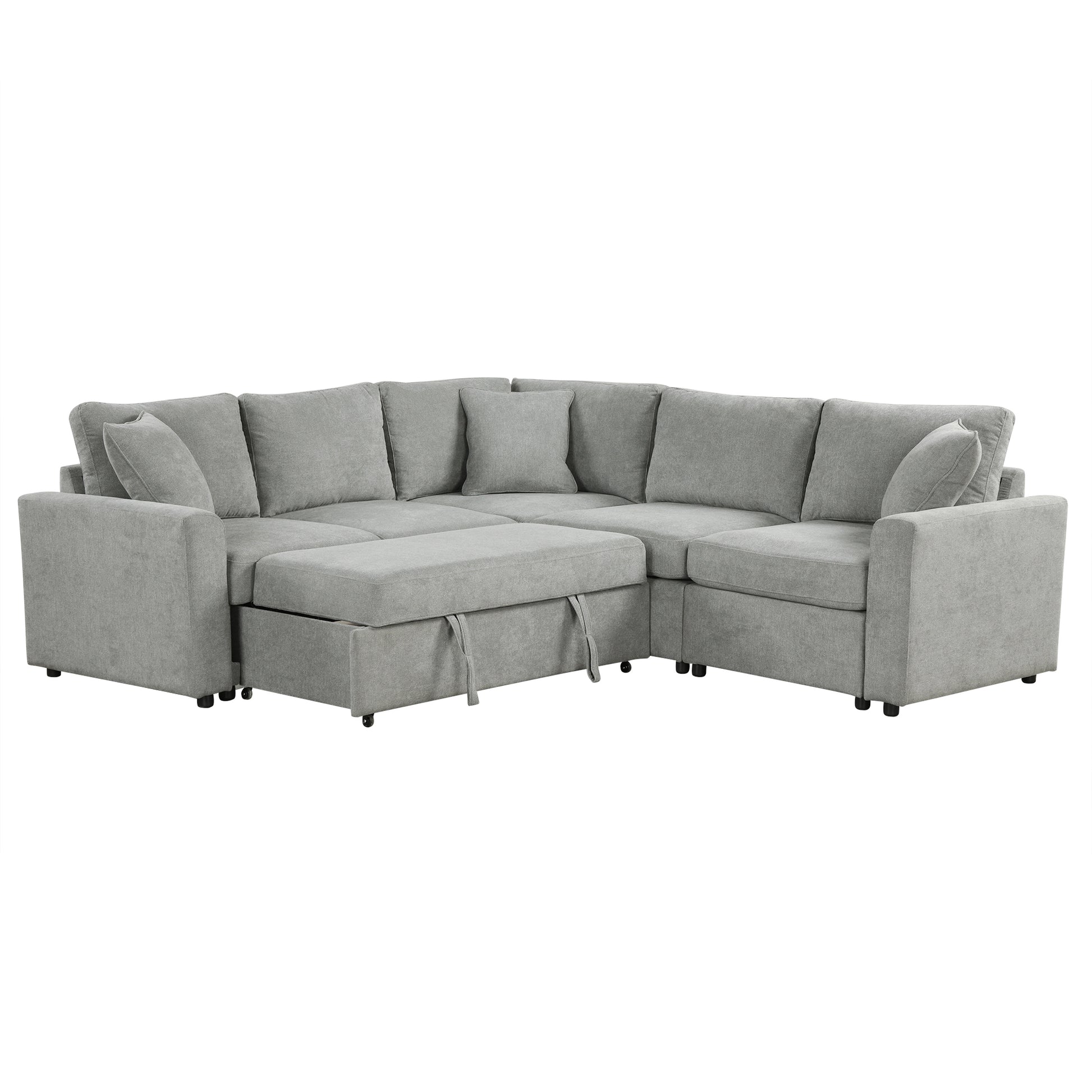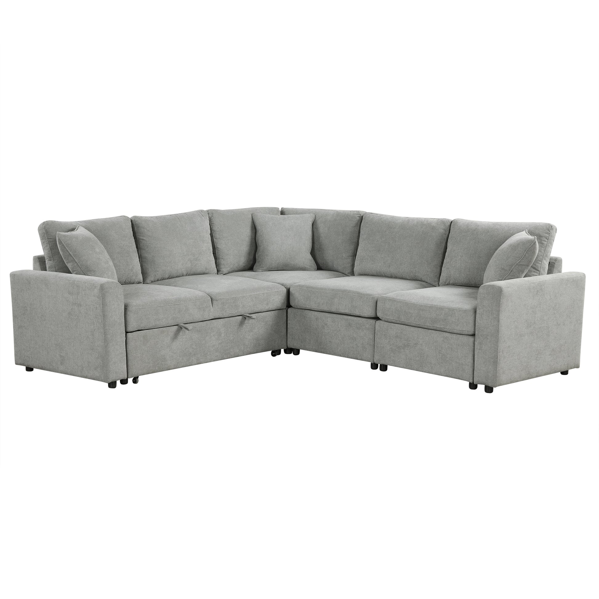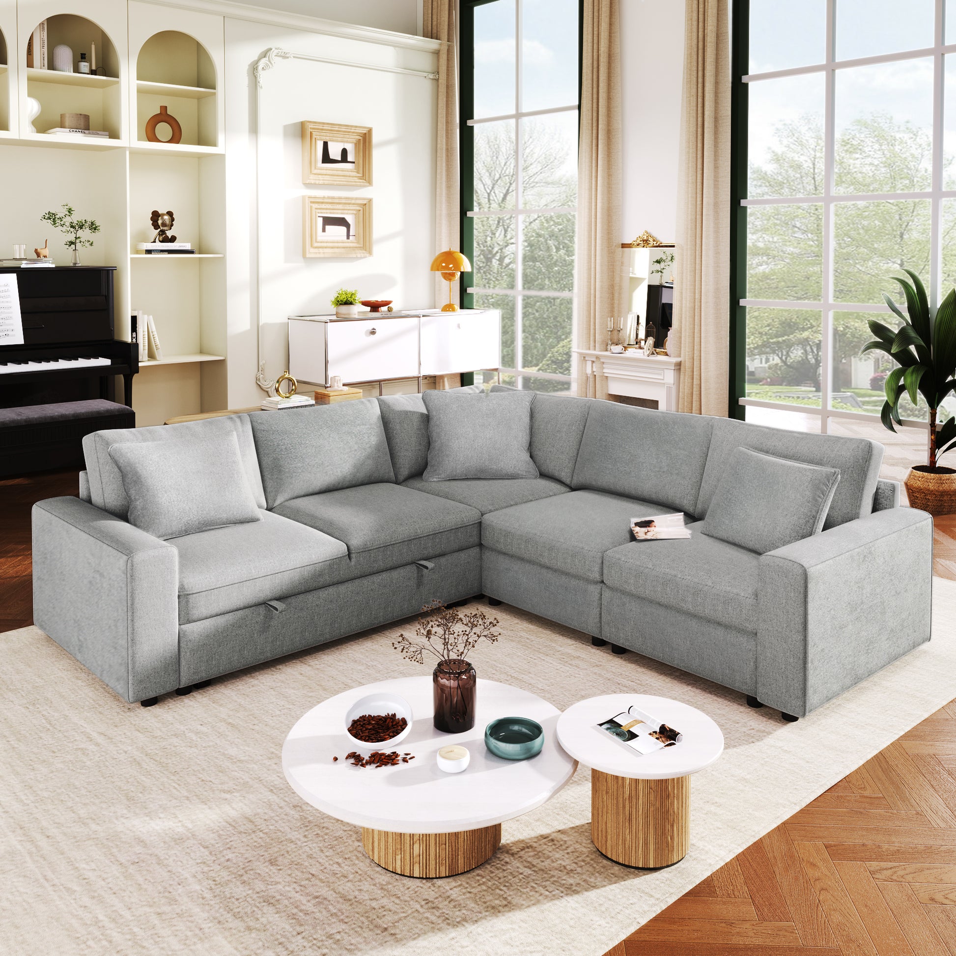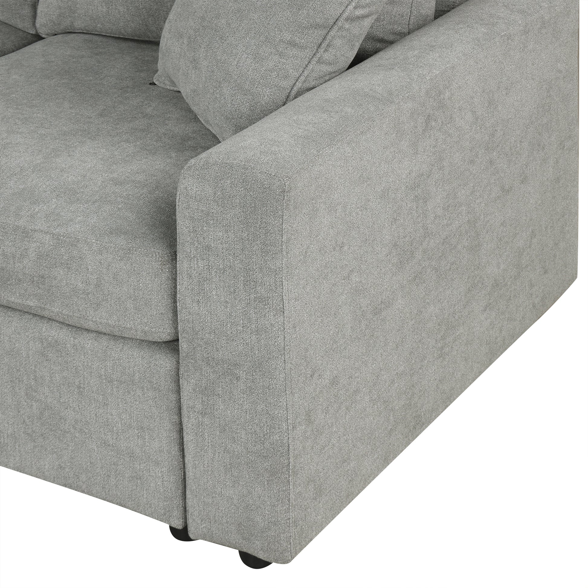 4 Seat L Shaped Modular Sofa With Thick Backrest And Seat Cushions, Suitable For Living Rooms, Offices Gray Wood Polyester 4 Seat