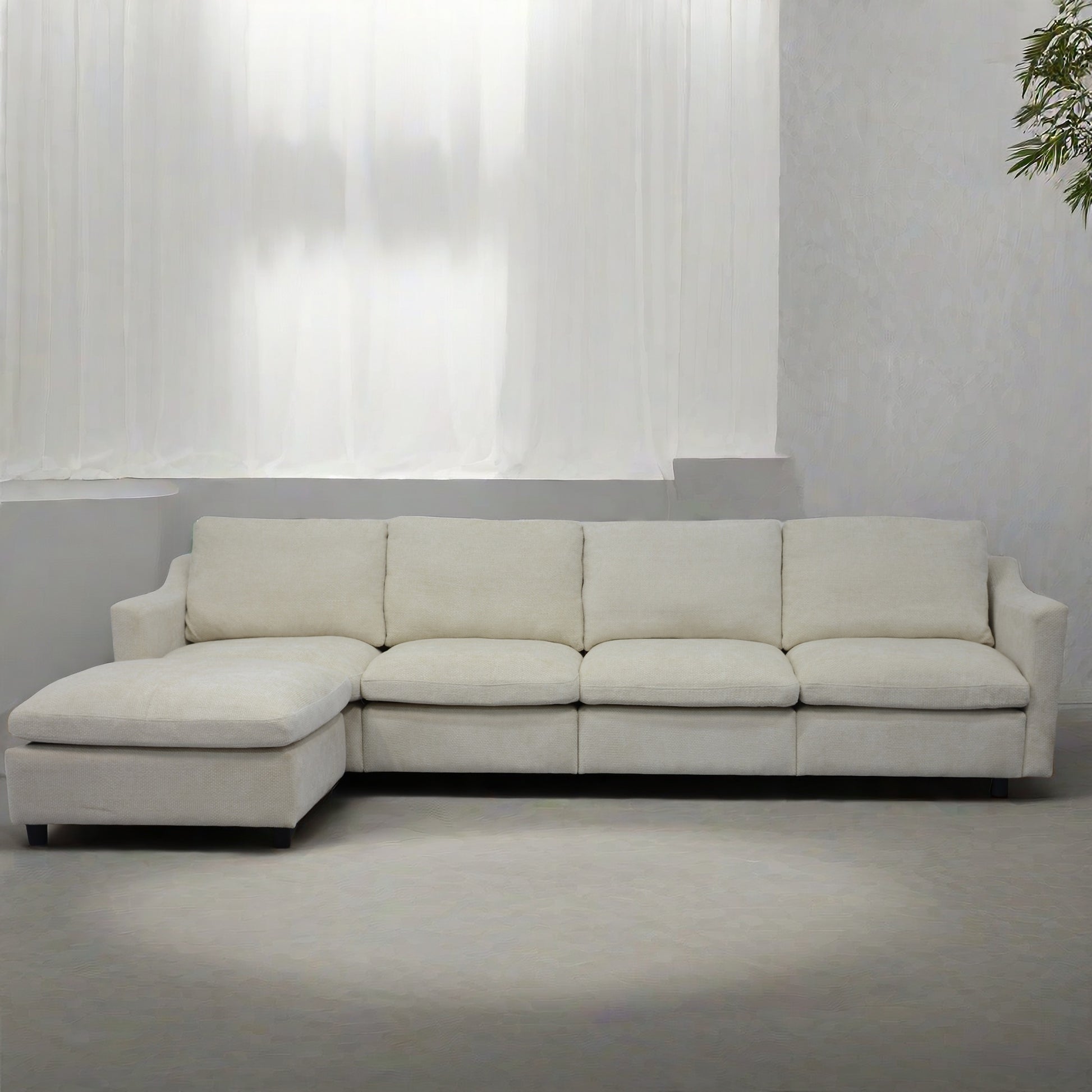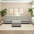 4 Seater Modern Beige Fabric Modular Cloud Sofa With Ottoman, Armrest Pockets And 4 Pillows,Minimalist Style Couch For Living Room, Apartment, Office,2 Colors Beige Linen Wood Primary Living Space