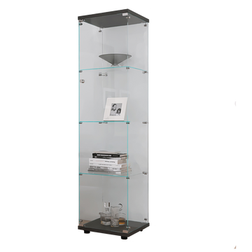 4 Shelves Glass Cabinet Glass Display Cabinet With One Door, Black Black Glass