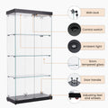 4 Tier Glass Display Cabinet, Double Door Glass Cabinet, Four Partitions, Two Locks, Floor Standing Storage Cabinet For Living Room, Bedroom, Showroom And Office, Black, 31.5"L X 14.2"W X 66.3"H Black Glass