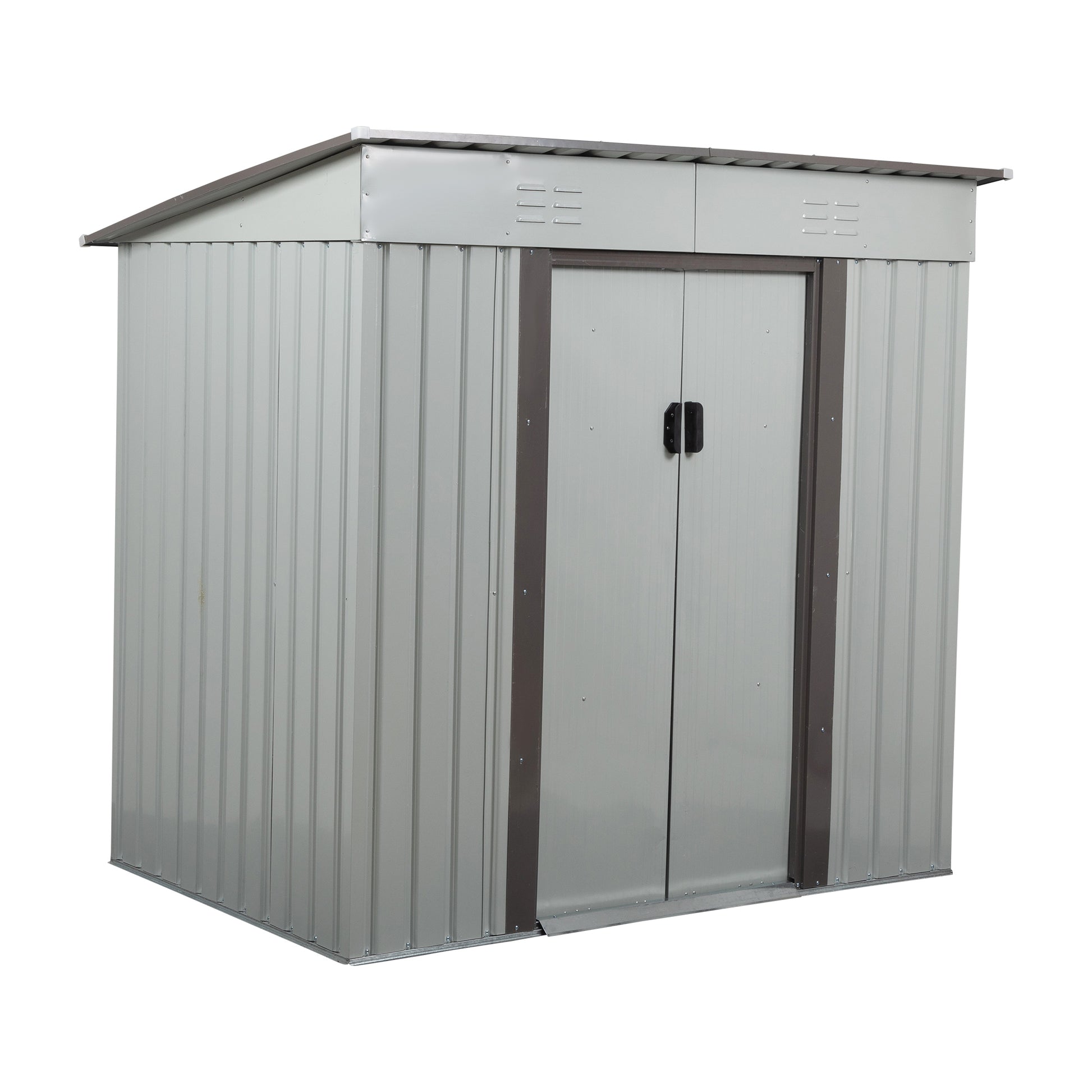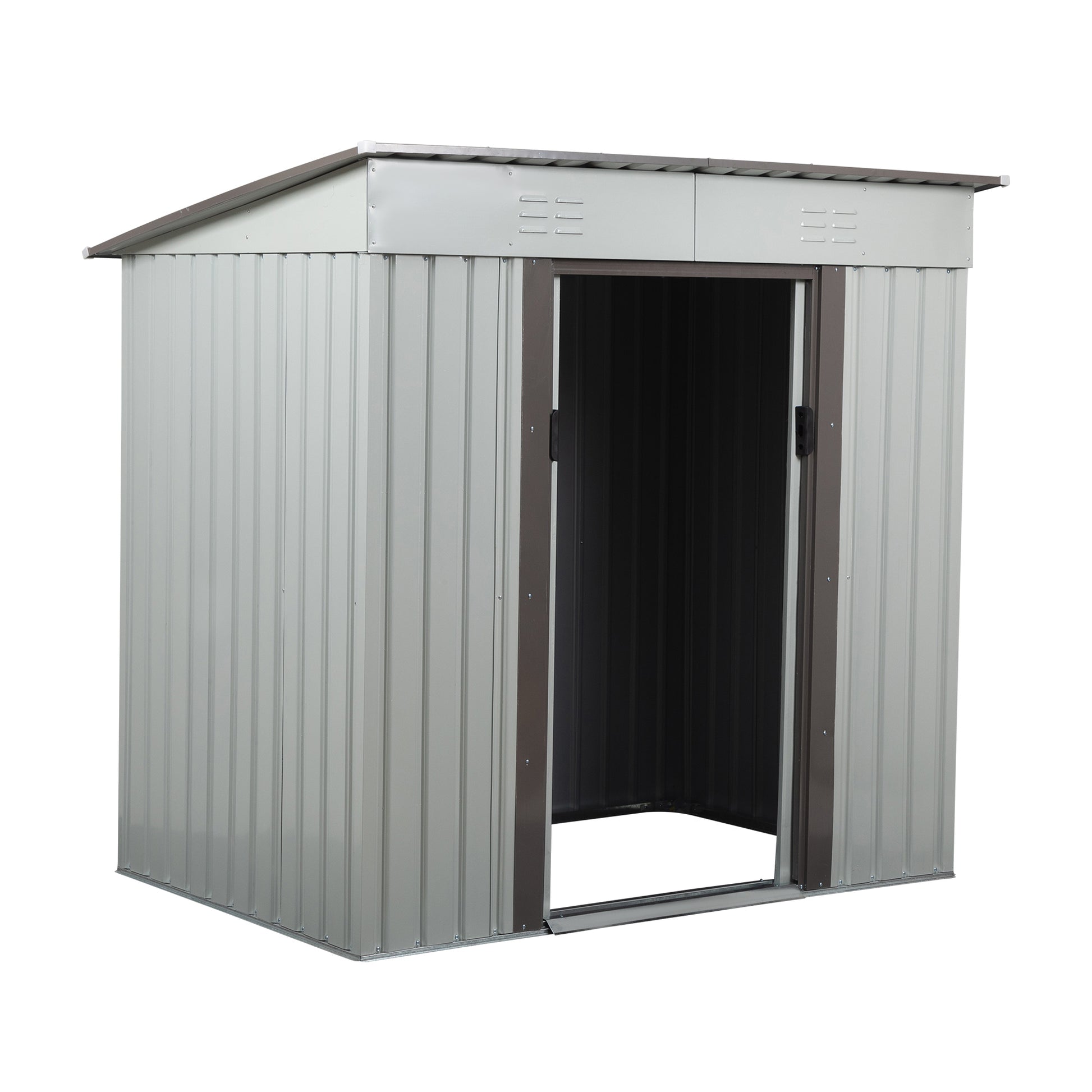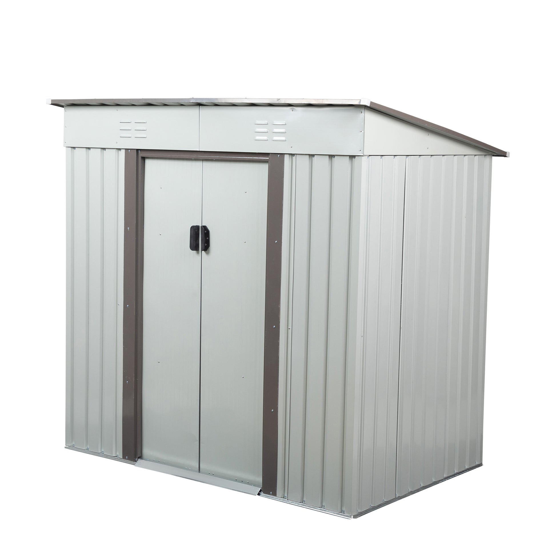 4 X 6 Ft Outdoor Storage Shed, Patio Steel Metal Shed W Lockable Sliding Doors, Vents, House For Backyard Garden Patio Lawn White Metal