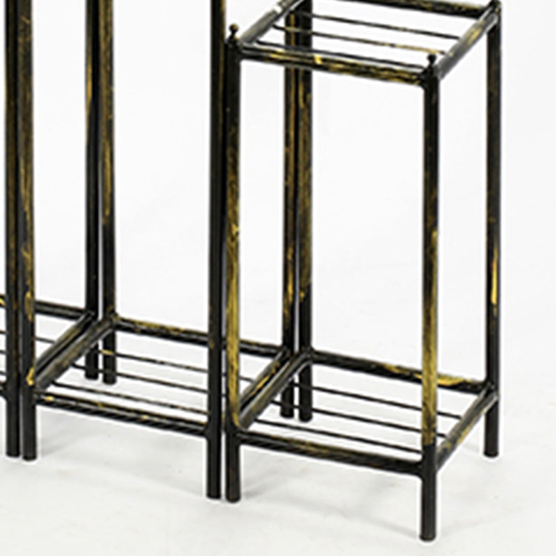 40, 29, 17 Inch 2 Tier Square Metal Plant Stand, Slatted, Set Of 3, Black, Gold Gold Blue Metal