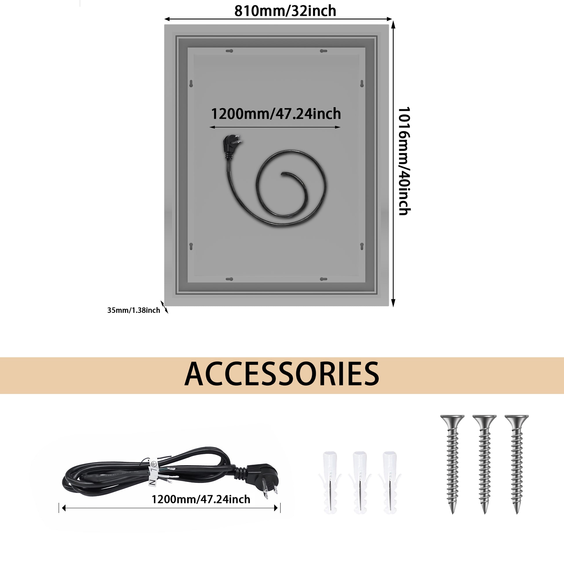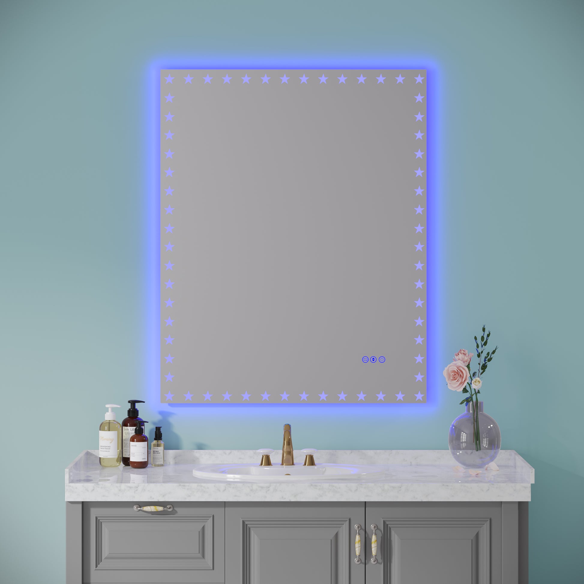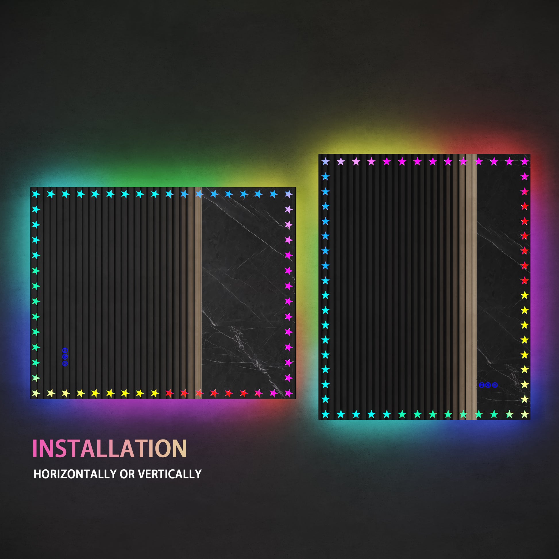 40 32 Inch Led Bathroom Mirror With Lights Backlit Rgb Color Changing Lighted Mirror For Bathroom Wall Dimmable Anti Fog Memory Rectangular Vanity Mirror Rgb Multicolor Backlit Front Lighted White Aluminium