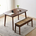 40 X 12 "Wooden Bench, Walnut Color, Hand Woven Cane Seat, Solid Wood Bench For Entrance, Living Room, Kitchen And Dining Room, Long Bench, 18" High Walnut Rubber Wood