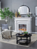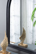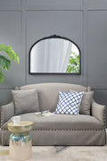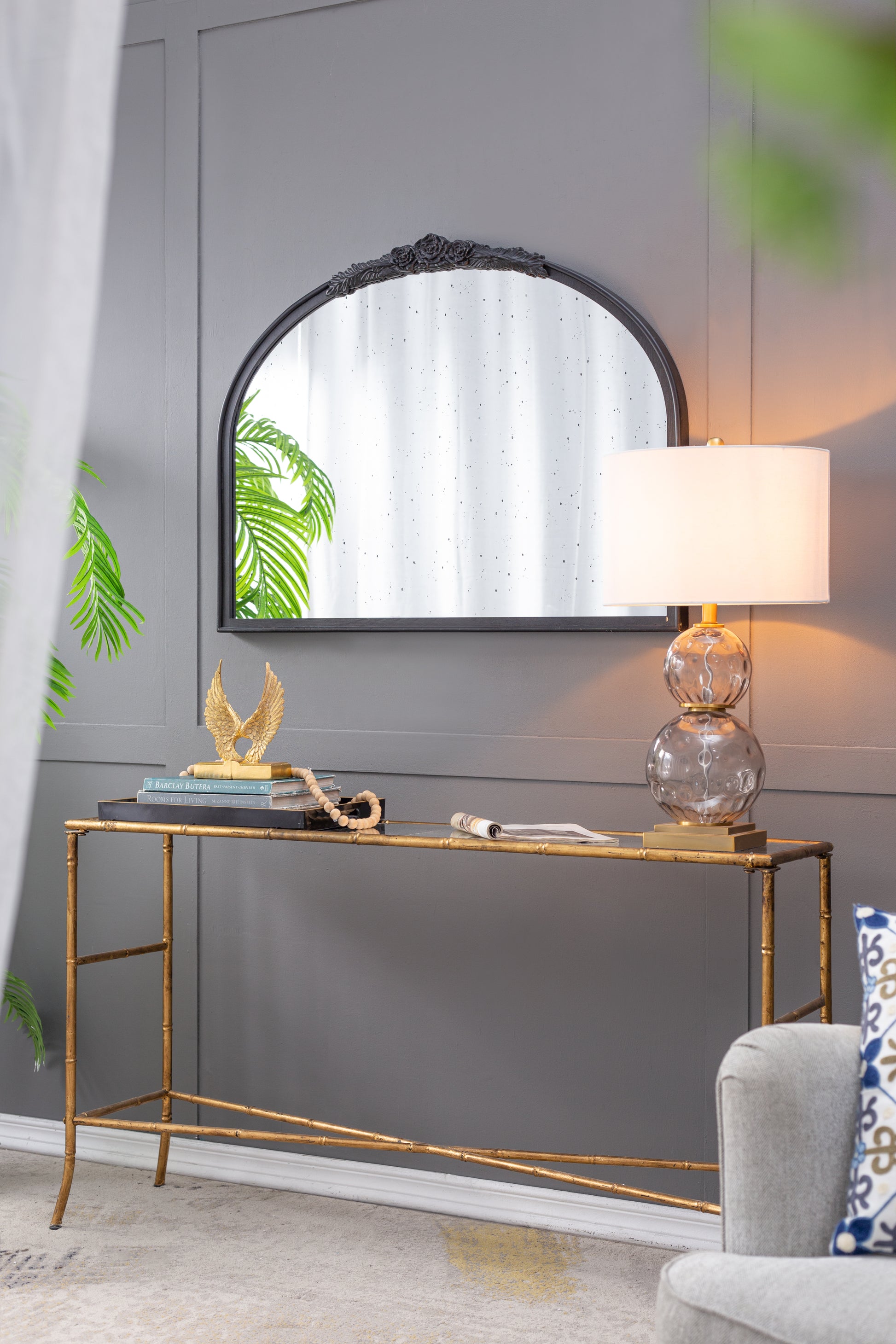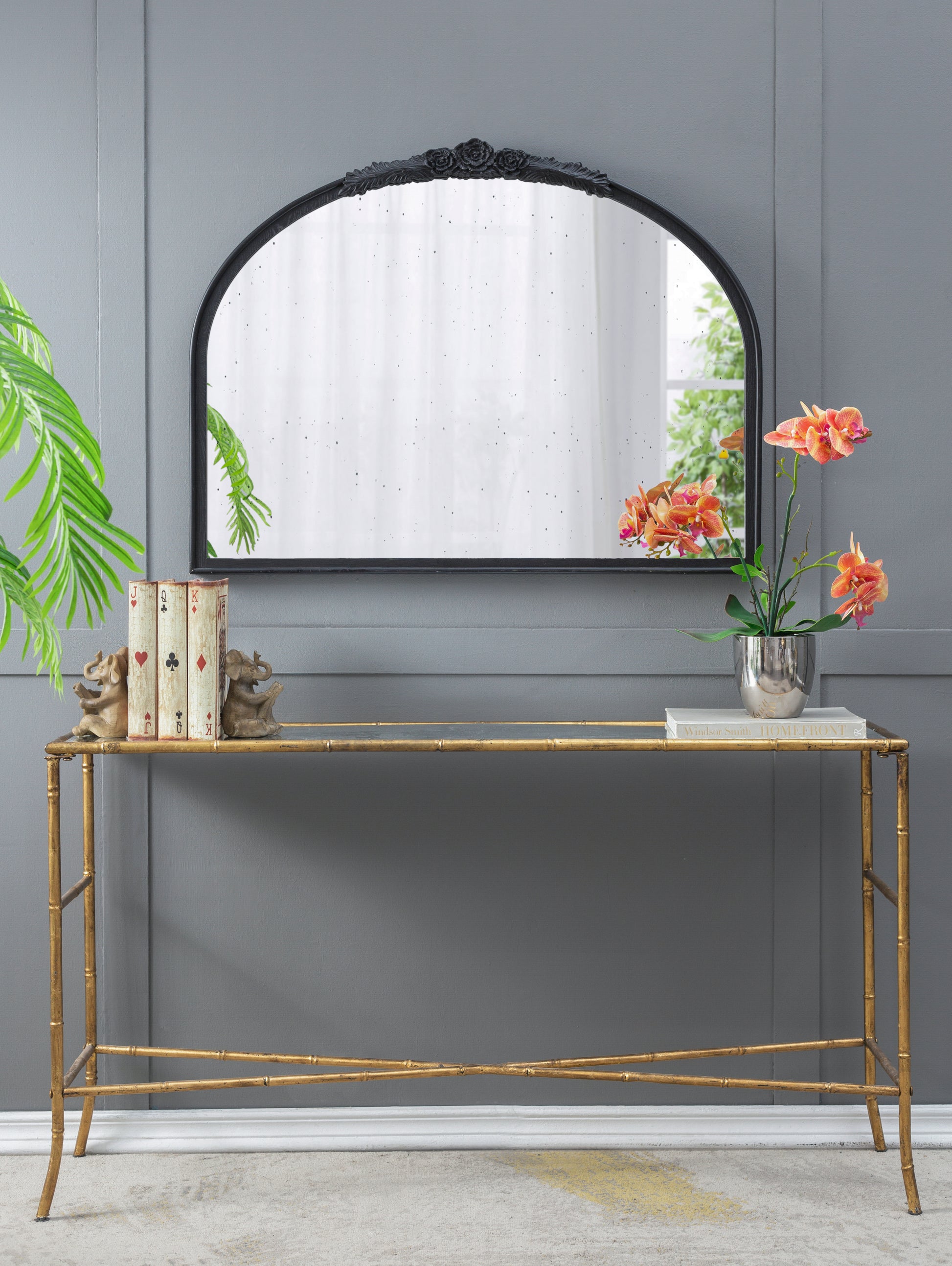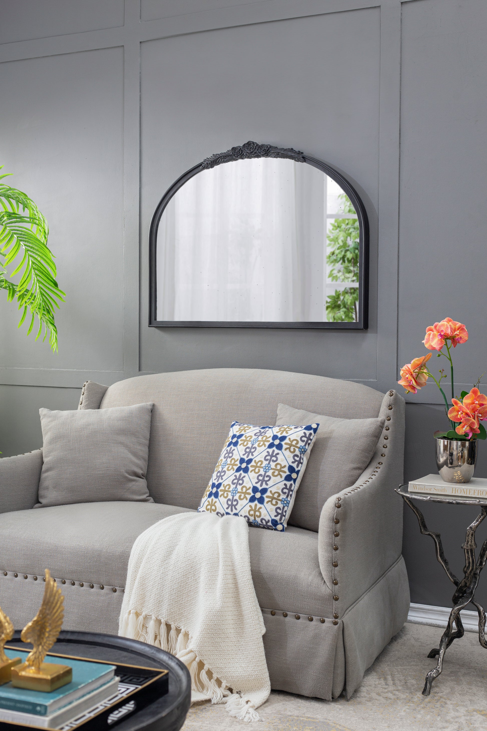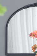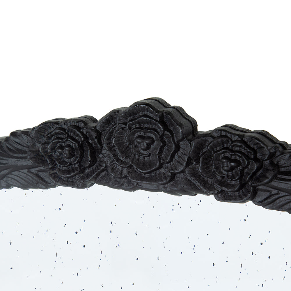 40" X 30" Hand Carved Rose Antique Mirror Frame, Wood Arch Mirror Wall Decor For Living Room, Bathroom, Entryway Black Black Mdf Glass