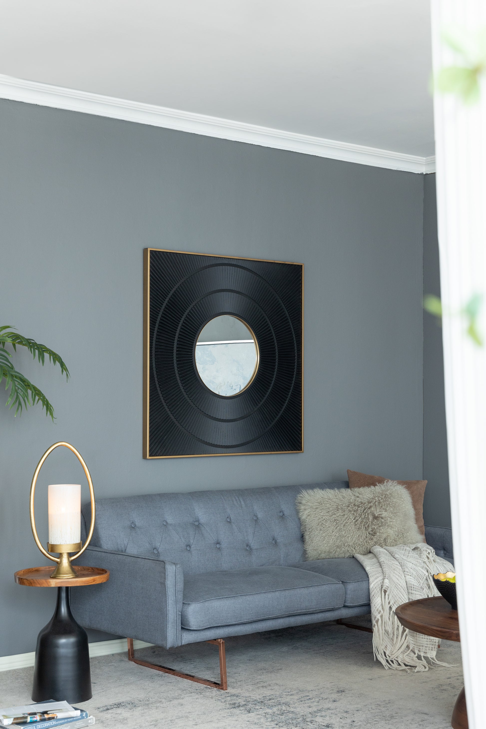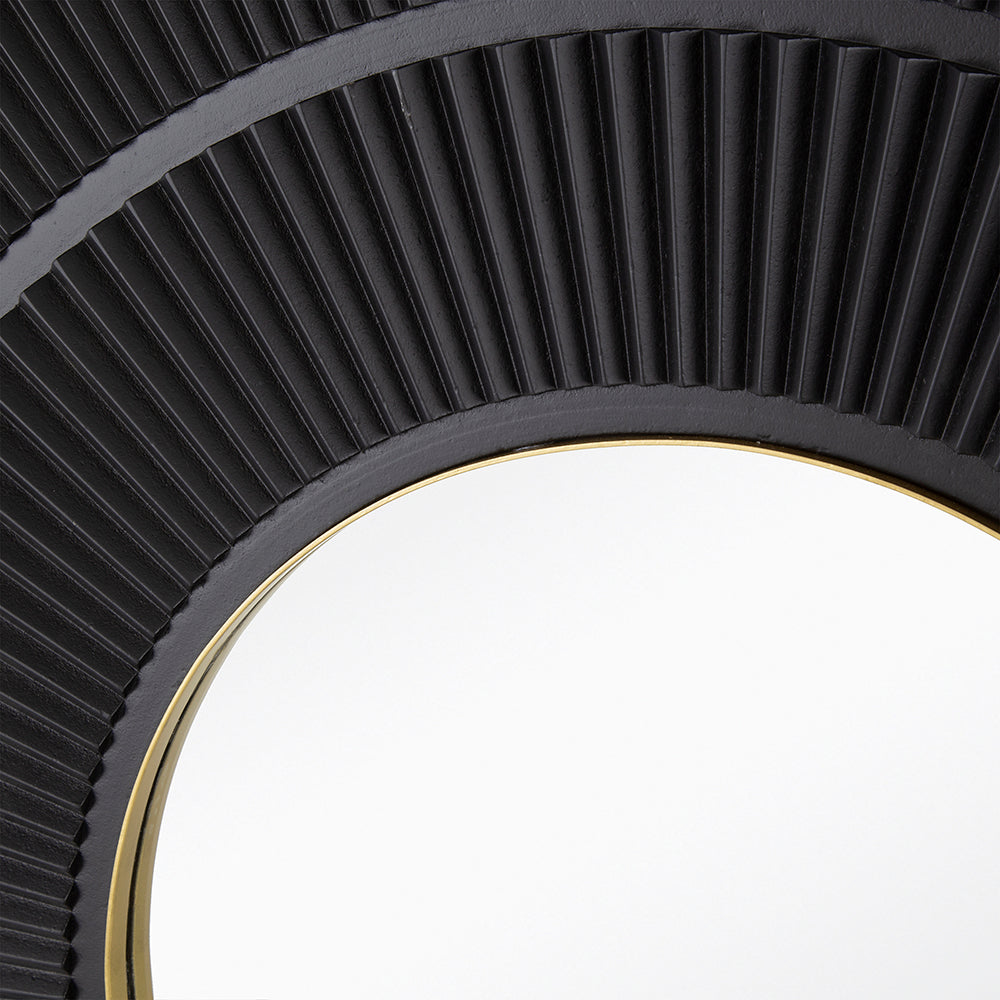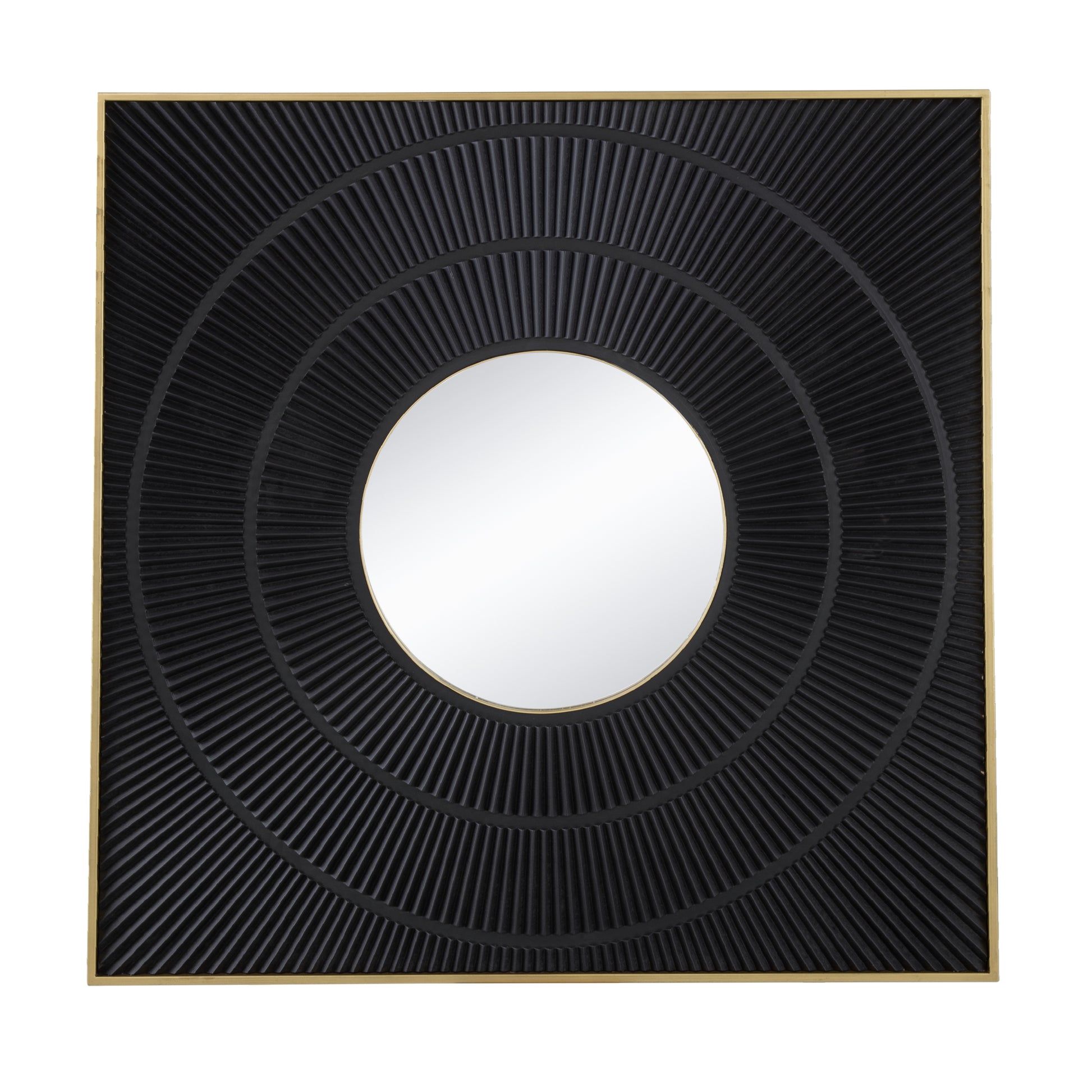 40" X 40" Square Carved Mirror With Pleated Design With Gold Iron Frame, Neutral Colorway Wall Decor For Living Room Bathroom Entryway Black Mdf Glass