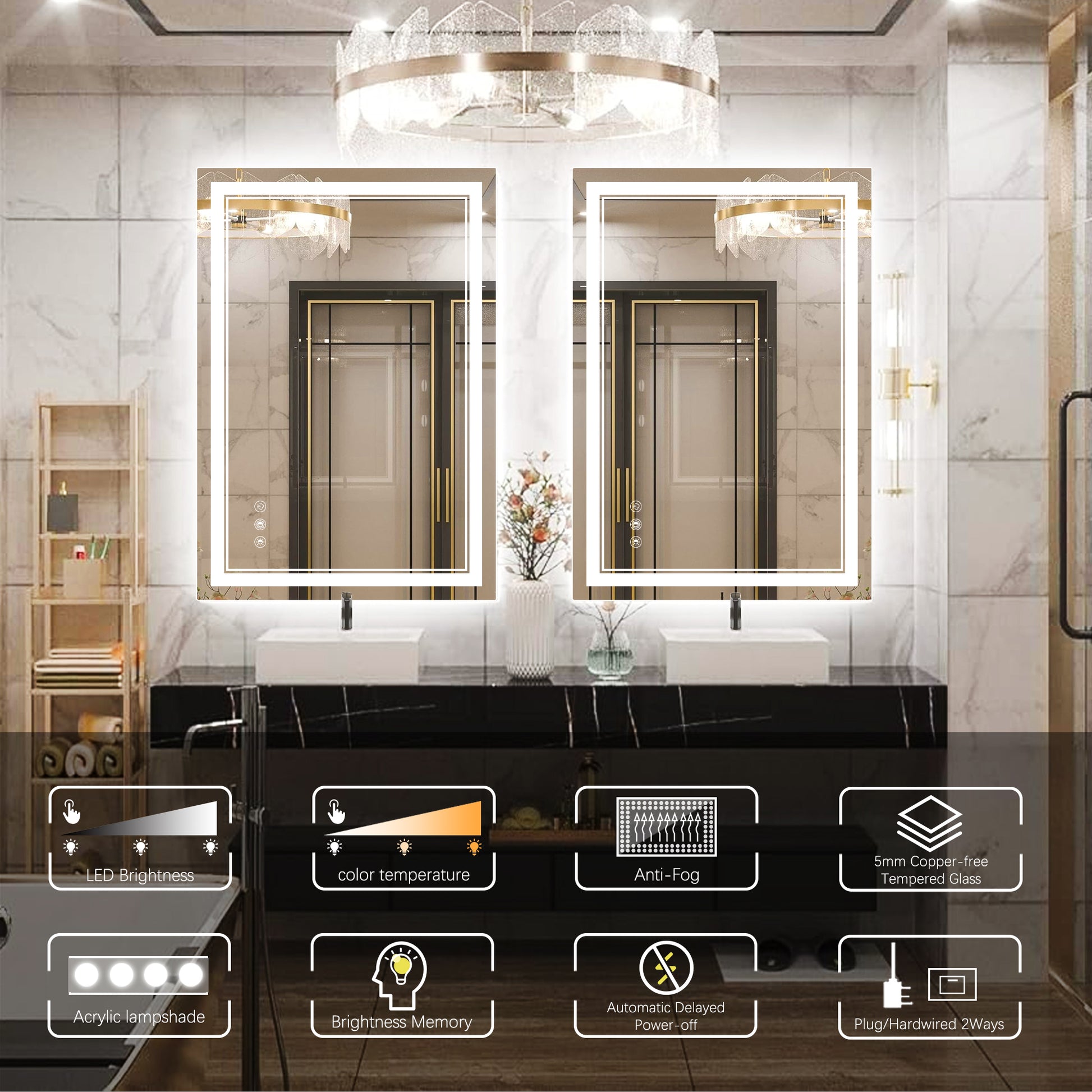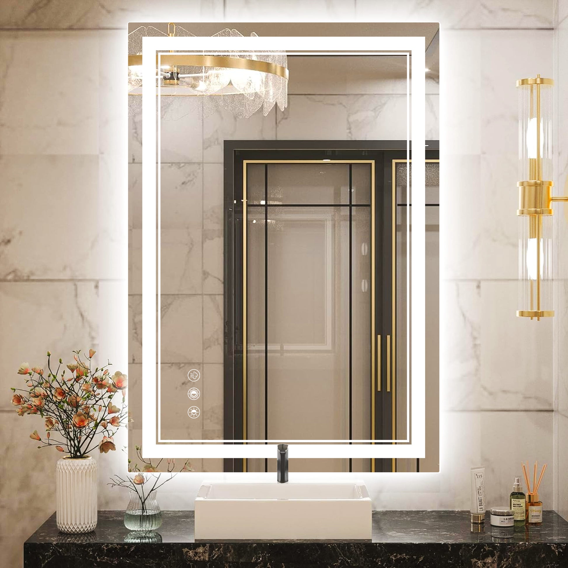 40"X24" Led Bathroom Mirror Adjustable Dimming & 3 Color Temperatures, Anti Fog Feature White Black Aluminium,Tempered Glass