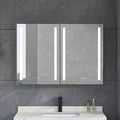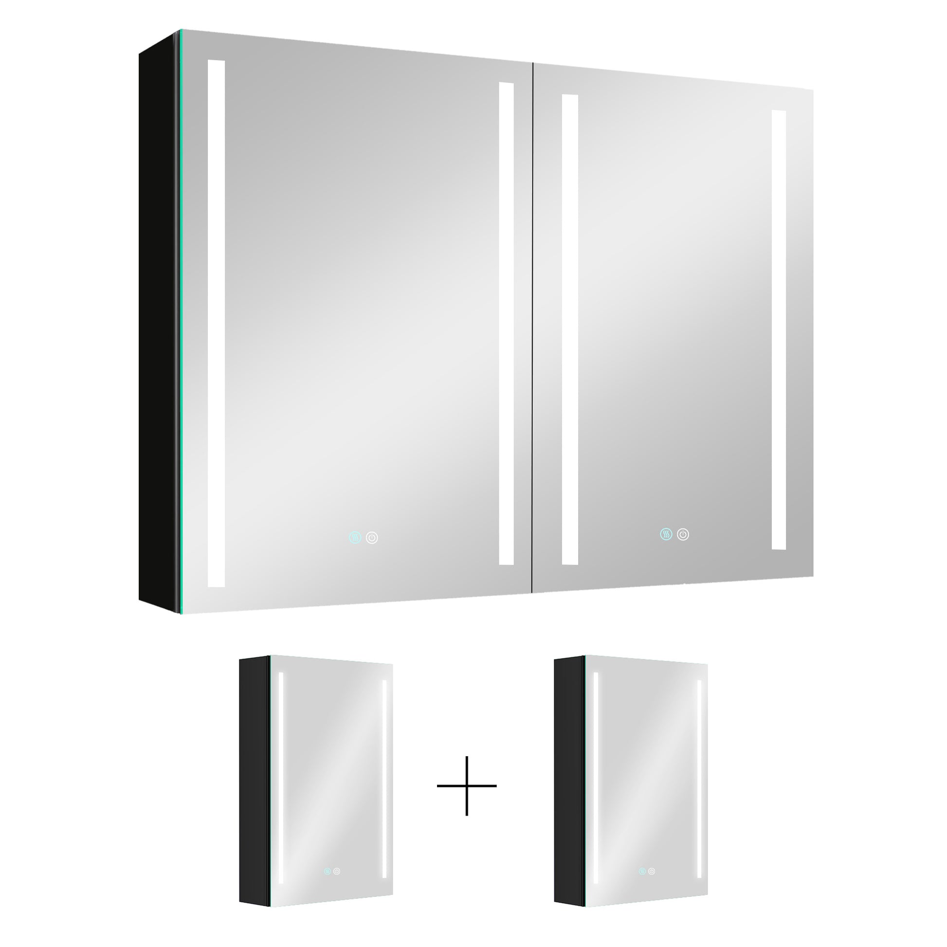 40X30 Inch Led Bathroom Medicine Cabinet Surface Mount Double Door Lighted Medicine Cabinet, Medicine Cabinets For Bathroom With Mirror Defogging, Dimmer Black Black Modern Aluminium