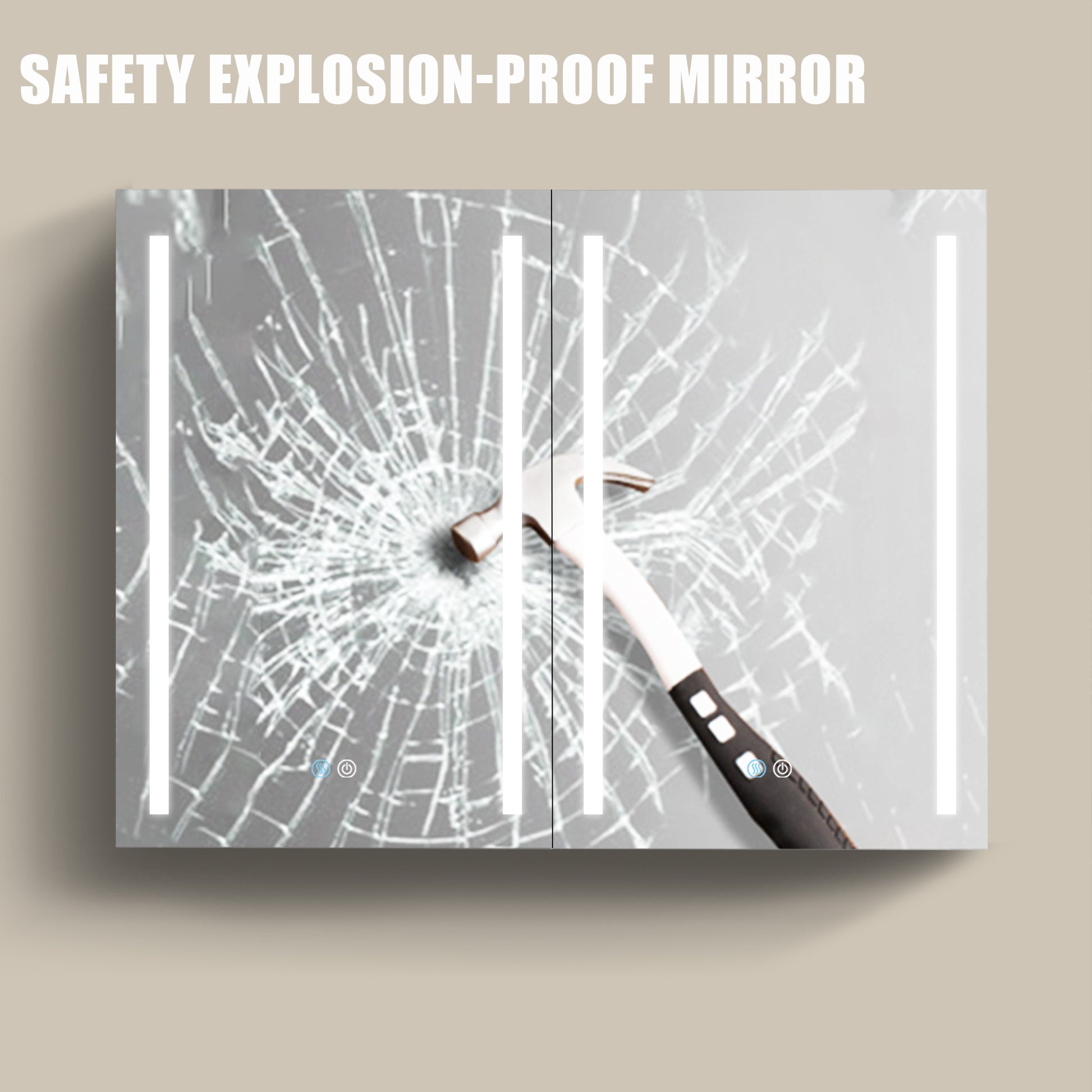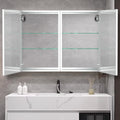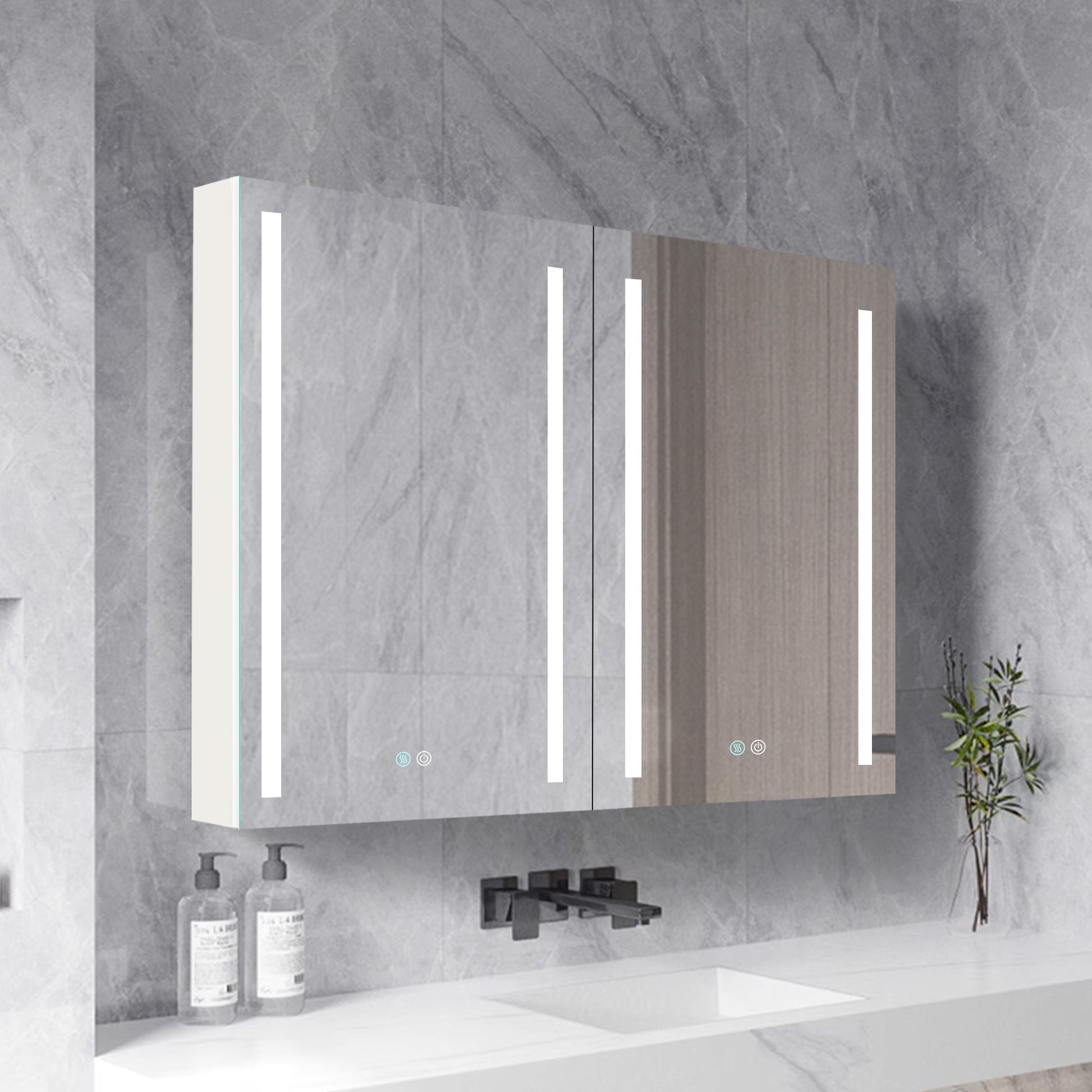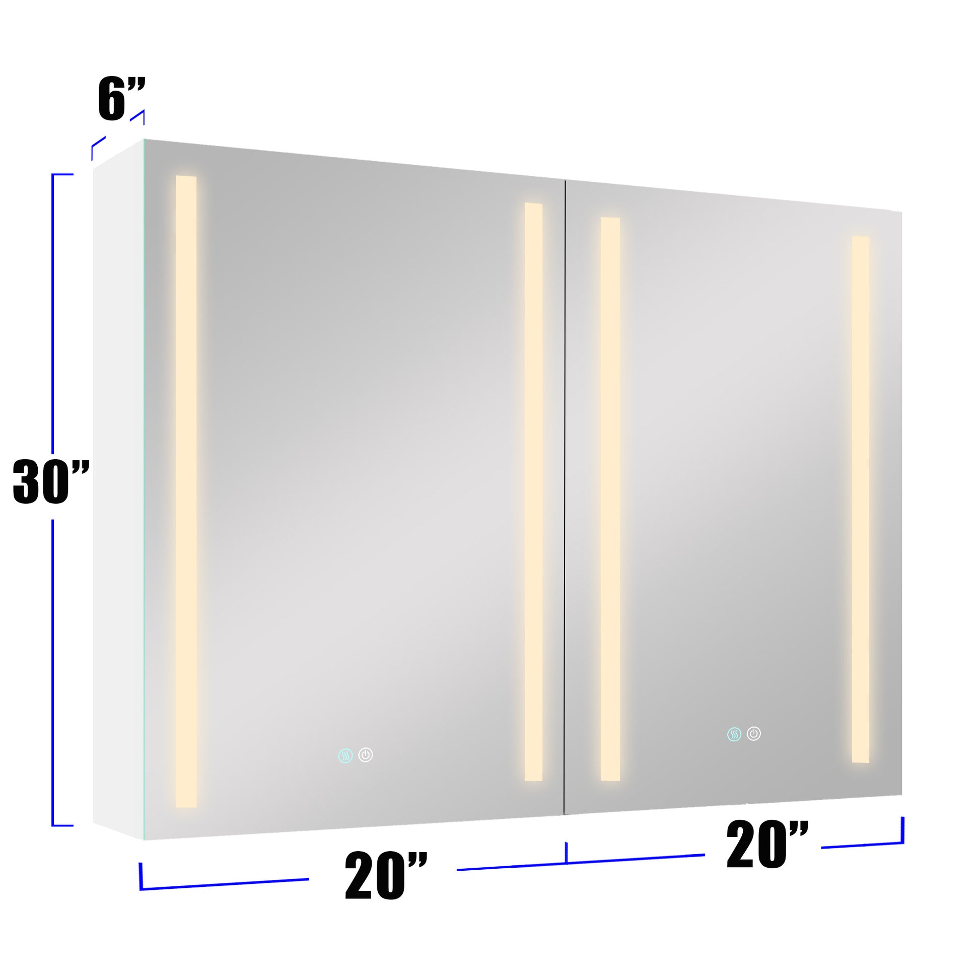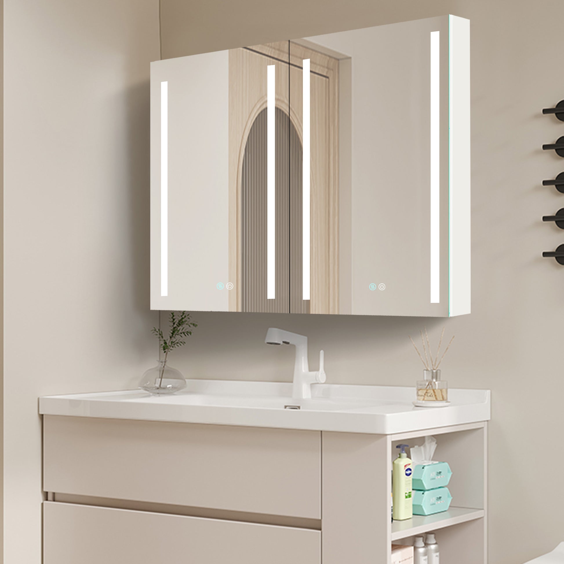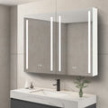40X30 Inch Led Bathroom Medicine Cabinet Surface Mount Double Door Lighted Medicine Cabinet, Medicine Cabinets For Bathroom With Mirror Defogging, Dimmer White White Modern Aluminium