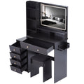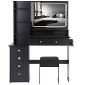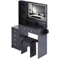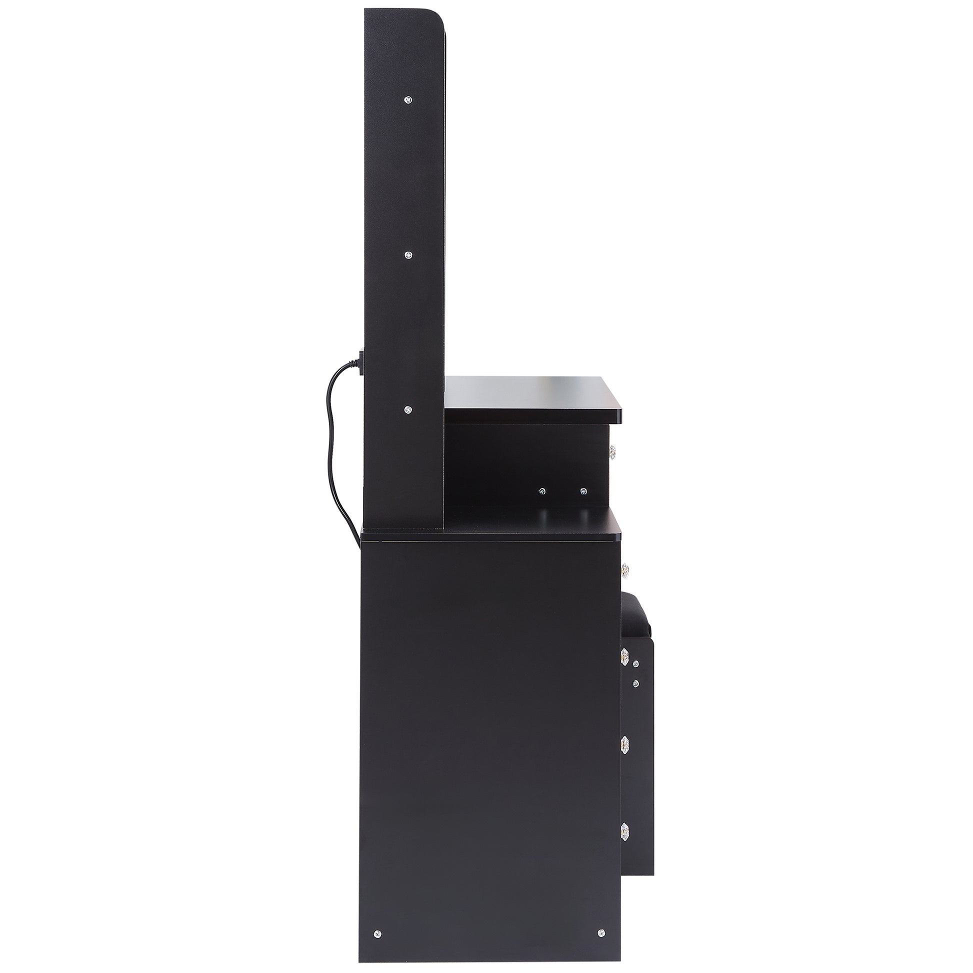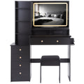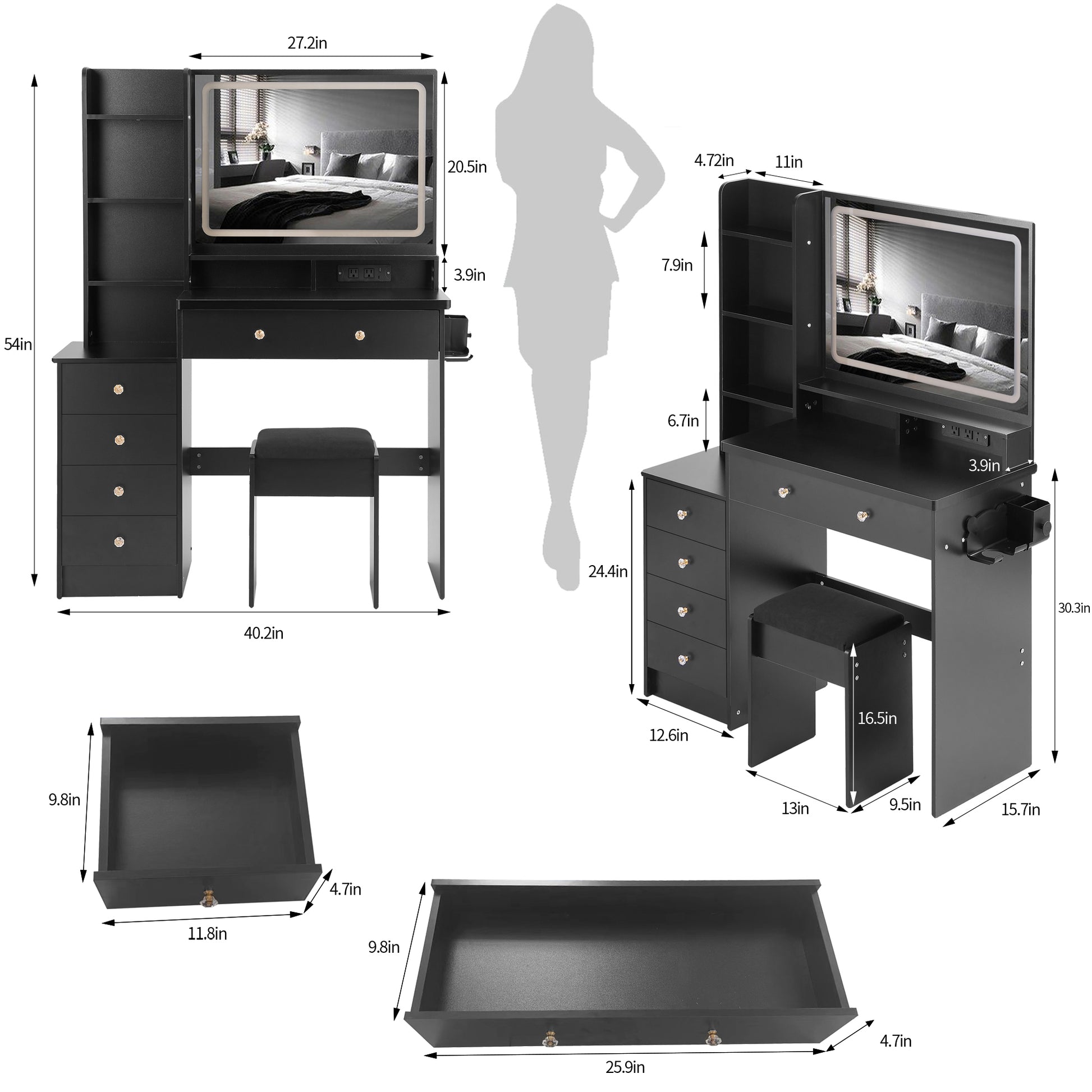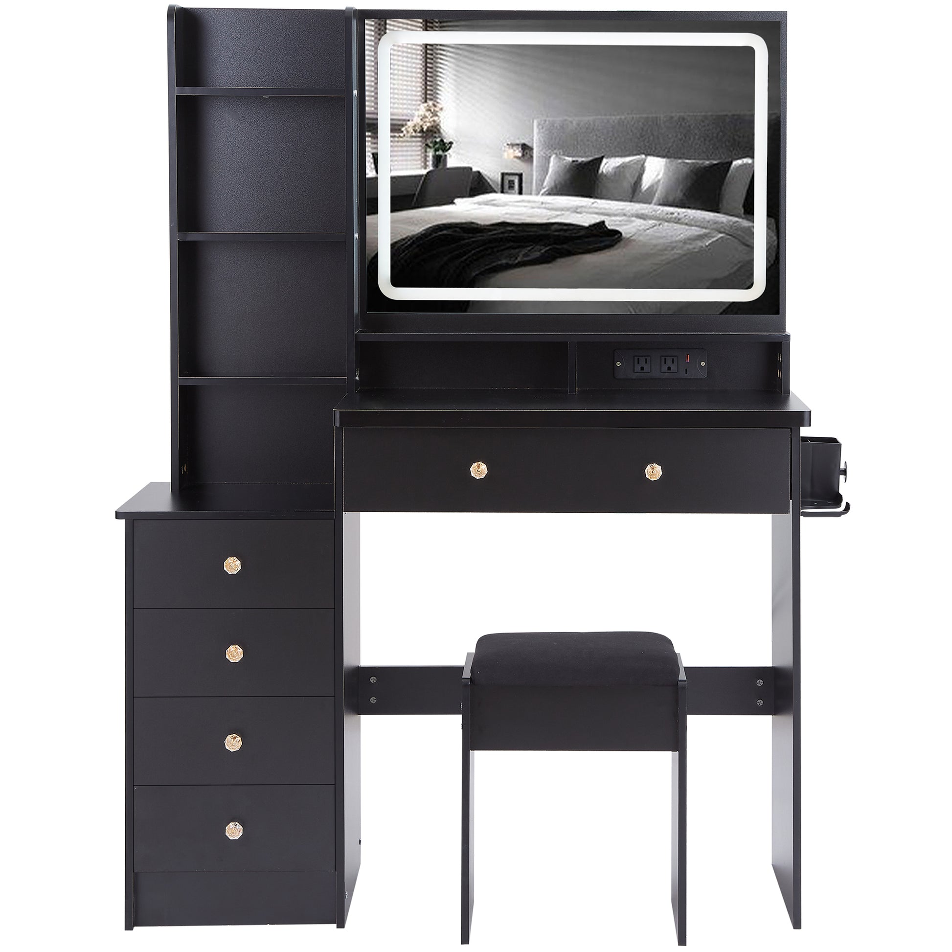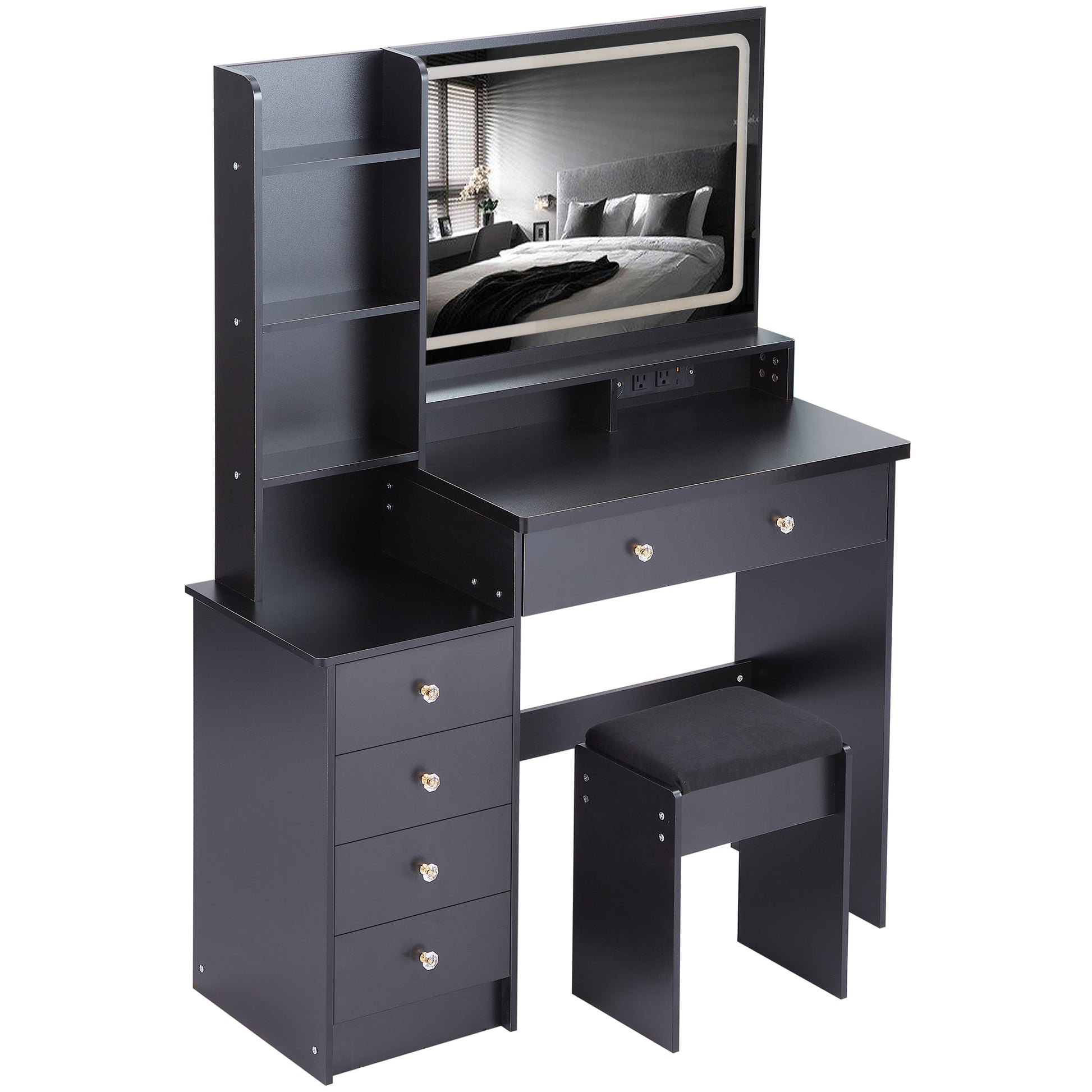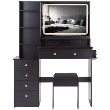 41" Large Size Left Bedside Cabinet Vanity Table Cushioned Stool Dresser Set, 2 Ac 2 Usb Power Station, Hair Dryer Stand, Extra Large Touch Control Led Mirror, 3 Color Switch, Epa, Gcc, Ul