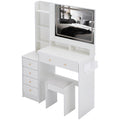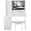 41" Large Size Left Bedside Cabinet Vanity Table Cushioned Stool Dresser Set, 2 Ac 2 Usb Power Station, Hair Dryer Stand, Extra Large Touch Control Led Mirror, 3 Color Switch, Epa, Gcc, Ul
