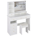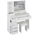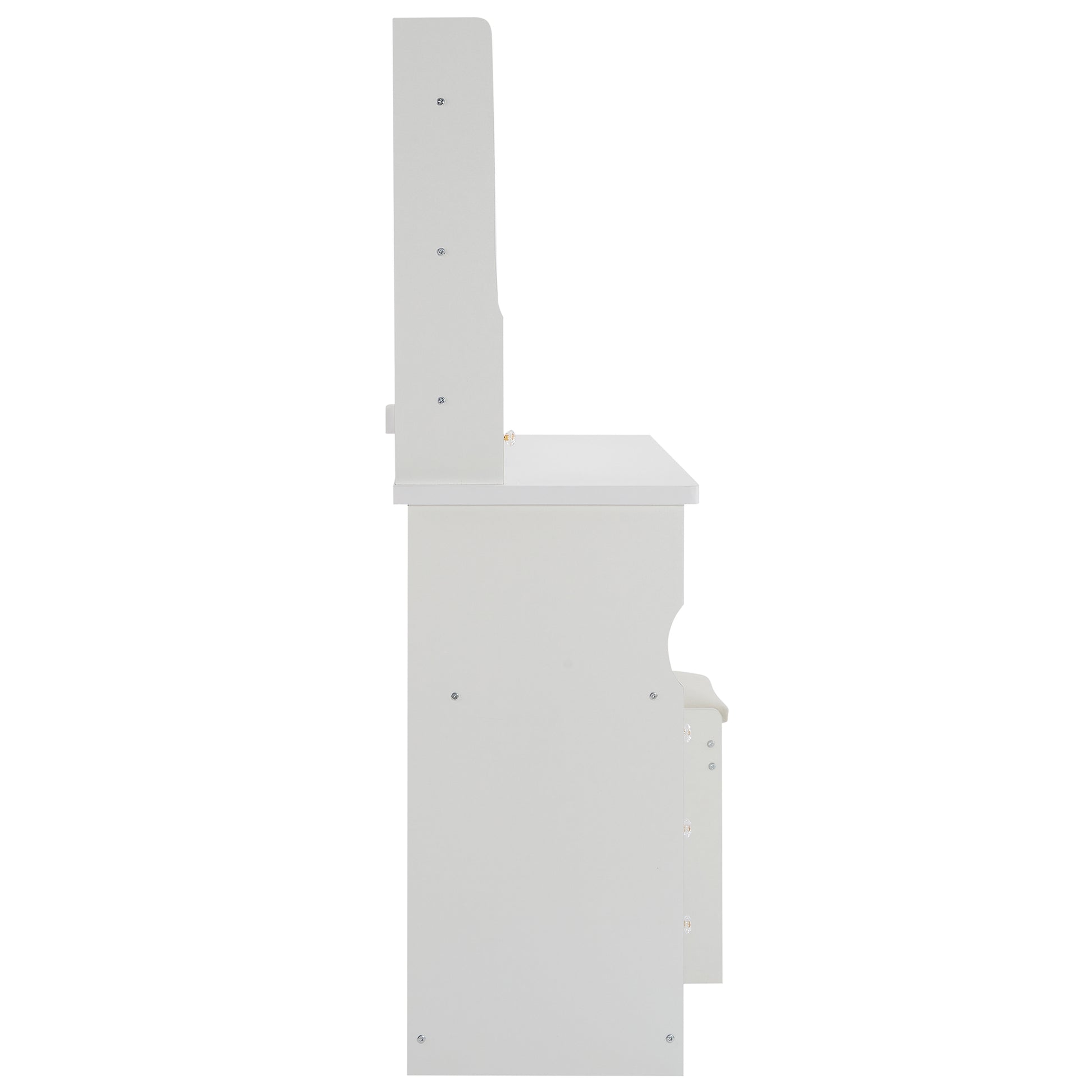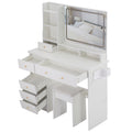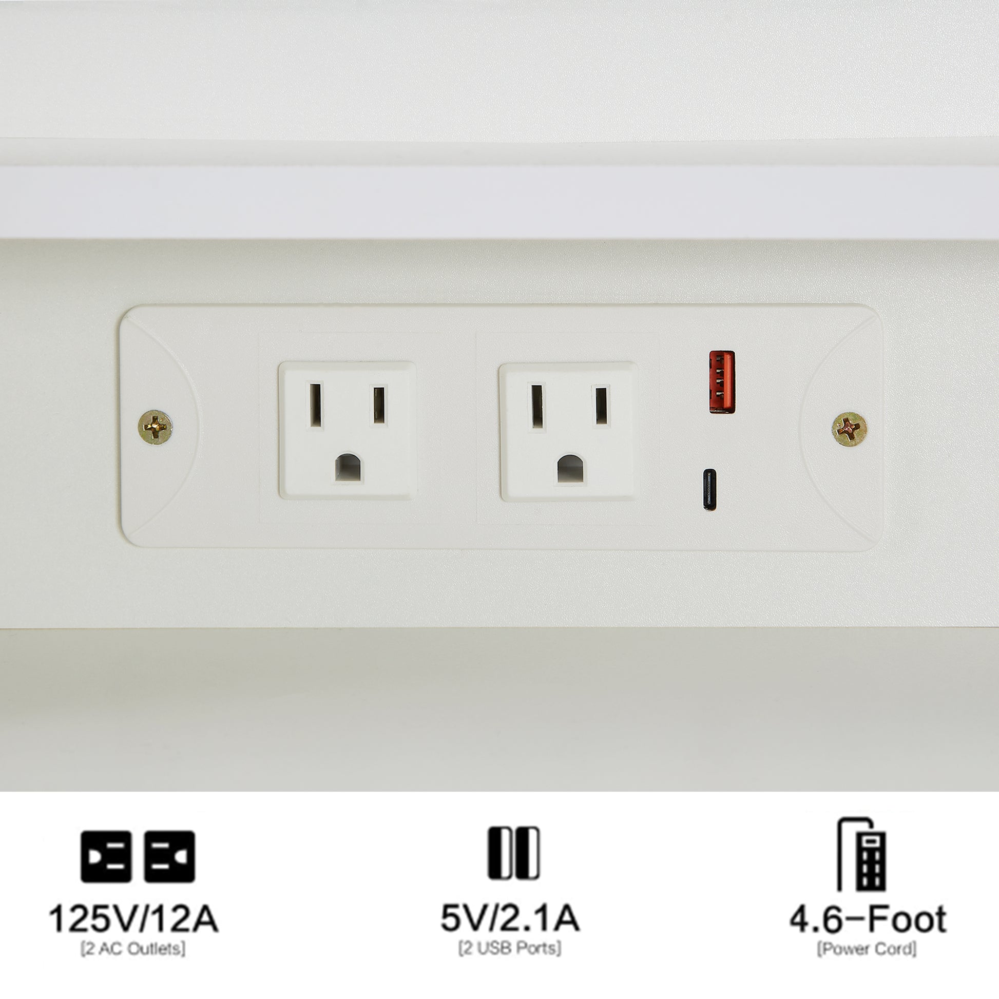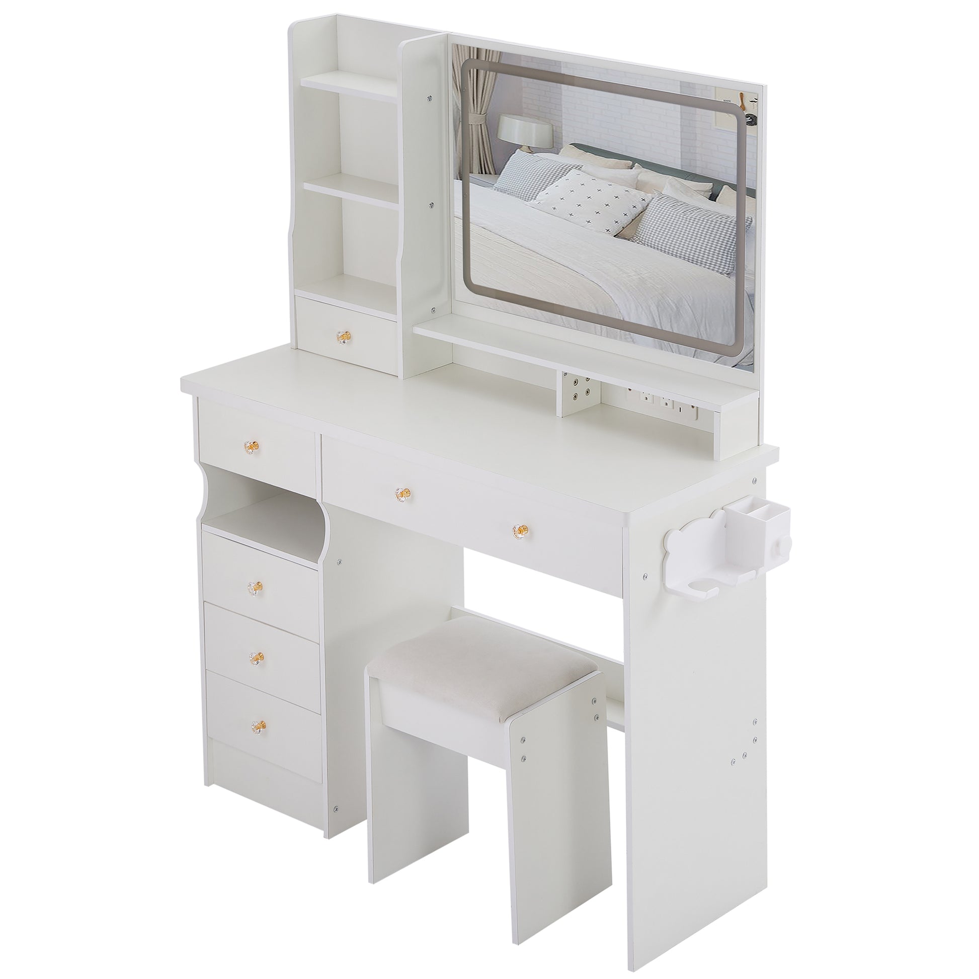 41" Large Size Left Drawer Desktop Vanity Table Cushioned Stool Dresser Set, 2 Ac 2 Usb Power Station, Hair Dryer Stand, Extra Large Touch Control Led Mirror, 3 Color Switch, Epa, Gcc, Ul