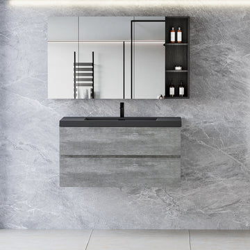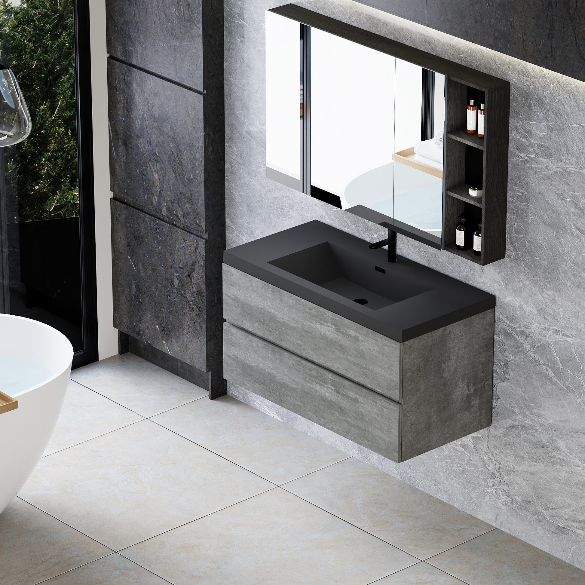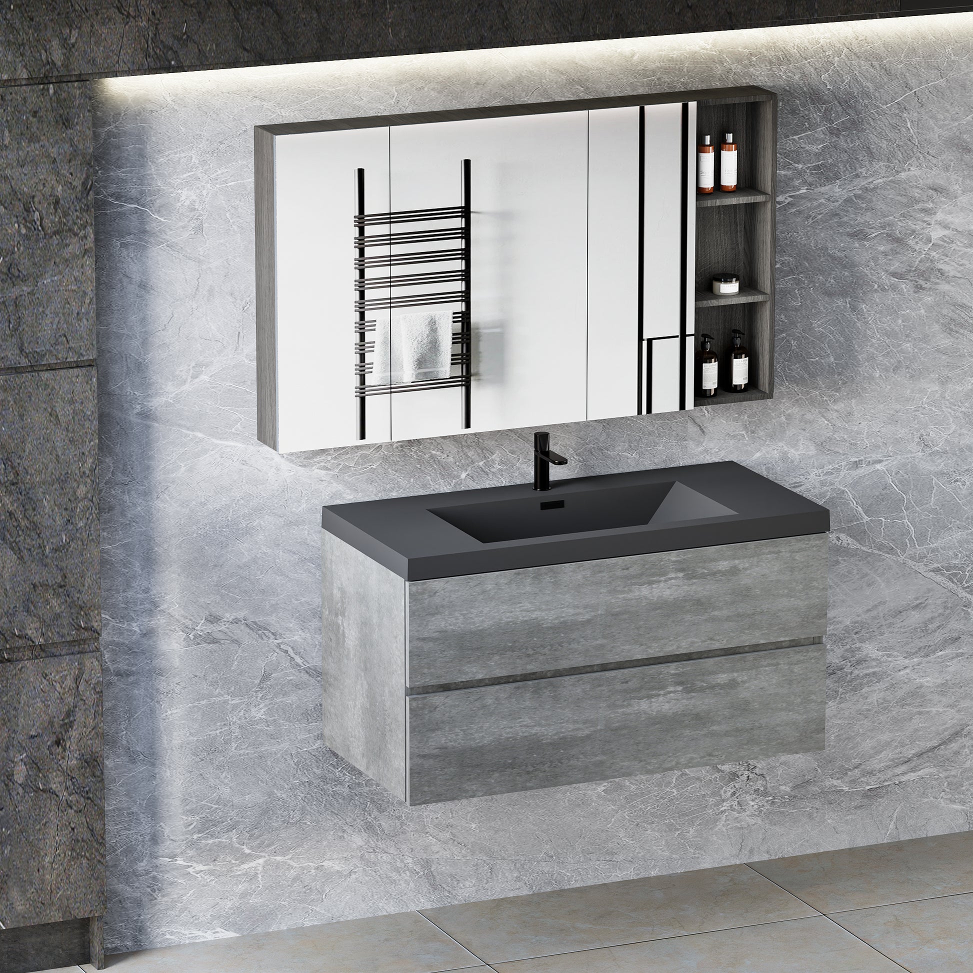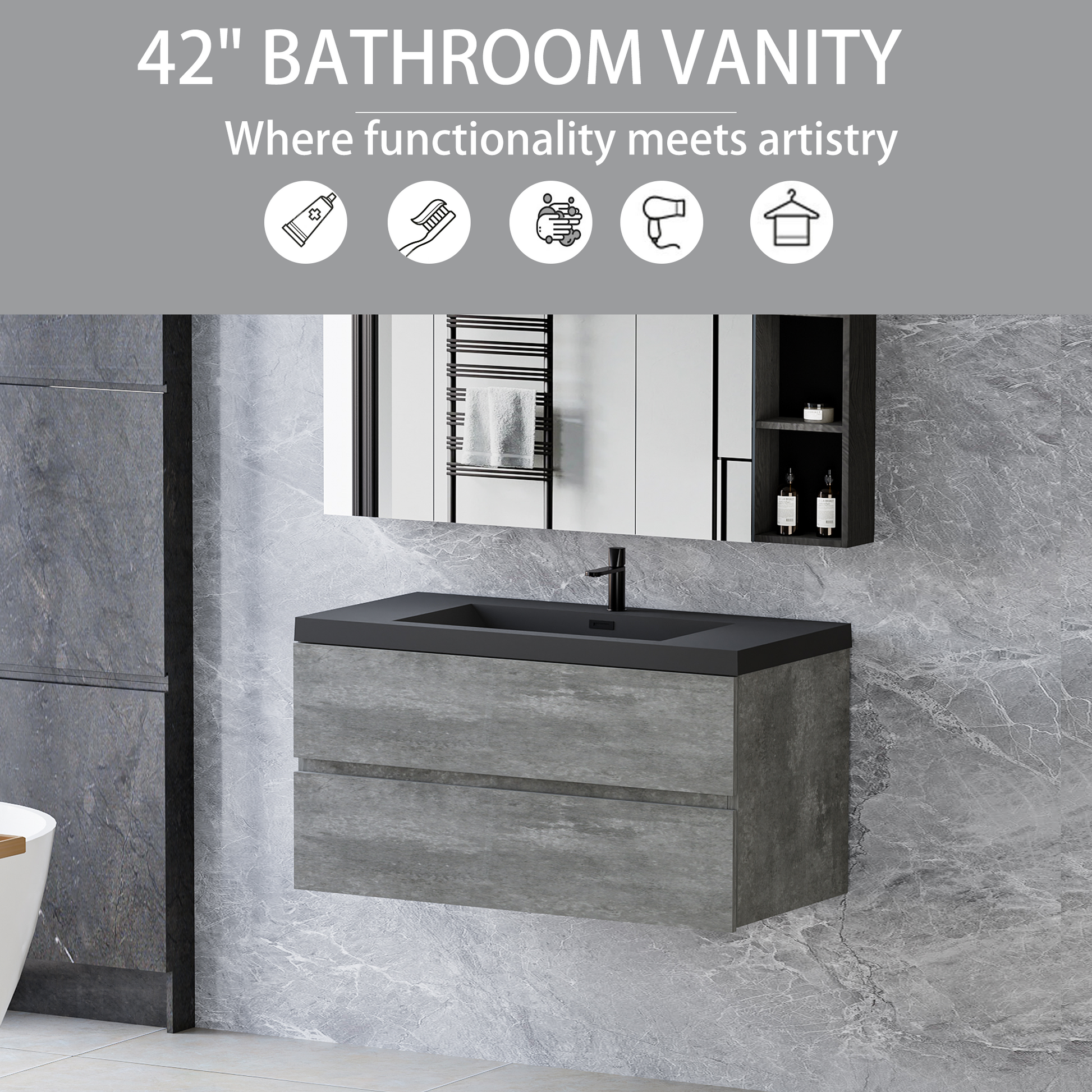 42" Floating Bathroom Vanity With Sink, Modern Wall Mounted Bathroom Storage Vanity Cabinet With Black Quartz Sand Top Basin And Soft Close Drawers, Grey 24V12 42Gr Grey Melamine