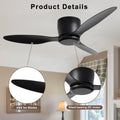42" Flush Mount Ceiling Fan Without Light, 3 Reversible Blades, With 6 Speeds Reversible Dc Motor,Low Profile Ceiling Fan With No Light For Living Room Kitchen Bedroom Matte Black Abs Steel Q235