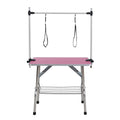 42" Folding Dog Pet Grooming Table Stainless Steel Frame Rubber Mat On Board With Adjustable Arm And Clamps Pet Dog Cat Grooming Table Pink Color Pink Rubber Stainless Steel
