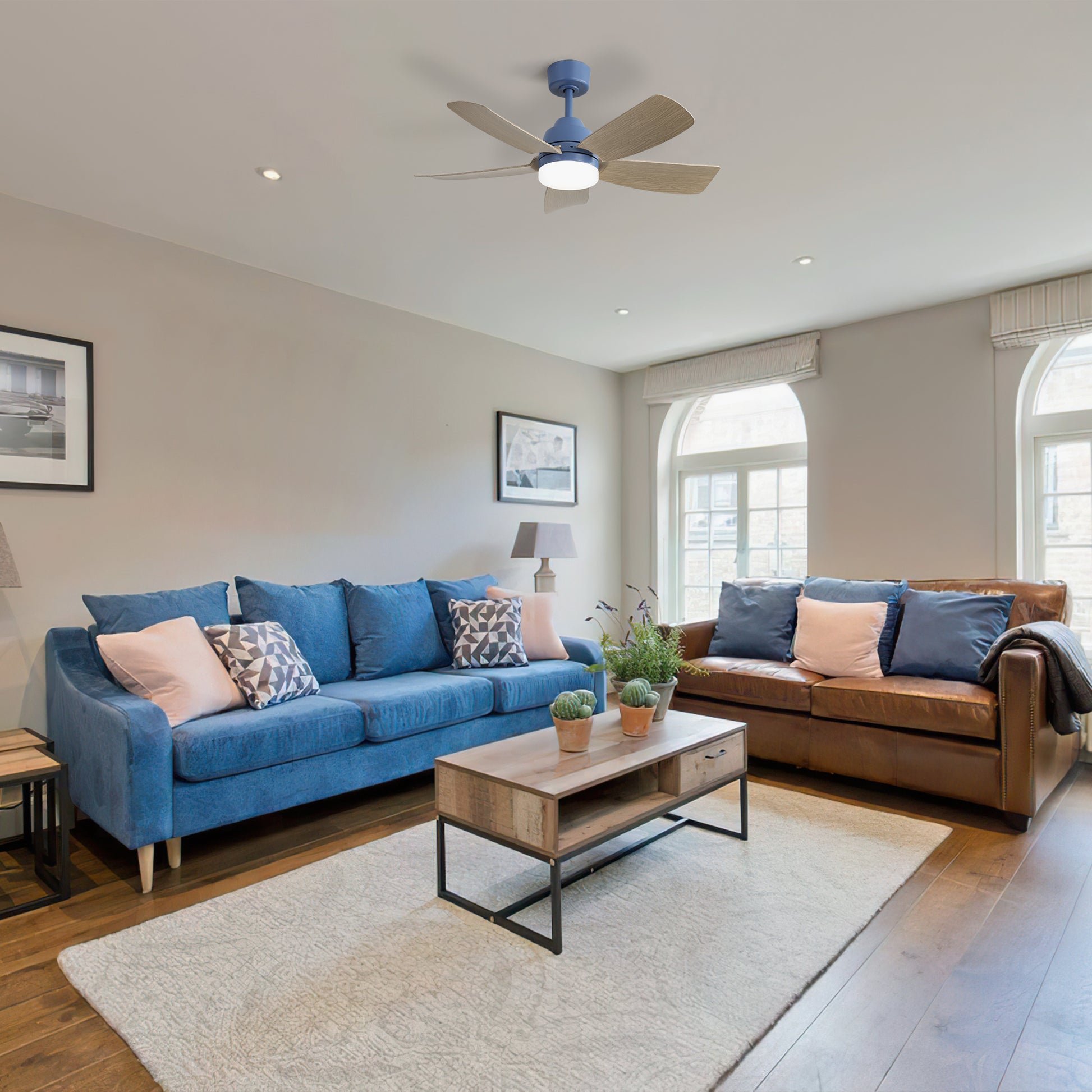 42 Inch Ceiling Fans With Led Light 22W And Remote Control 5 Abs Fan Blades For Bedroom, Living Room, Dining Room, Office Dark Blue Abs