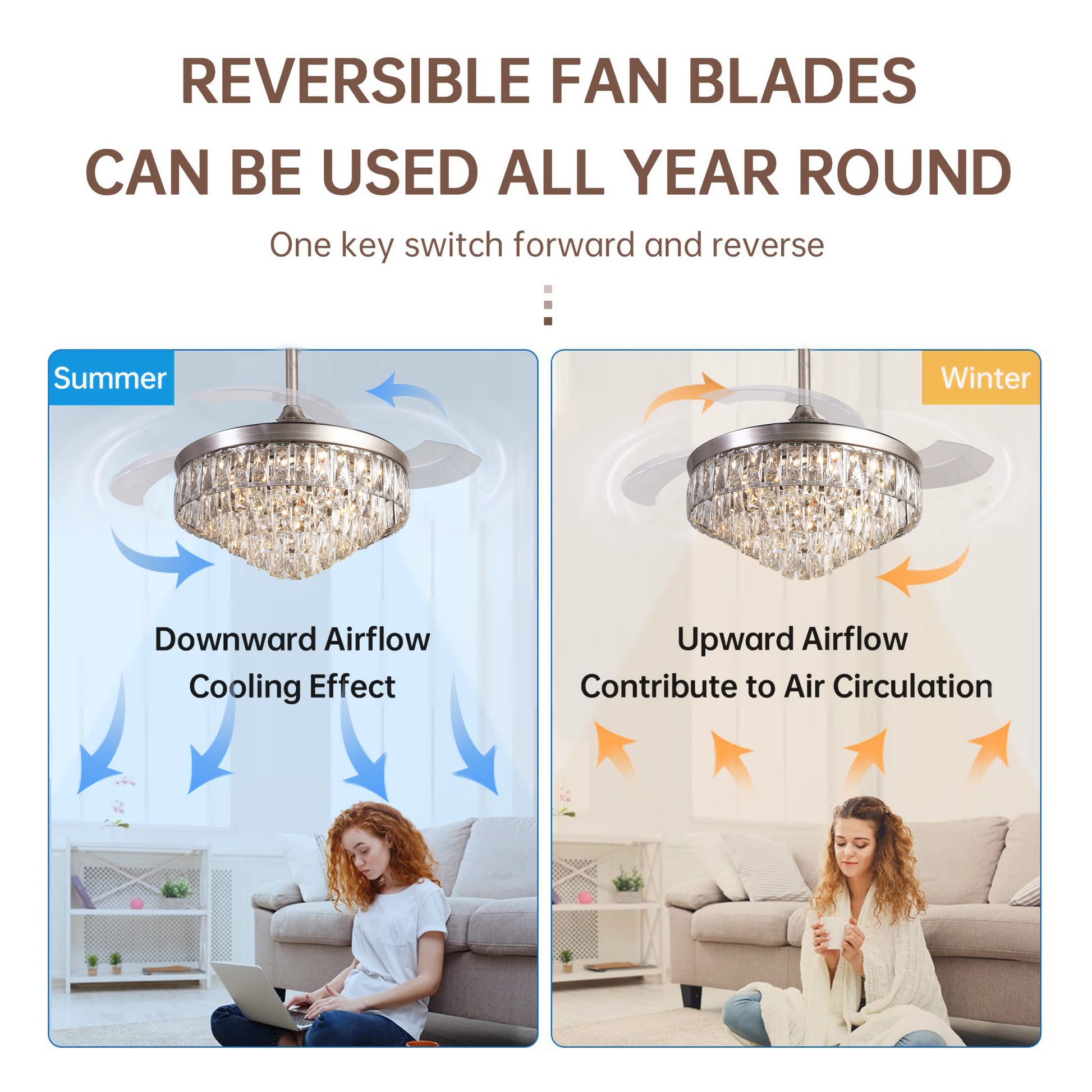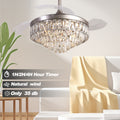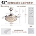 42 Inches Crystal Ceiling Fan Silver Crystal Ceiling Fan Chandelier With Remote 6 Speeds 3 Colors Changes Lighting Fixture, 3 Blades Retractable Fans For Bedroom Living Room Dining Room, Silver Silver Luxury Abs Steel Q235