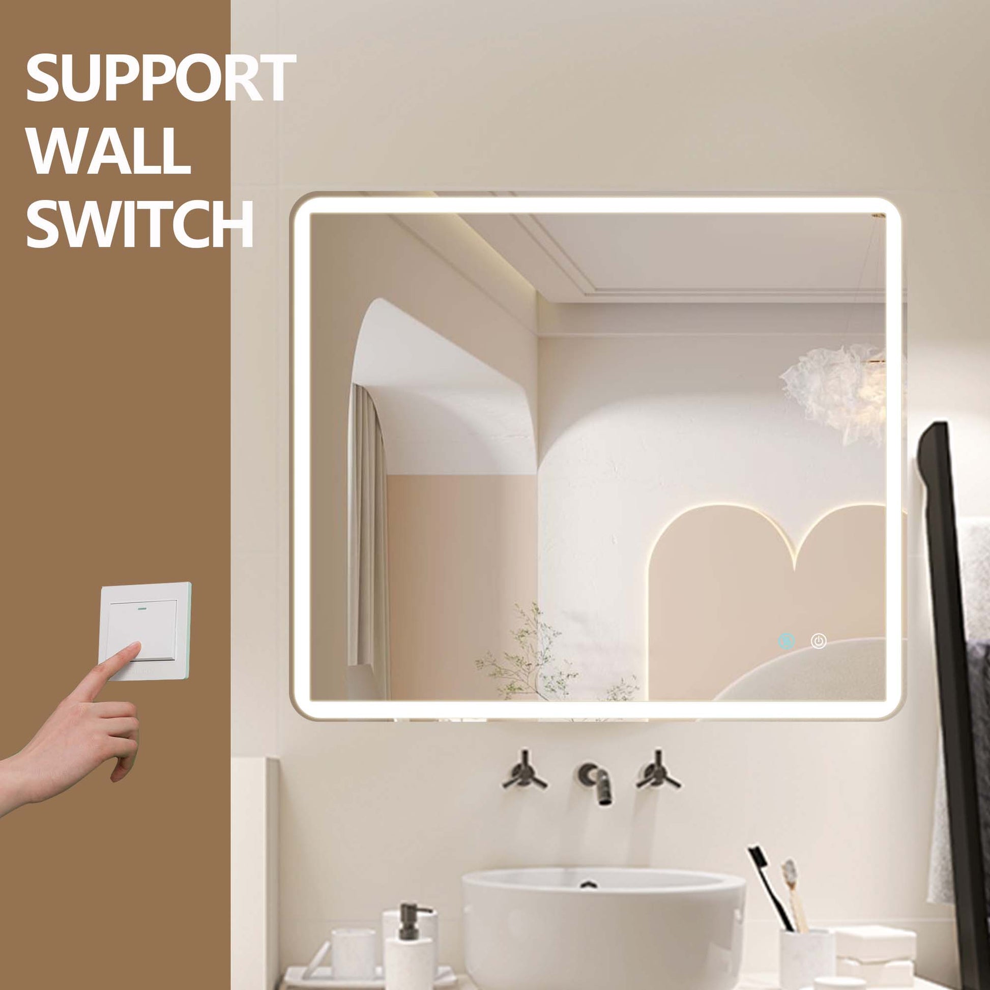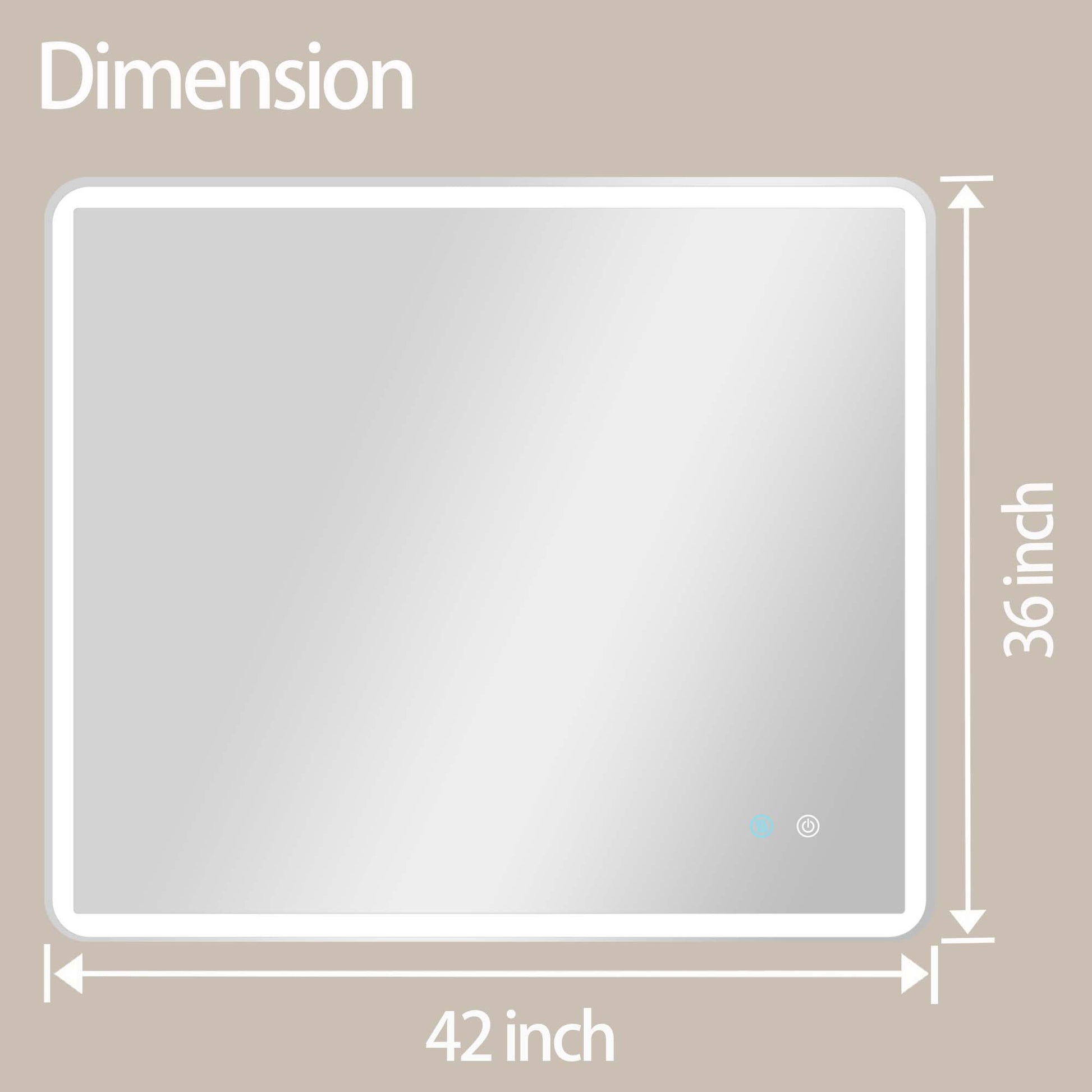 42 X 36 Led Mirror For Bathroom, Led Vanity Mirror, Adjustable 3 Color, Dimmable Vanity Mirror With Lights, Anti Fog, Touch Control Wall Mounted Bathroom Mirror,Vertical Natural Modern Glass