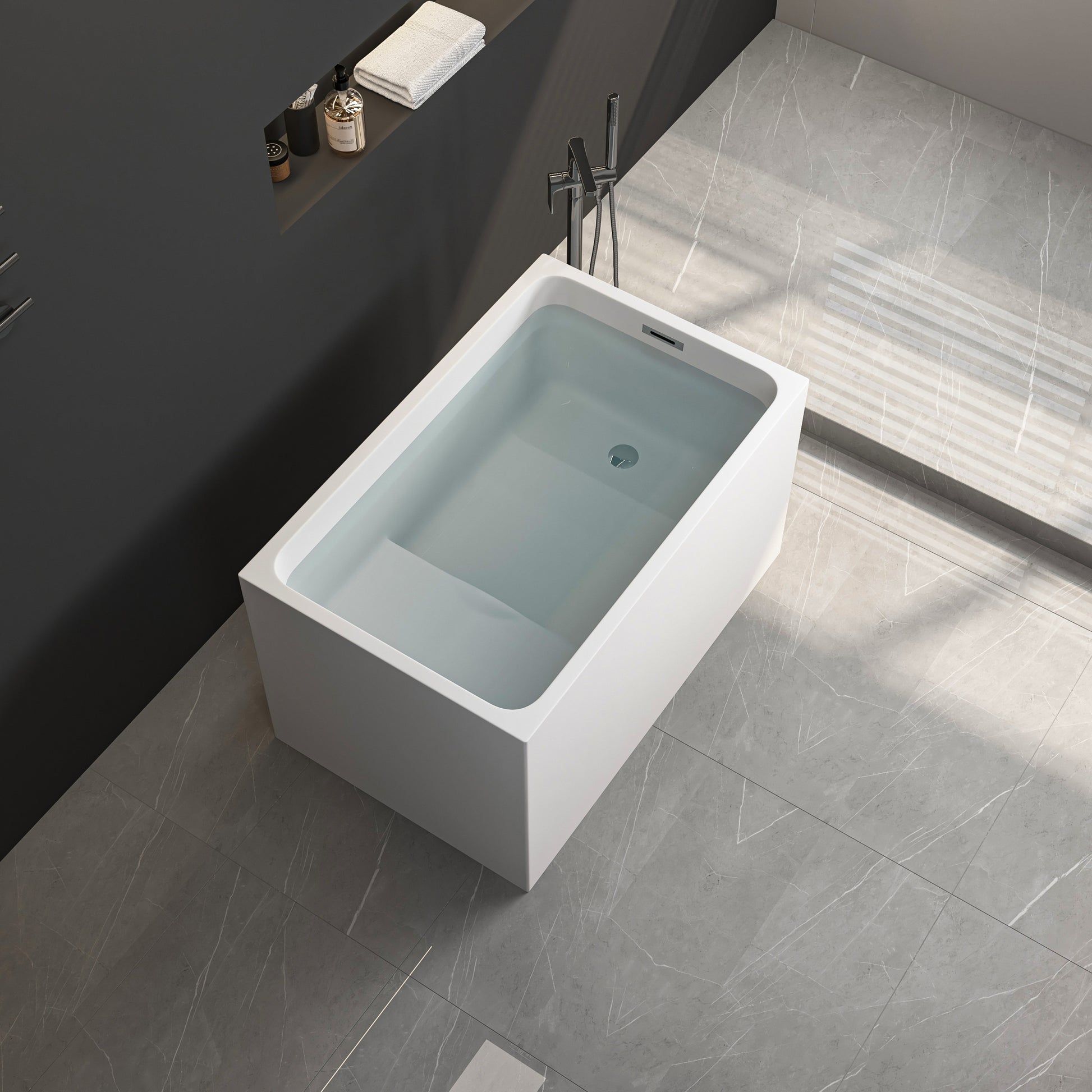43" Acrylic Freestanding Bathtub With Seat: Spacious Rectangle Shape, Gloss White Finish, Chrome Overflow & Pop Up Drain White Rectangle Bathroom Freestanding Tubs Polished Less Than 59 In Contemporary Soaking Center Acrylic Acrylic
