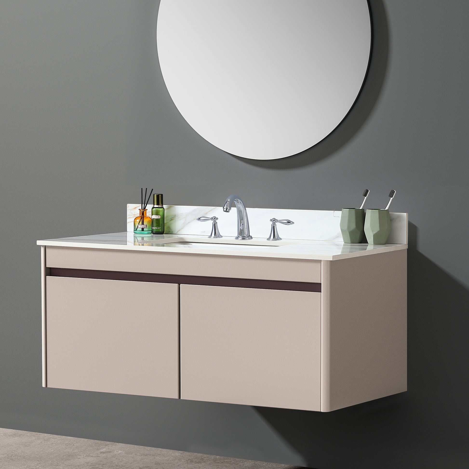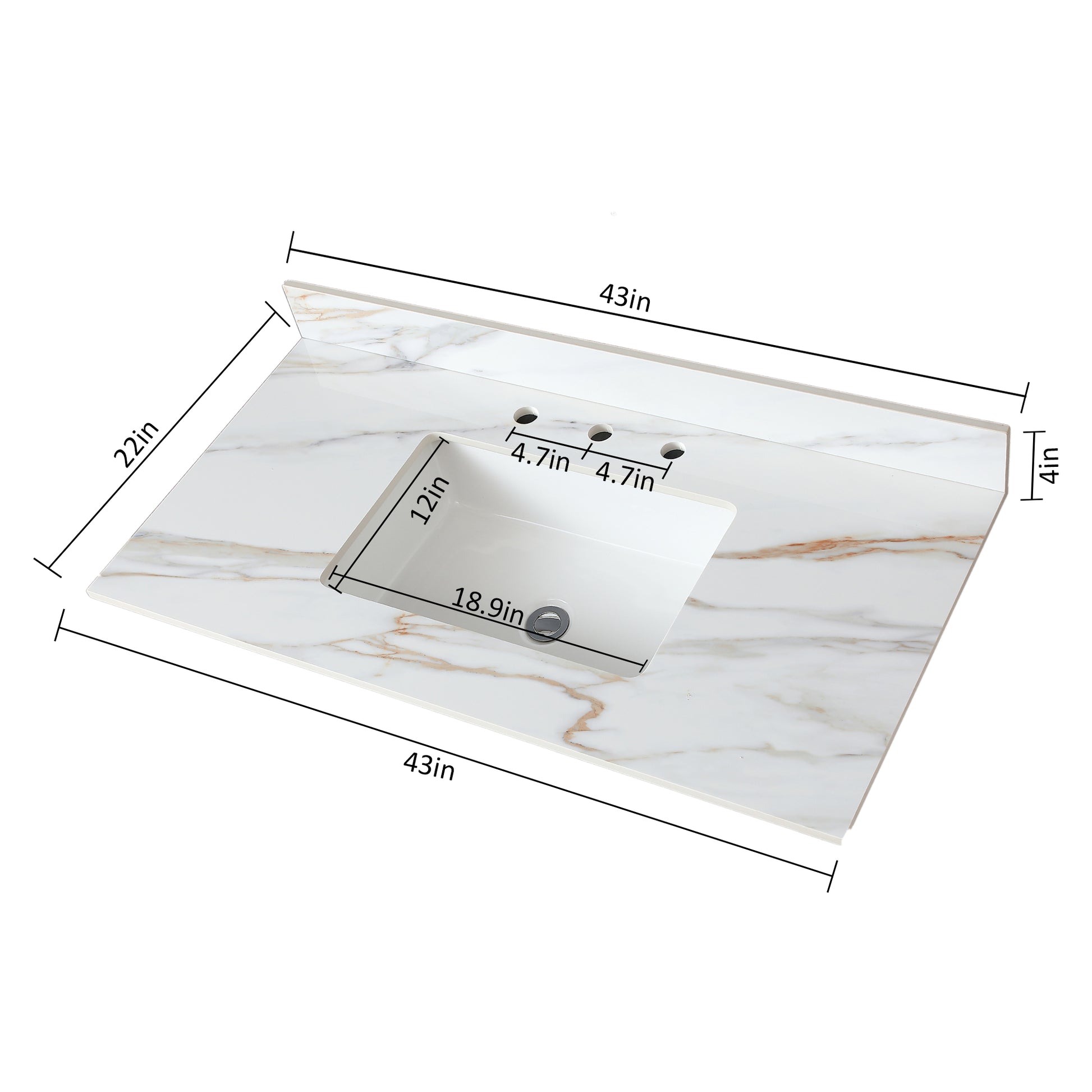 43 Inch Marble Vanity Top, Bathroom Vanity Top With Undermount Rectangular Middle Sink And 4" Height Backsplash, Pre Drilled 8 Inch Faucet Hole Spread Vanity Top, Carrara White With Veins White Marble Bathroom American Design Sintered Stone Sintered