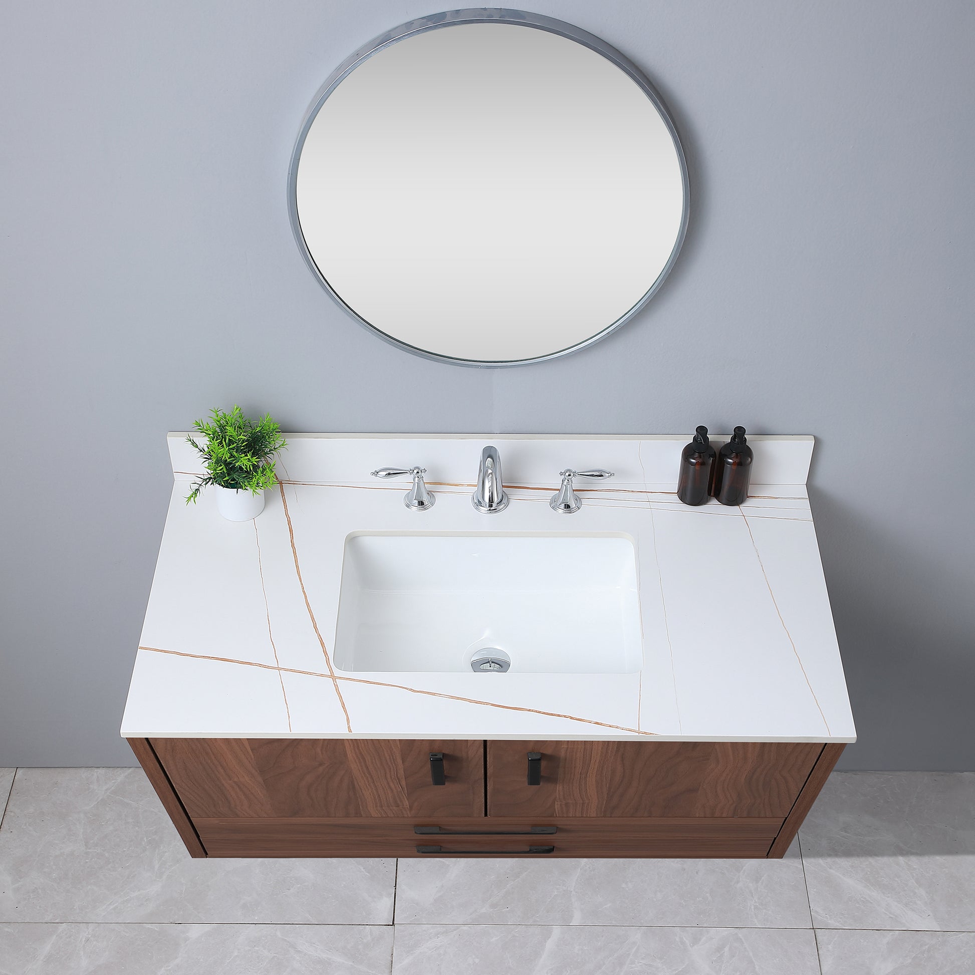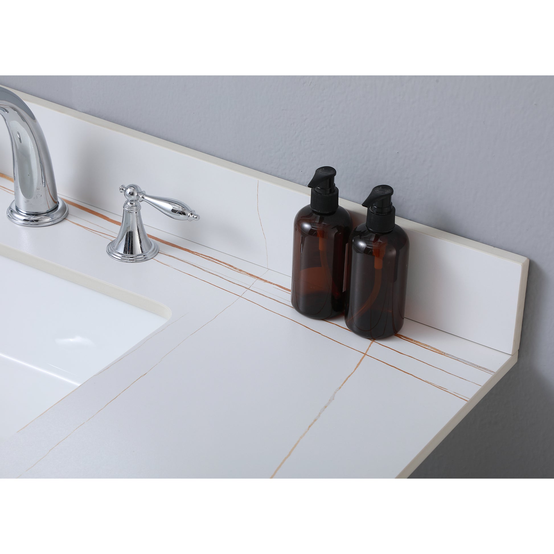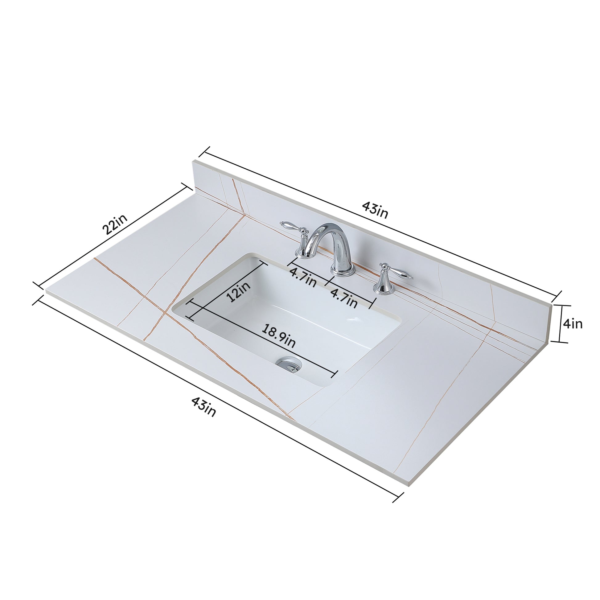 43Inch Bathroom Vanity Top Stone Carrara Gold Style Tops With Rectangle Undermount Ceramic Sink And Three Faucet Hole White Sintered Stone