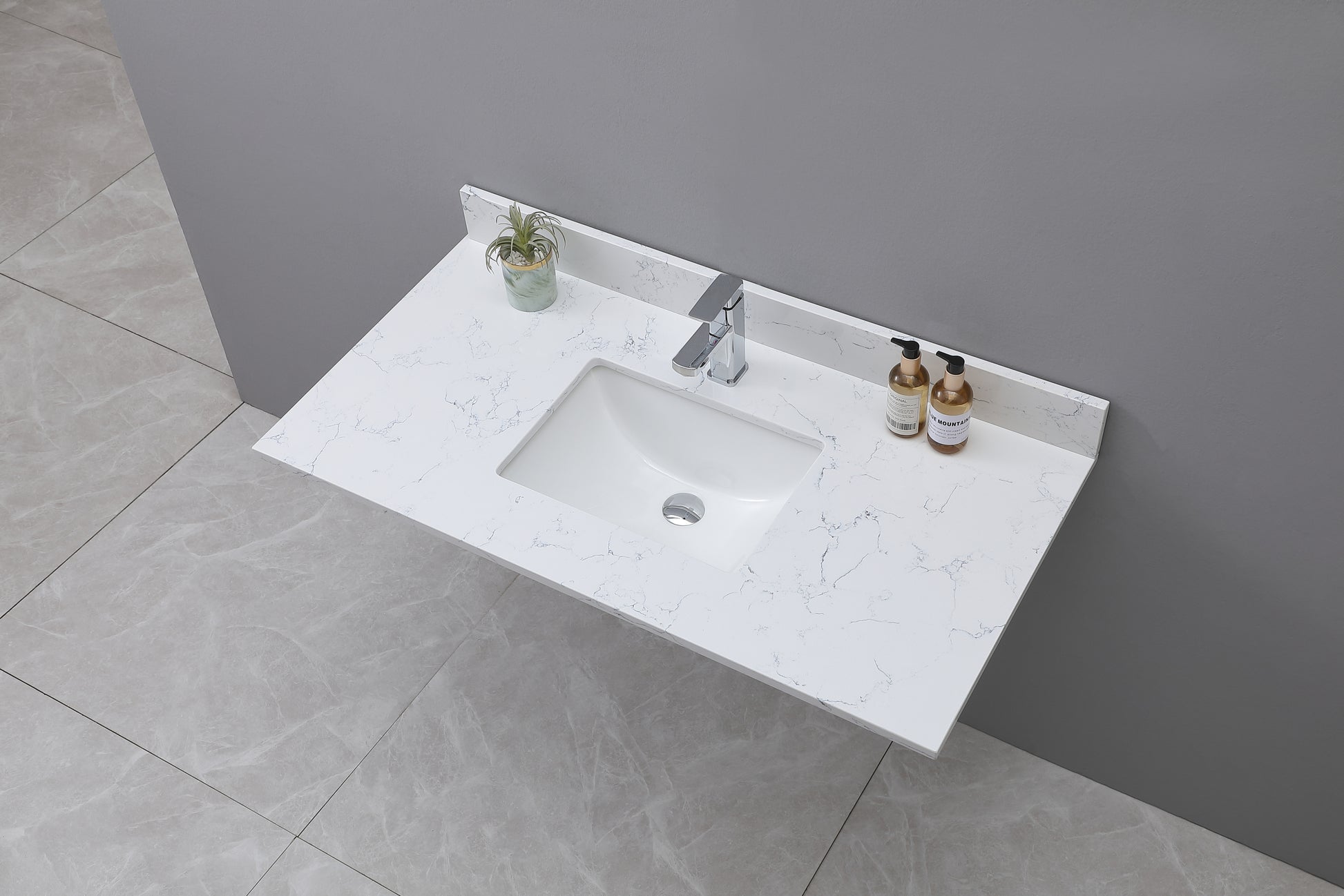 43"X 22" Bathroom Stone Vanity Top Carrara Jade Engineered Marble Color With Undermount Ceramic Sink And Single Faucet Hole With Backsplash White Stone