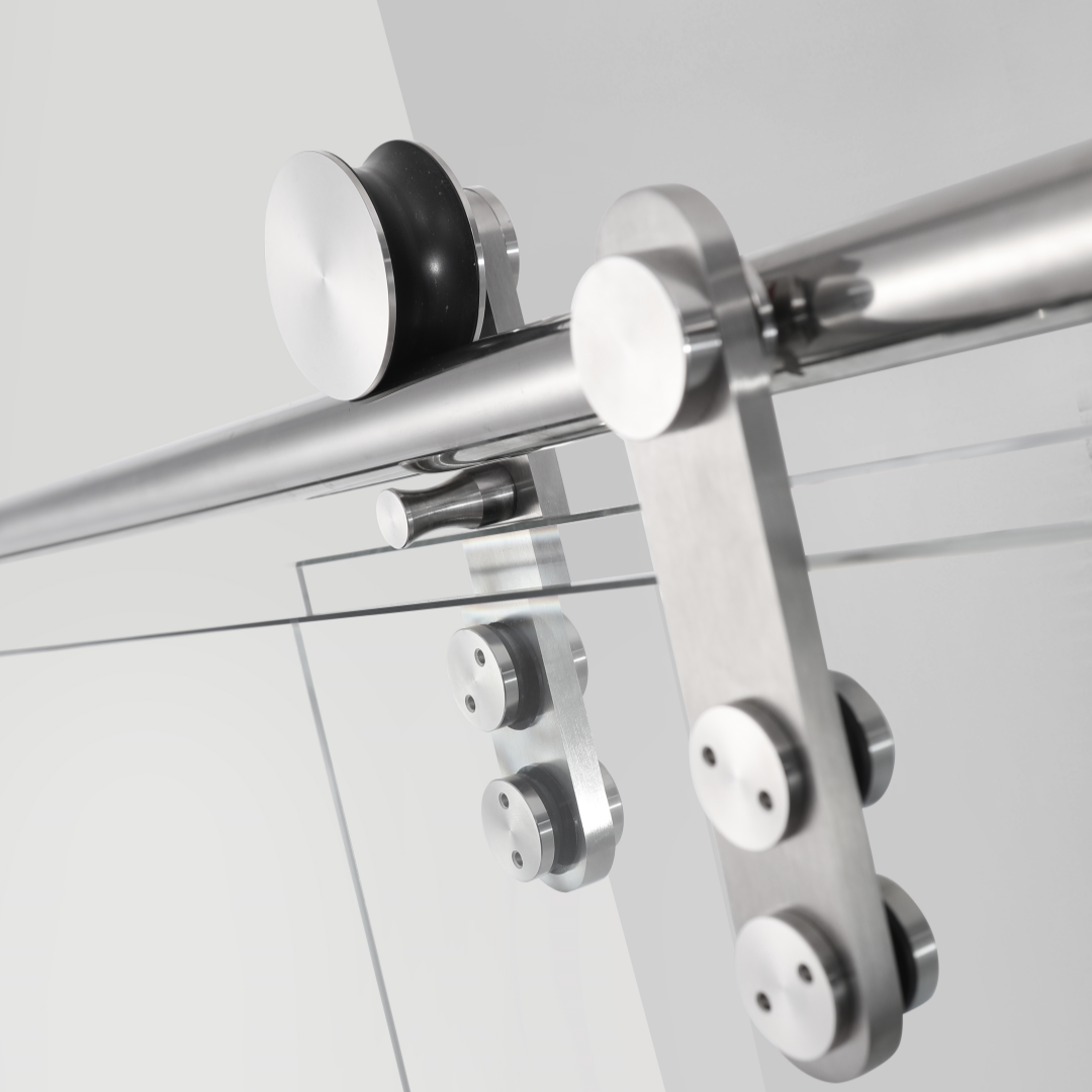 44 48 In. W X 76 In. H Frameless Shower Door, Single Sliding Shower Door, 5 16" 8Mm Clear Tempered Glass Shower Door With Explosion Proof Film, Stainless Steel Hardware, Chrome Finish, 24D210 48C Chrome Stainless Steel