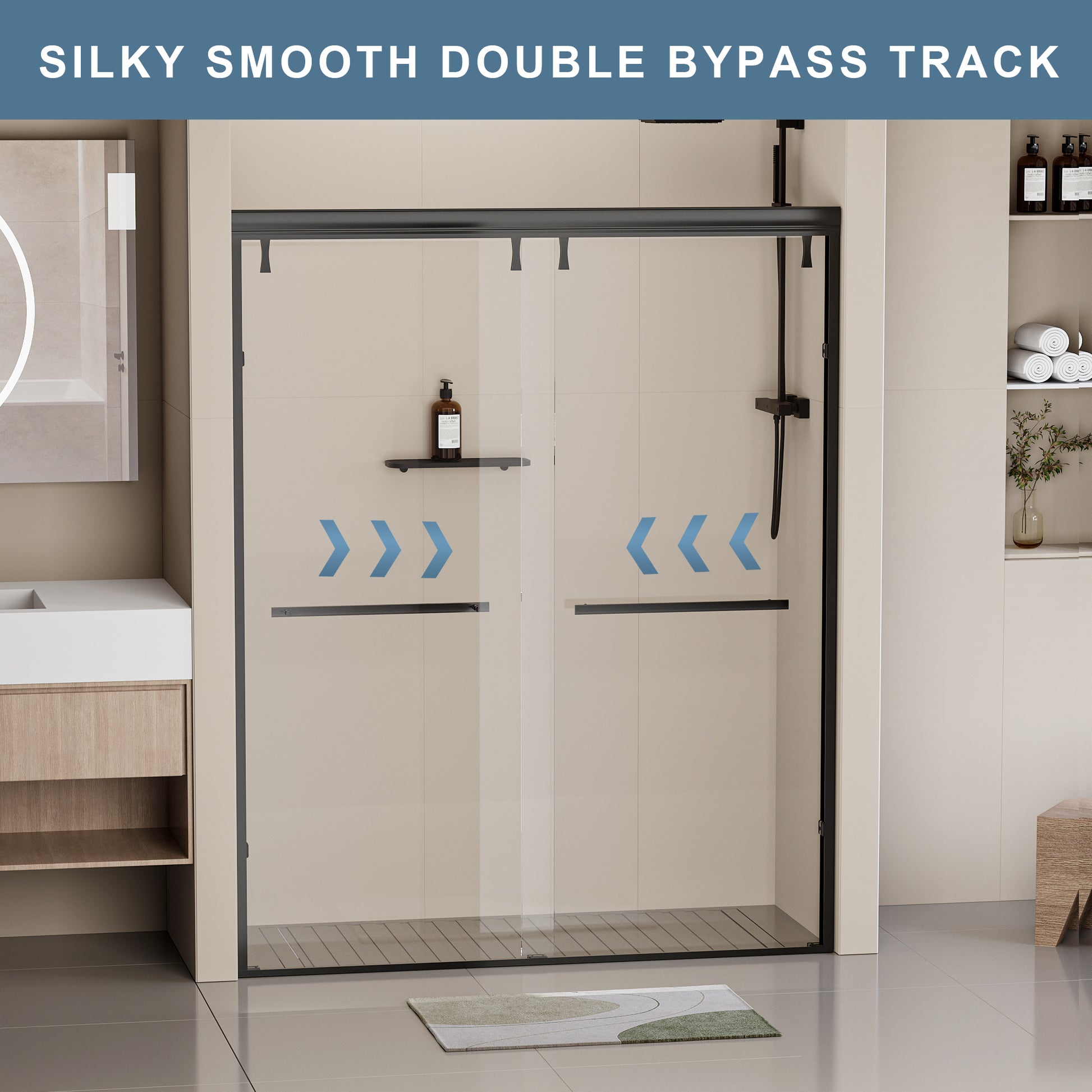44 48 In. W X 76 In. H Semi Frameless Shower Door, Double Sliding Shower Door, 5 16" 8Mm Clear Tempered Glass Shower Door With Explosion Proof Film, Matte Black 24D212 48Mb Matte Black Stainless Steel