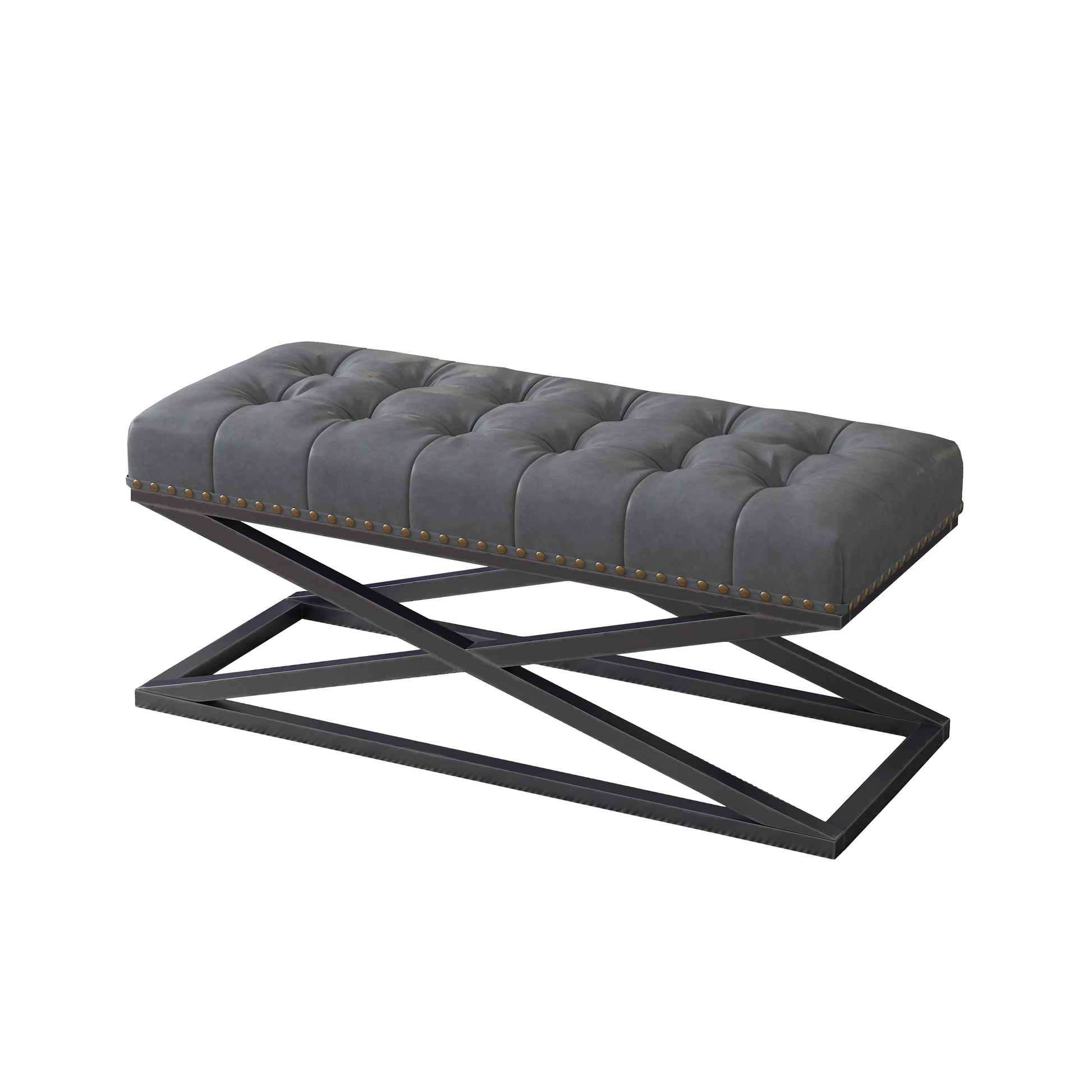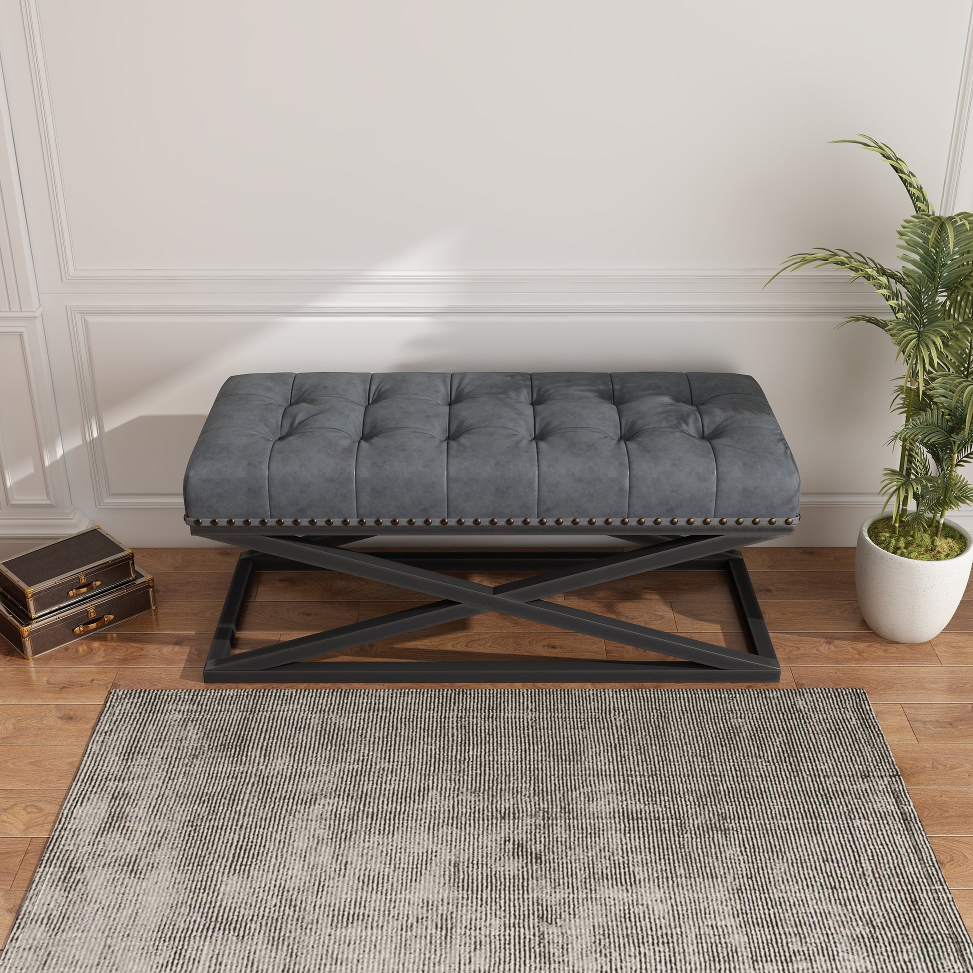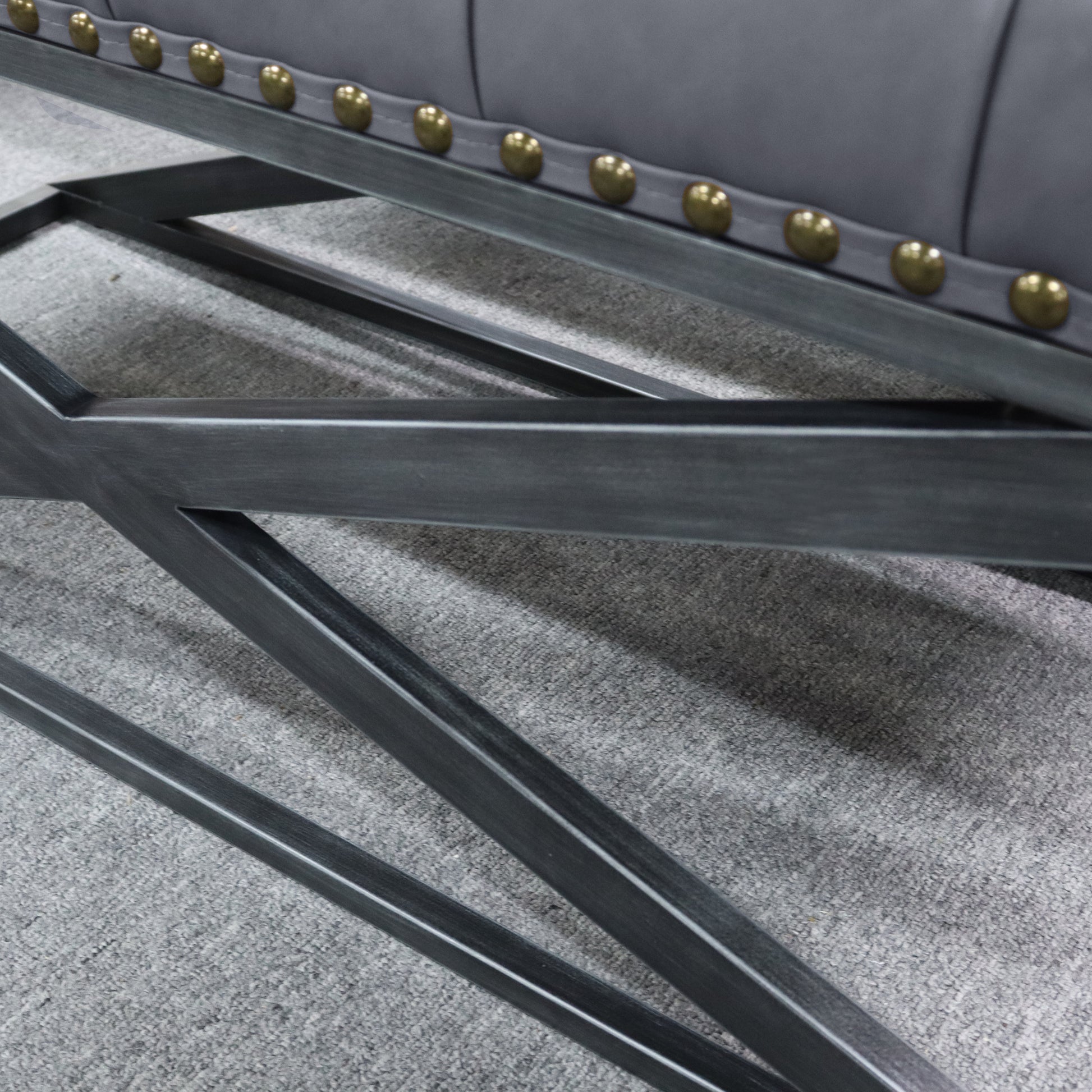 44" Retro Metal Base With Vintage Vegan Leather Bed Bench Dark Grey Dark Grey Foam Technical Leather