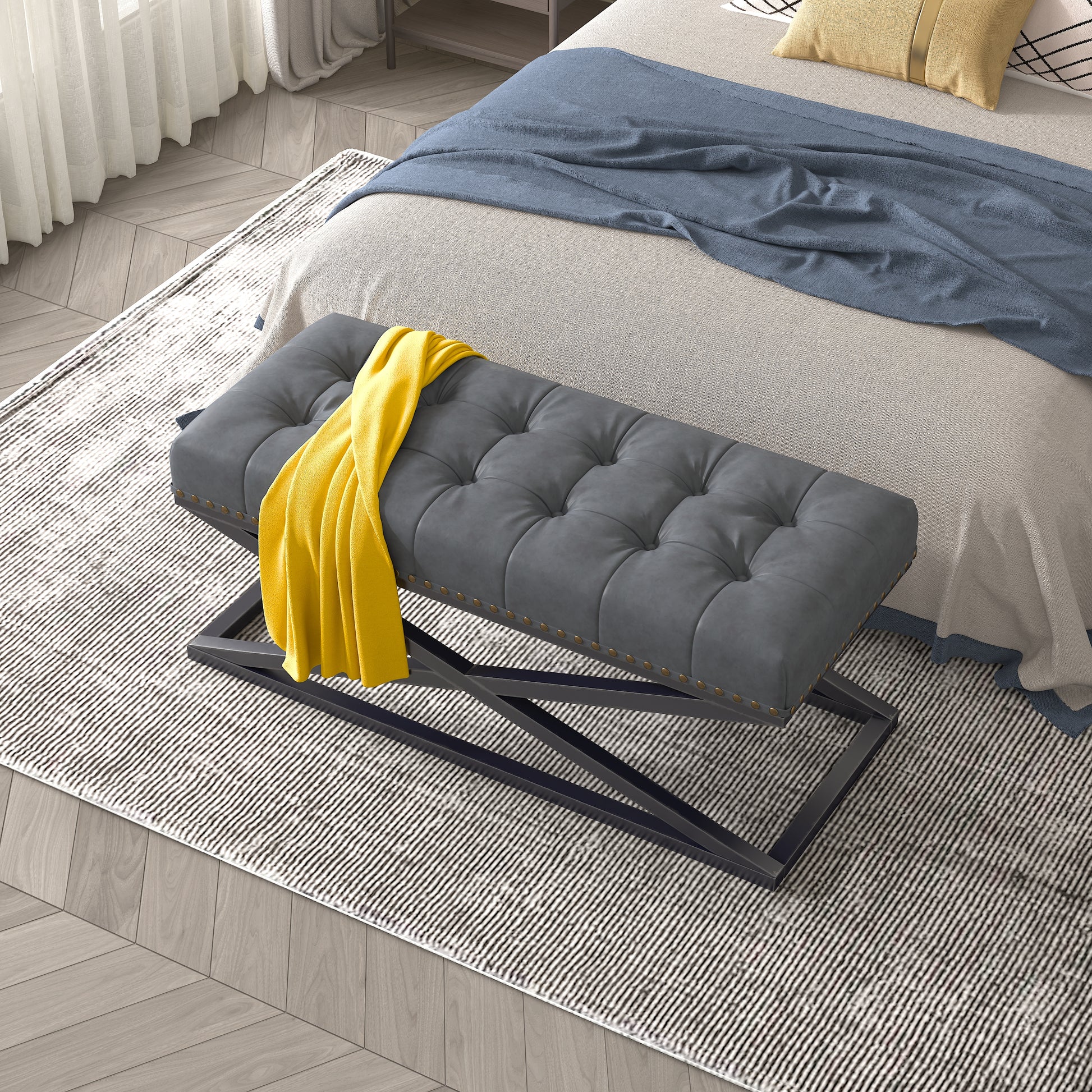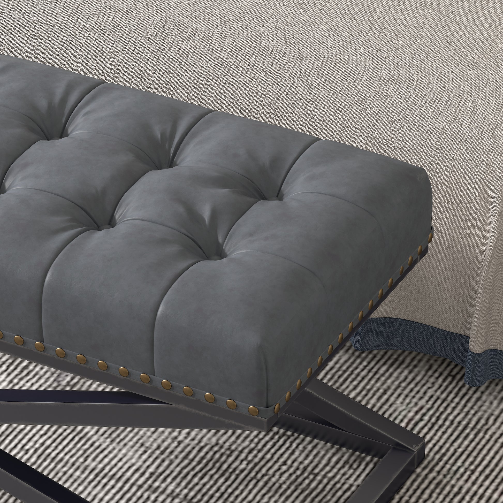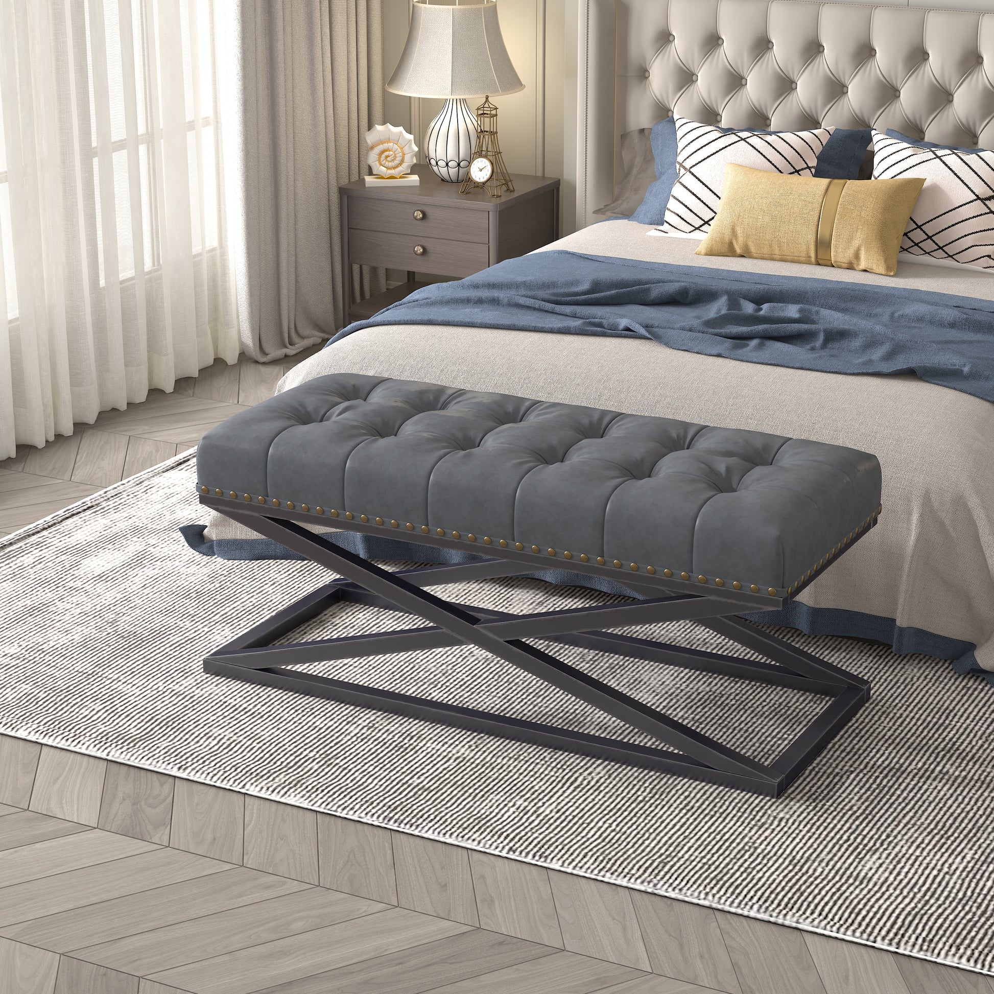 44" Retro Metal Base With Vintage Vegan Leather Bed Bench Dark Grey Dark Grey Foam Technical Leather