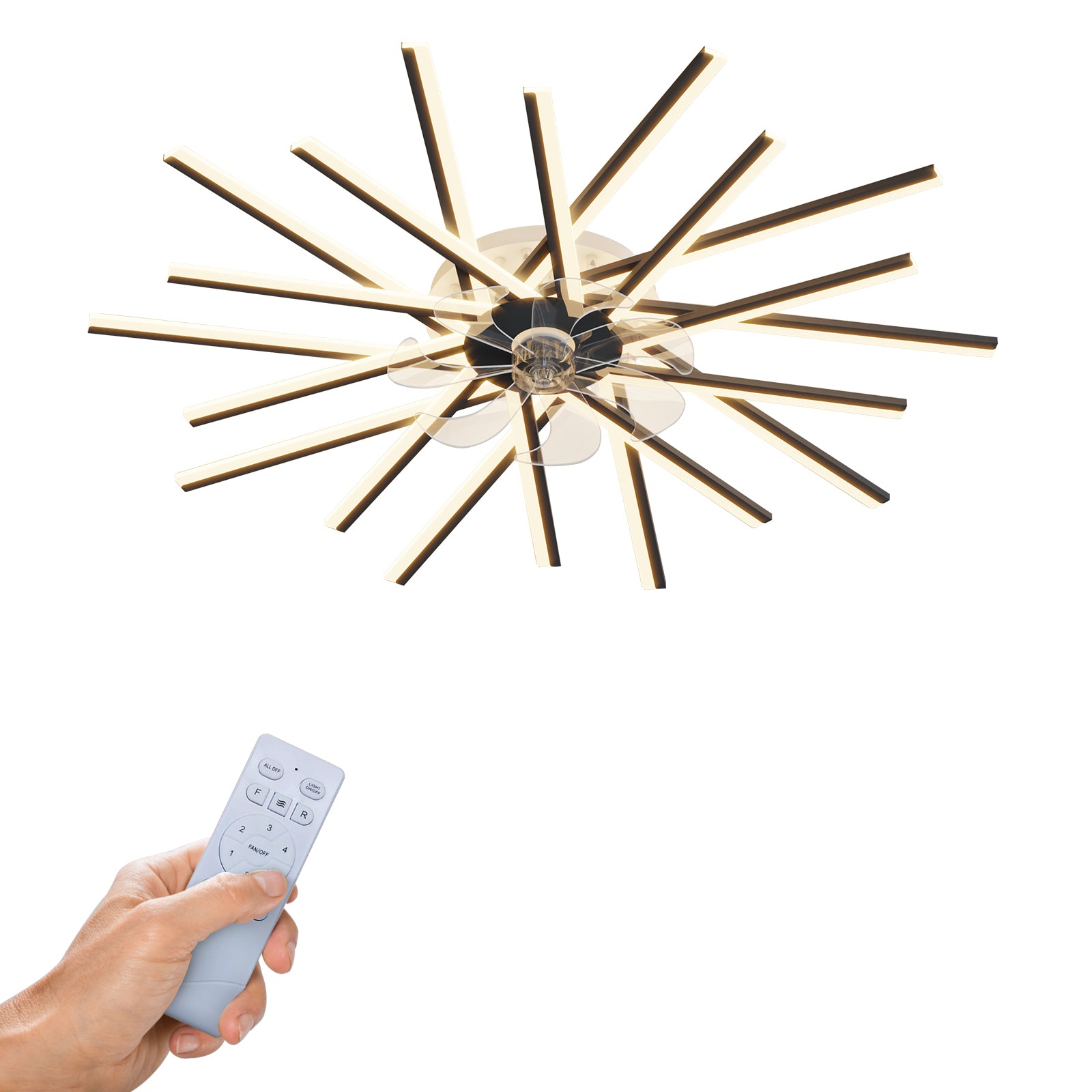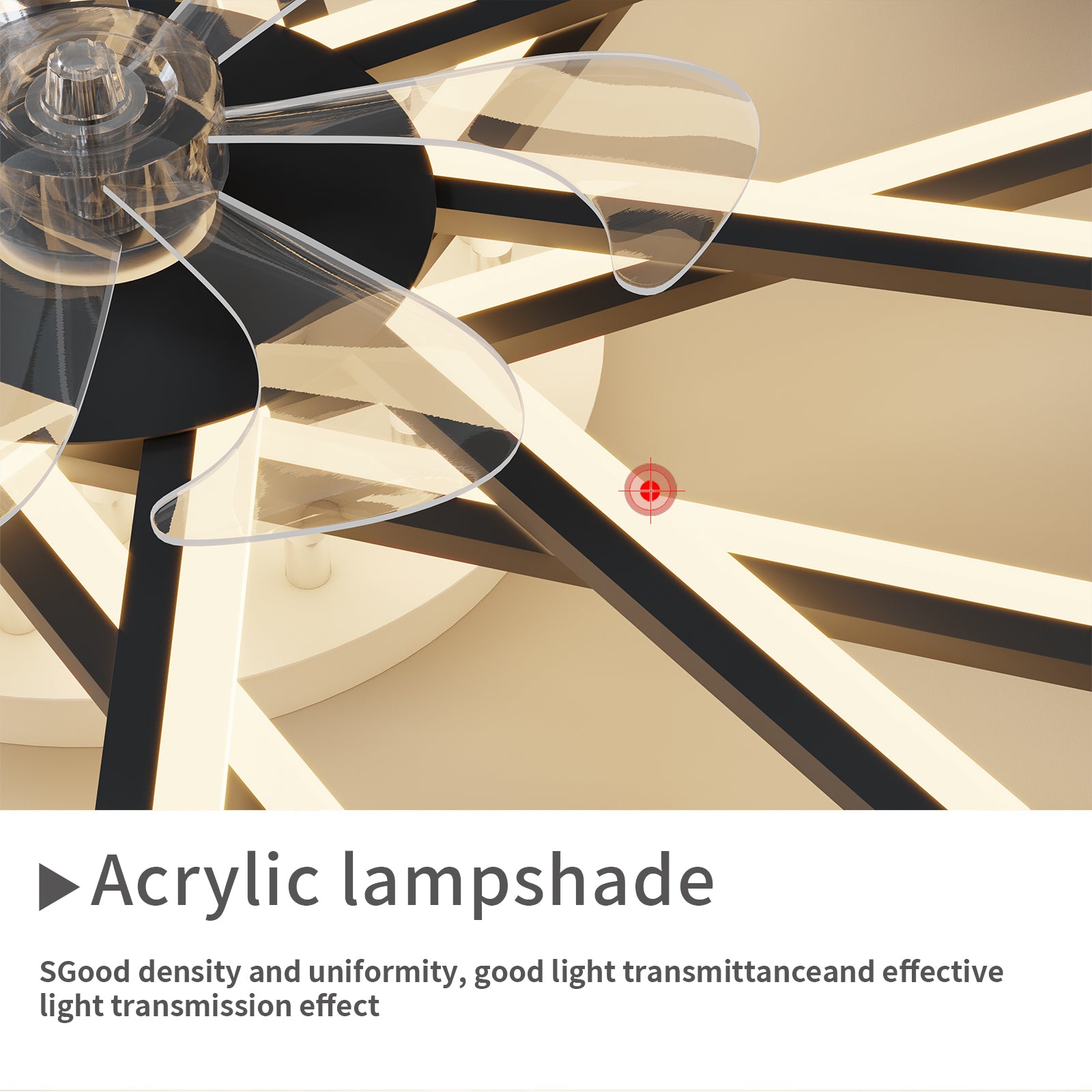 45In Ceiling Fan With Lights Remote Contro Dimmable Led,6 Gear Wind Speed Fan Light Black Modern Acrylic