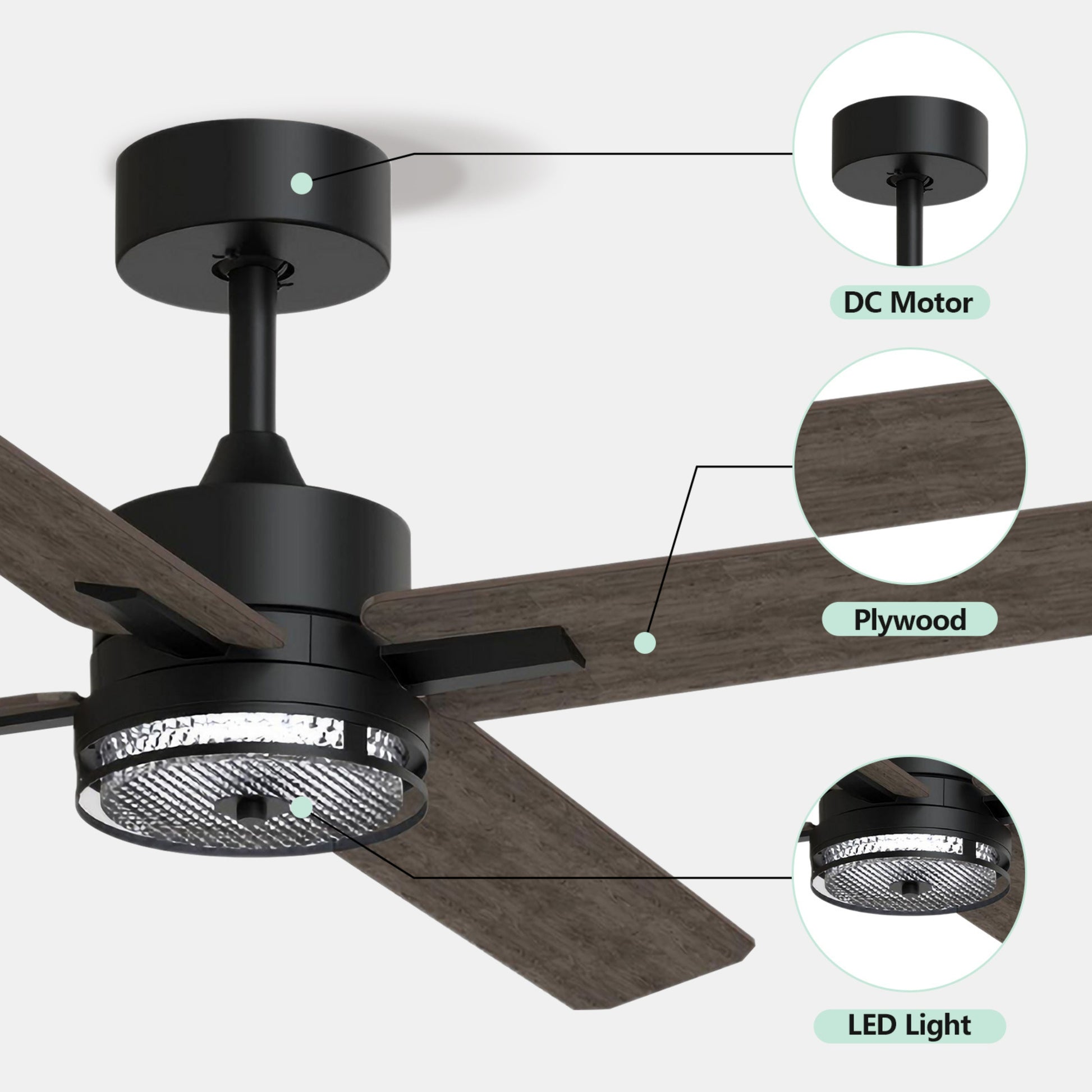 46 Inch Downrod Ceiling Fans With Lights And Remote Control, Modern Outdoor Indoor Dark 4 Blades Led Lights Smart Ceiling Fans For Bedroom, Living Room, And Patios Brown Black Wood Stainless Steel