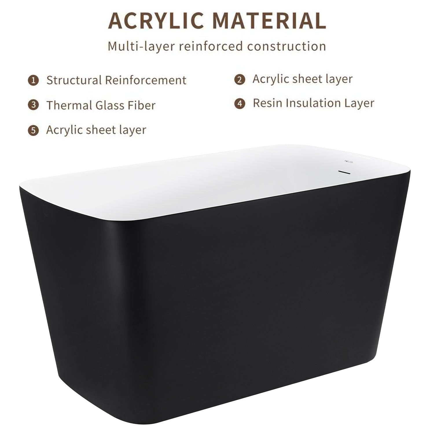 47" 100% Acrylic Freestanding Bathtub Contemporary Soaking Tub White Inside Black Outside Black Acrylic
