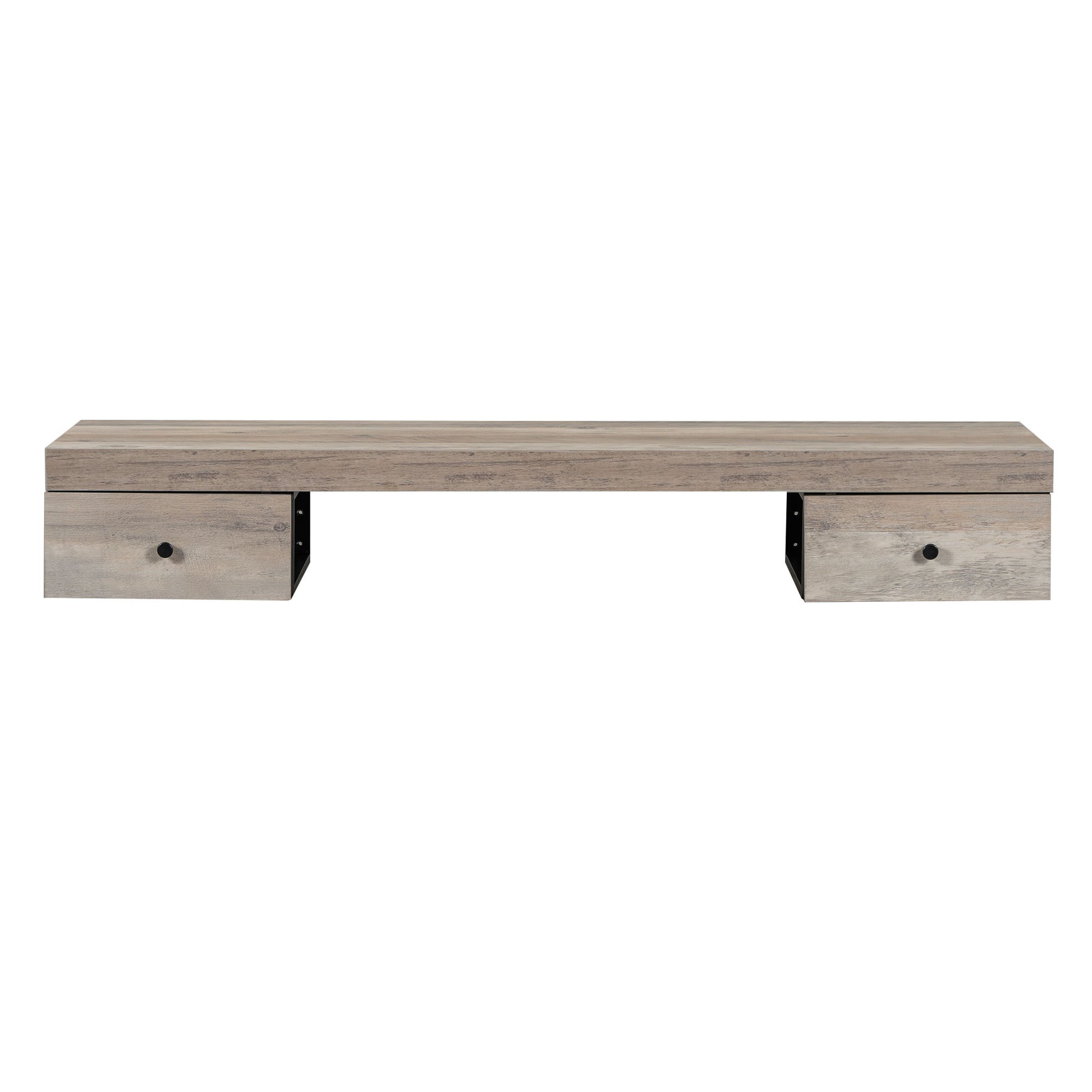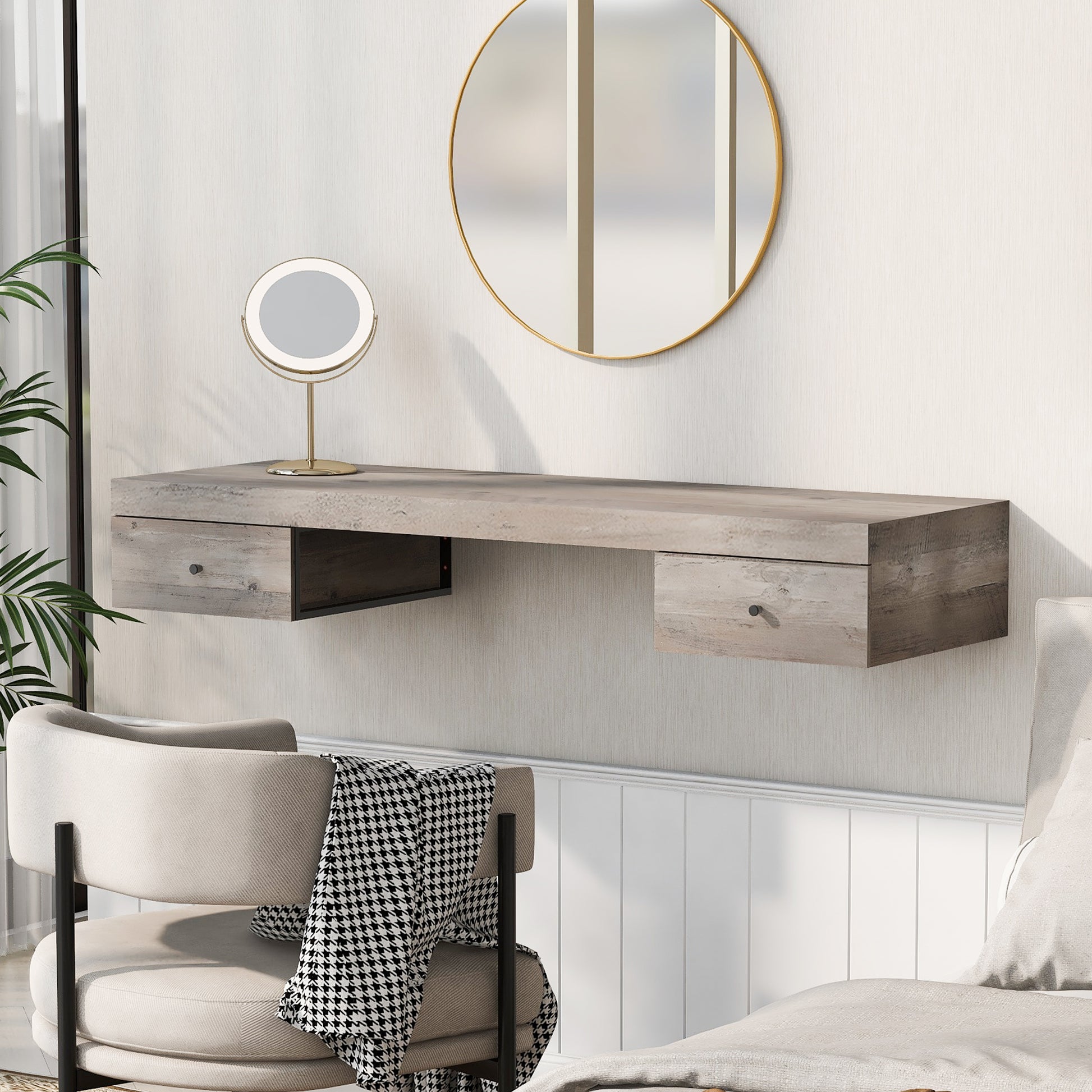47.2" Wall Mounted Vanity Desk, Floating Vanity Shelf With Drawers, Dressing Table With Wooden Sticker,Computer Table Desk, Home Office Desk, Log Gray Sliding Gray Gray Drawer 2 Drawers Ball Bearing