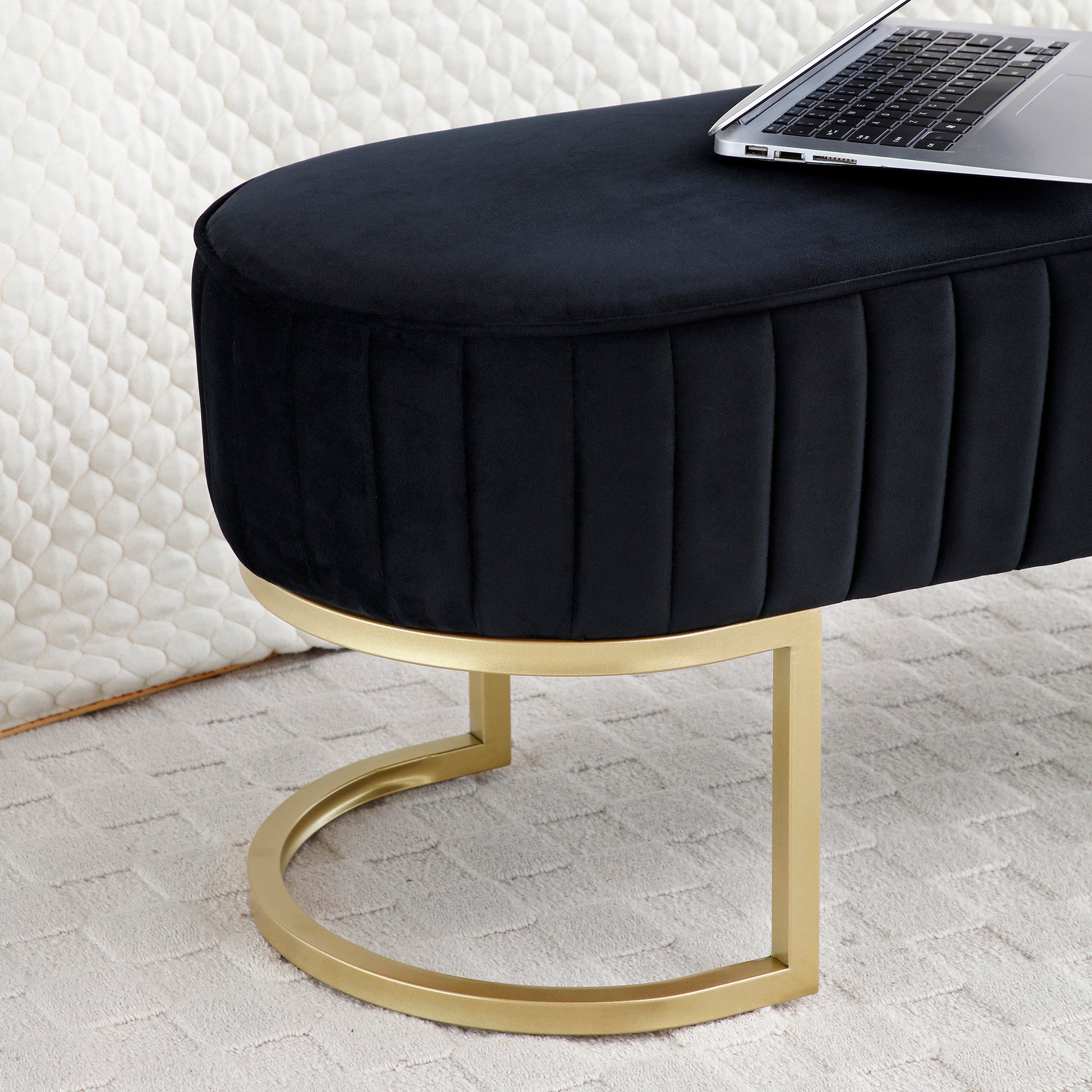 47.24'' Width Modern Ottoman Bench, Upholstered Sherpa Fabric End Of Bed Bench, Shoe Bench Footrest Entryway Bench Coffee Table For Living Room, Bedroom,Beige Black Velvet Bedroom Fiber Foam And Polyester Fiber Pad Velvet