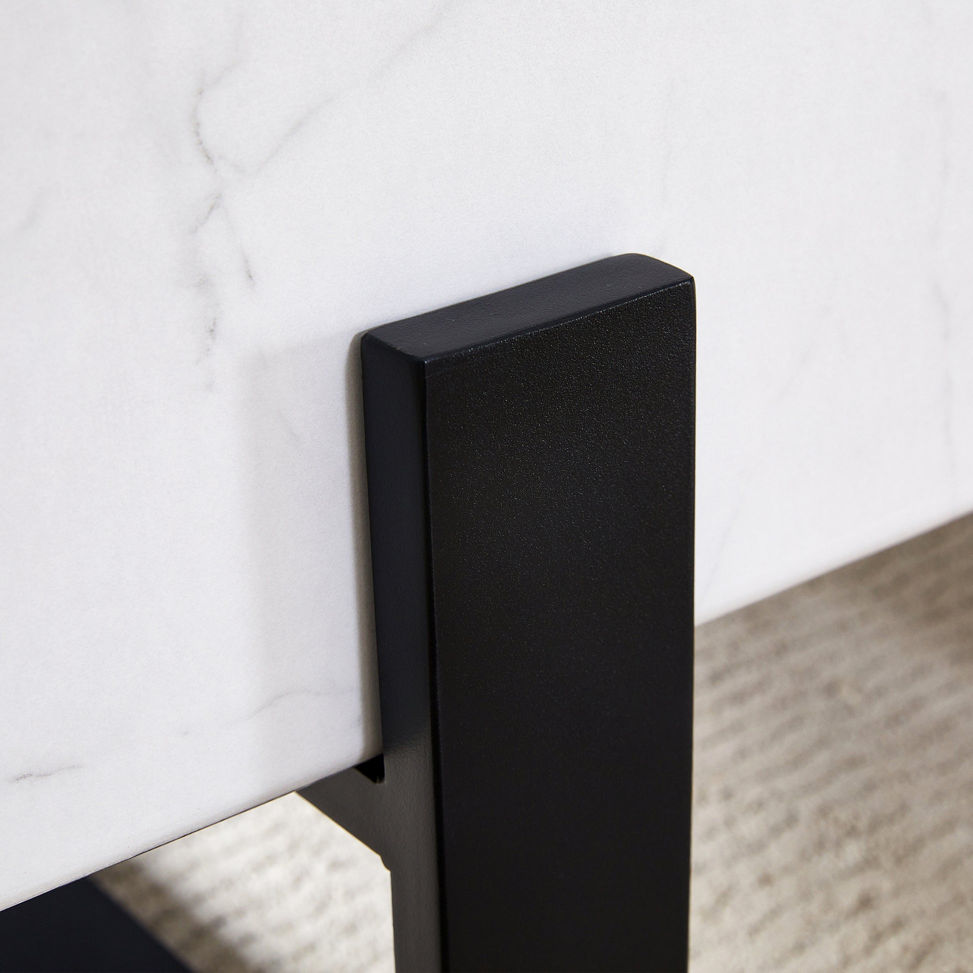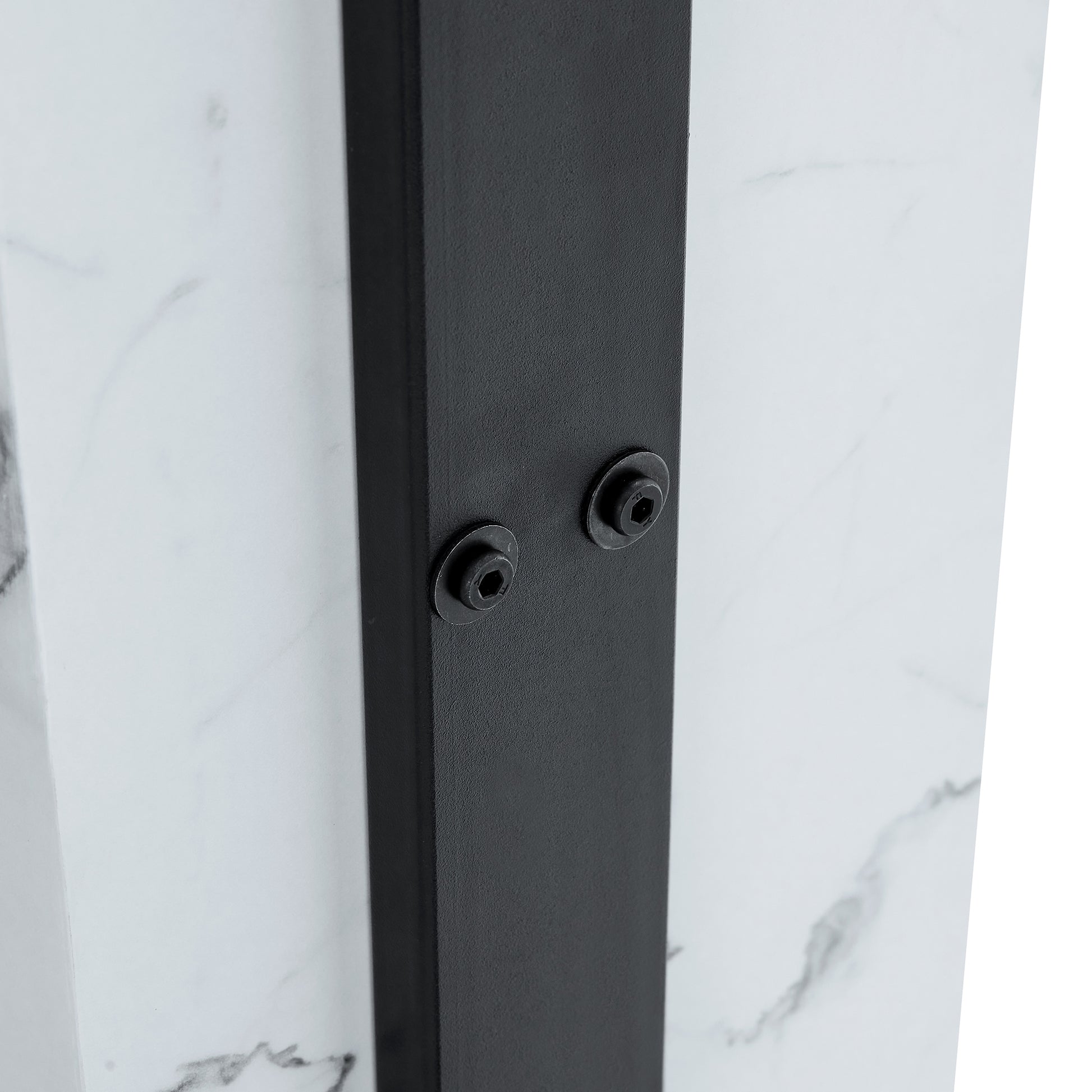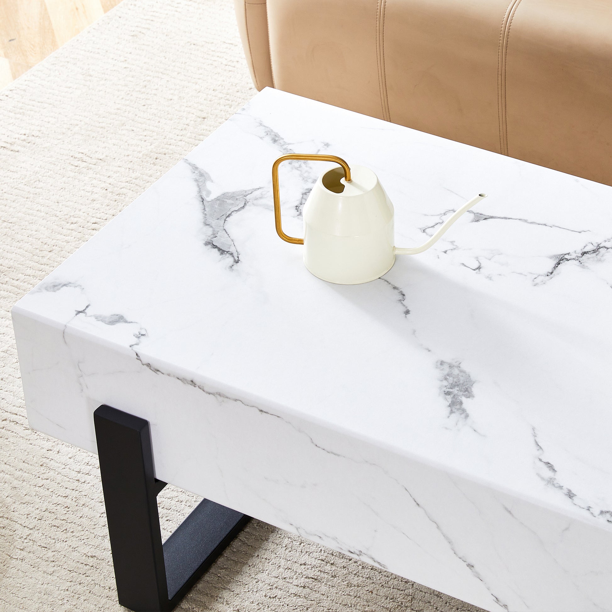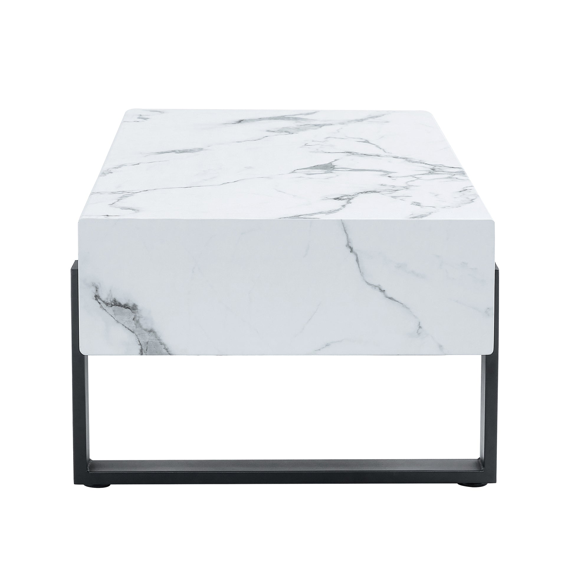 47.2"X23.6" Black And White Minimalist Mdf Marble Patterned Coffee Table.White Marble Pattern Sticker,Black Metal Leg Spray Coating,Mdf Coffee Table.Showcasing A Modern And Simple Style. White Black