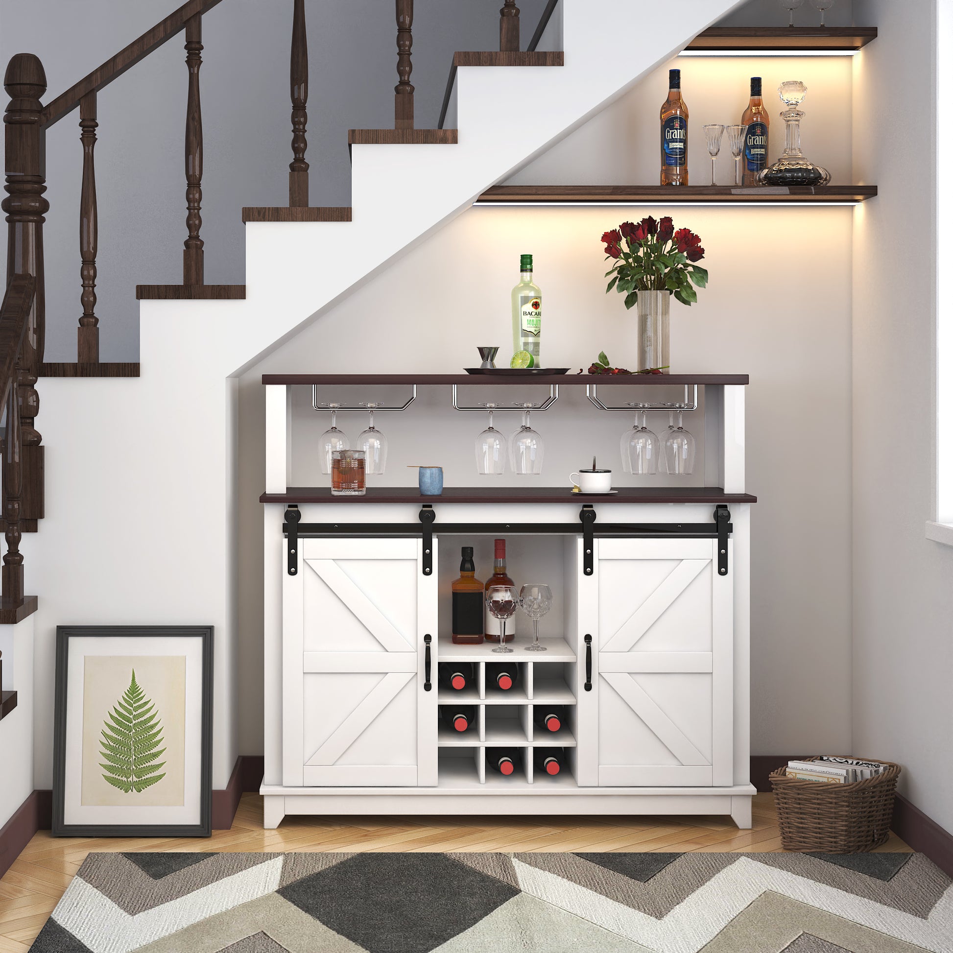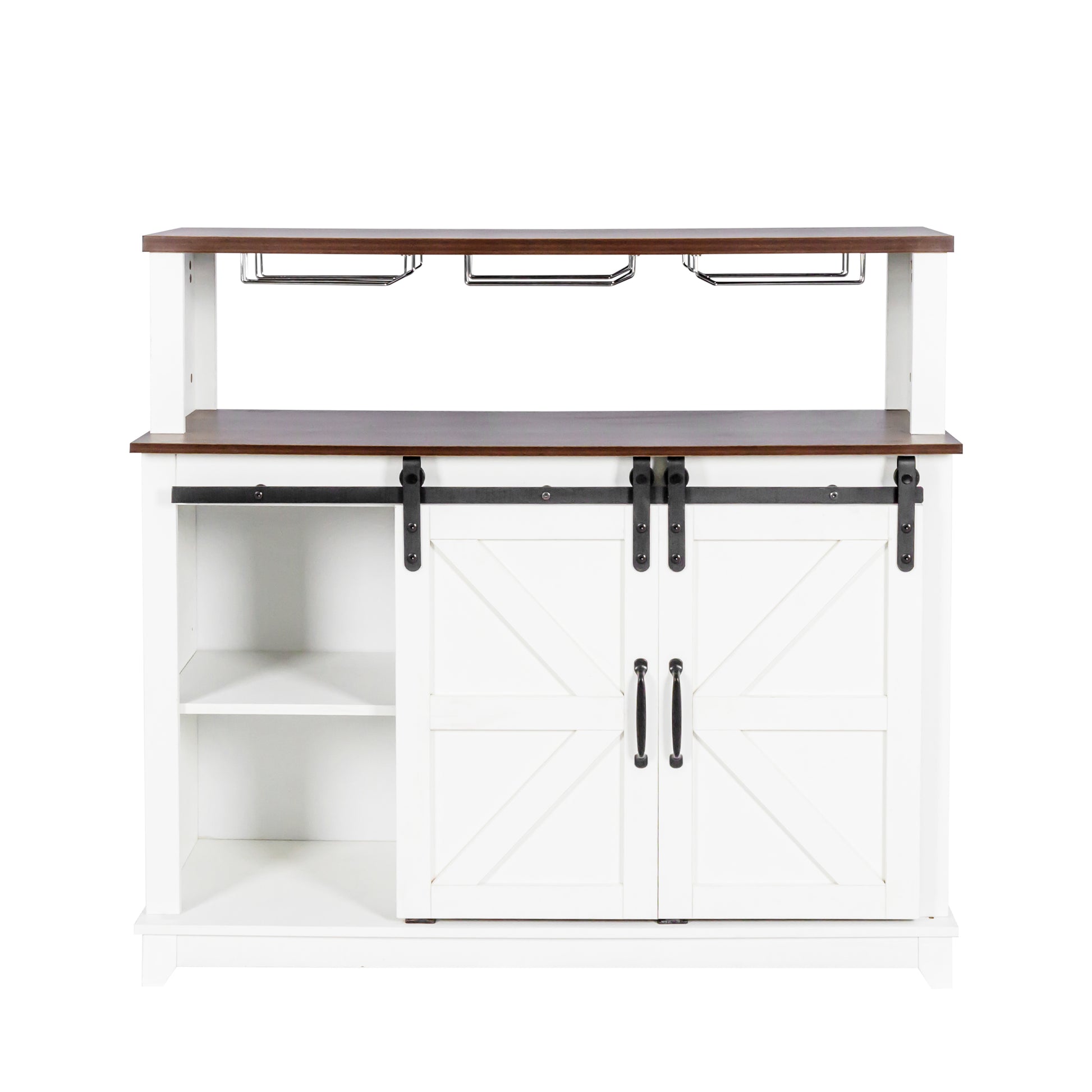 47" Coffee Bar Wine Cabinet With Sliding Barn Doorsideboard Buffet Cabinet With Wine Bottle Rack, Storage Cabinet For Kitchen, Dining Room White Particle Board Mdf