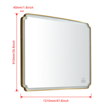48*36 Led Lighted Bathroom Wall Mounted Mirror With High Lumen Anti Fog Separately Control Gold Aluminium