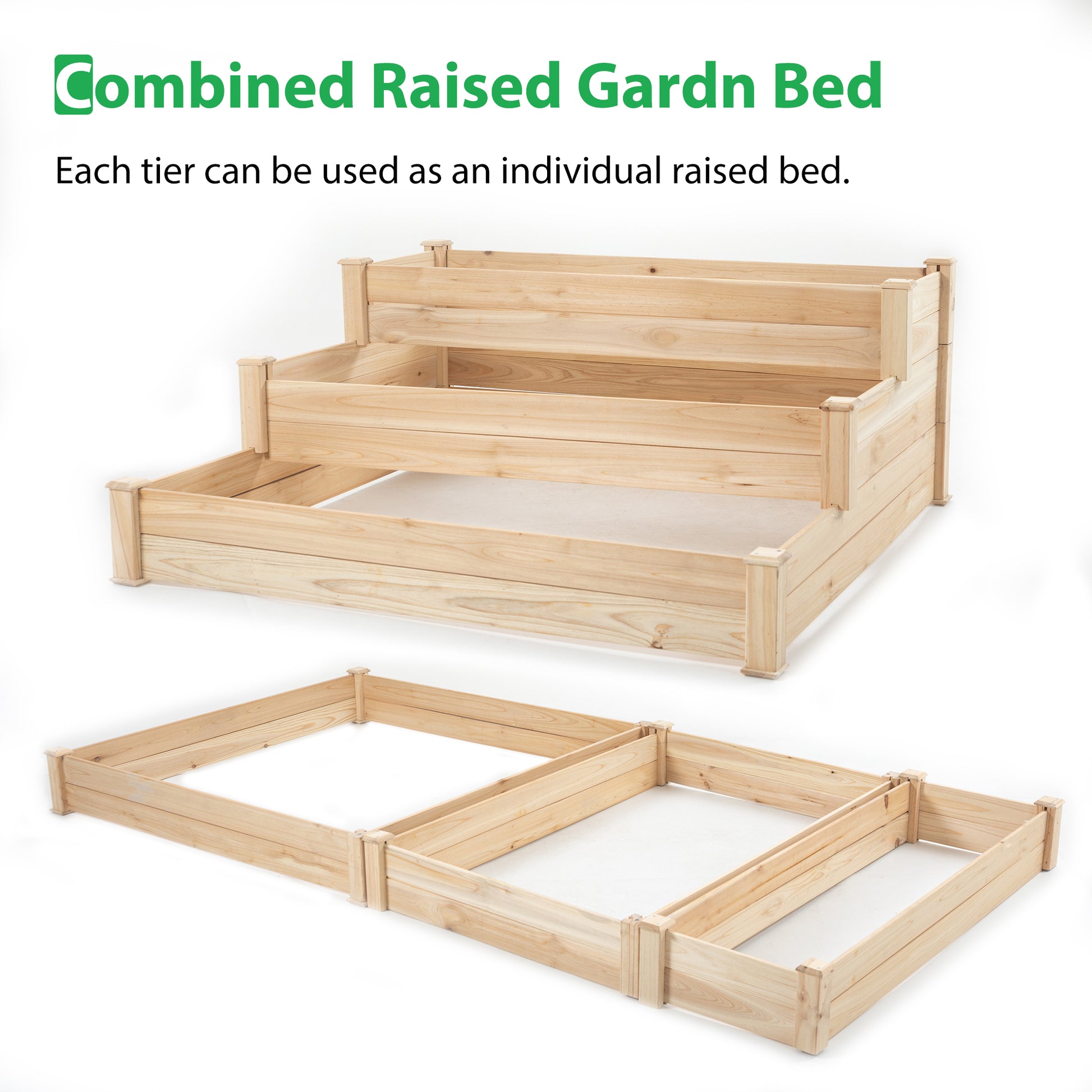 48.6 X 48.6 X 21In Raised Garden Bed Horticulture Outdoor Elevated Flower Box Tiered Garden Bed Wooden Vegetables Growing Planter For Backyard Patio Gardener Natural Natural Solid Wood