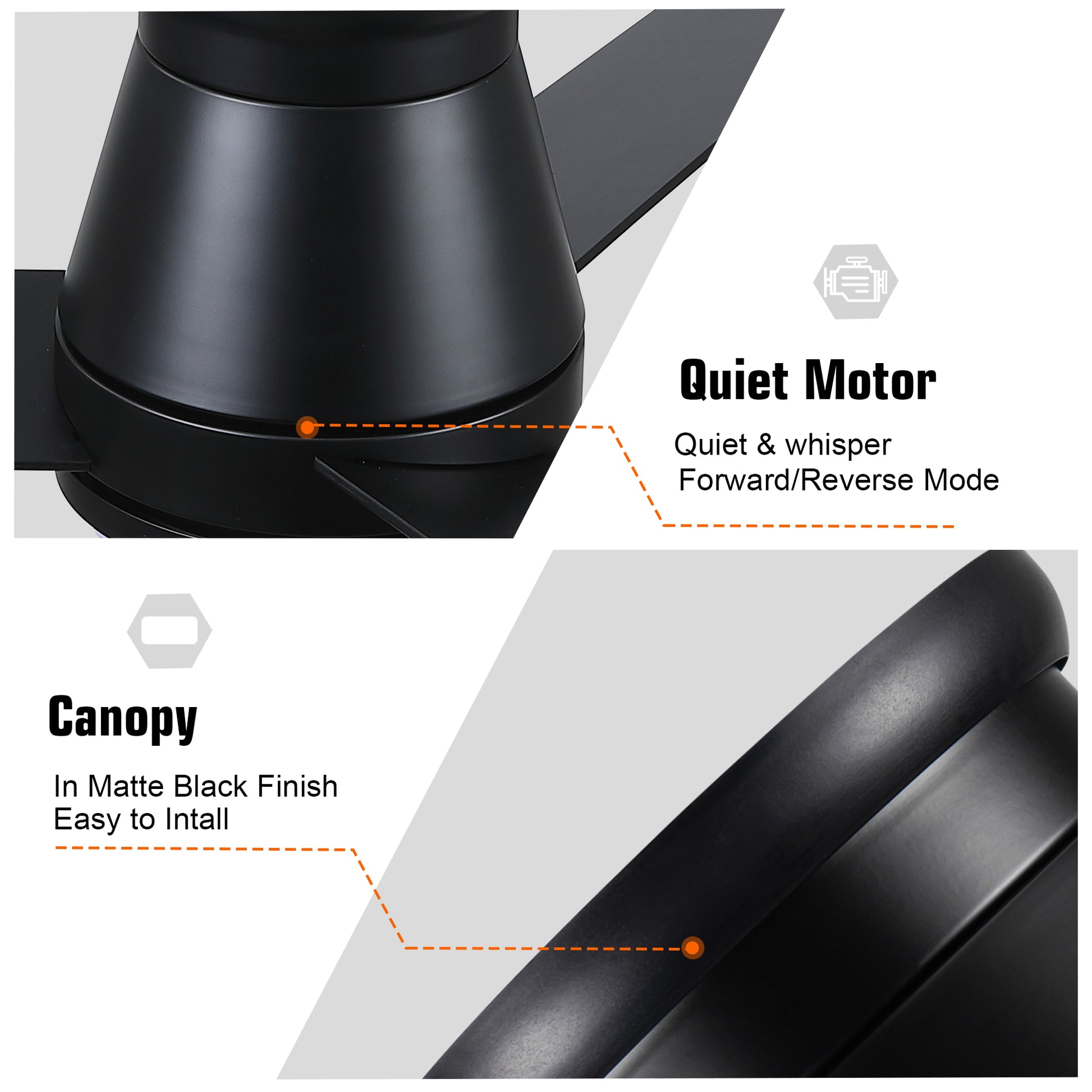 48" Black Lowe Profile Ceiling Fan With Light Black Plywood