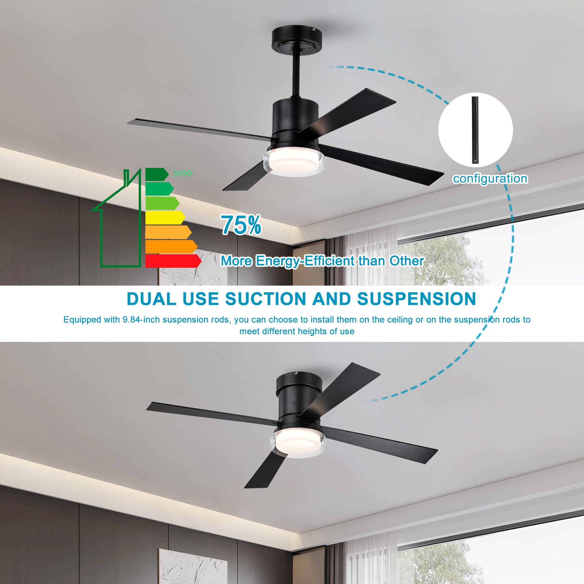 48'' Fandelier Ceiling Fans With Lights And Remote, Low Profile Ceiling Fan Flush Mount & Hang, 3000K 6500K Dimmable Led Fan Light, White Modern Ceiling Fans With Lights For Bedroom Matte Black Ceiling Fans 2700K 3000K Warm White Under 1000Lm American