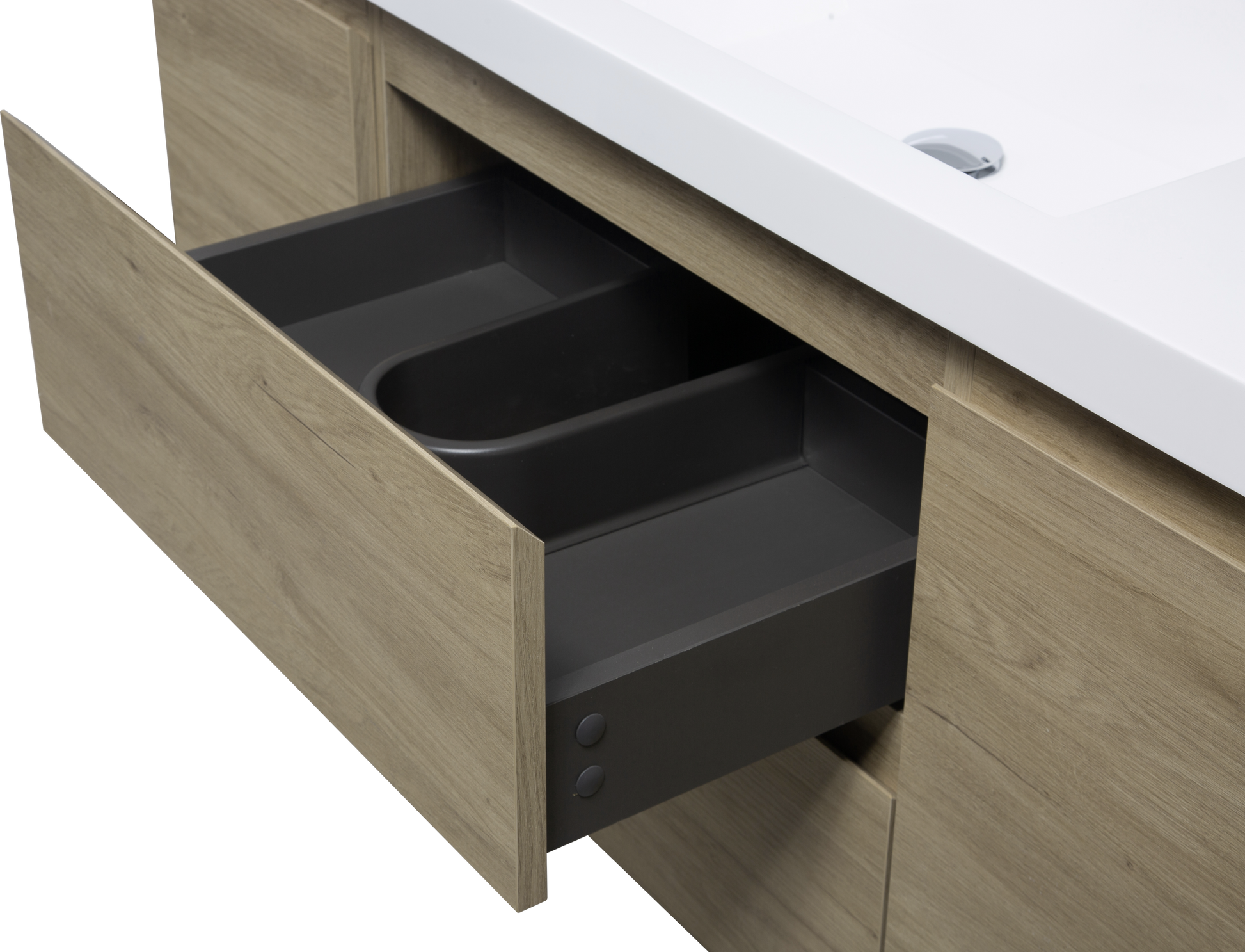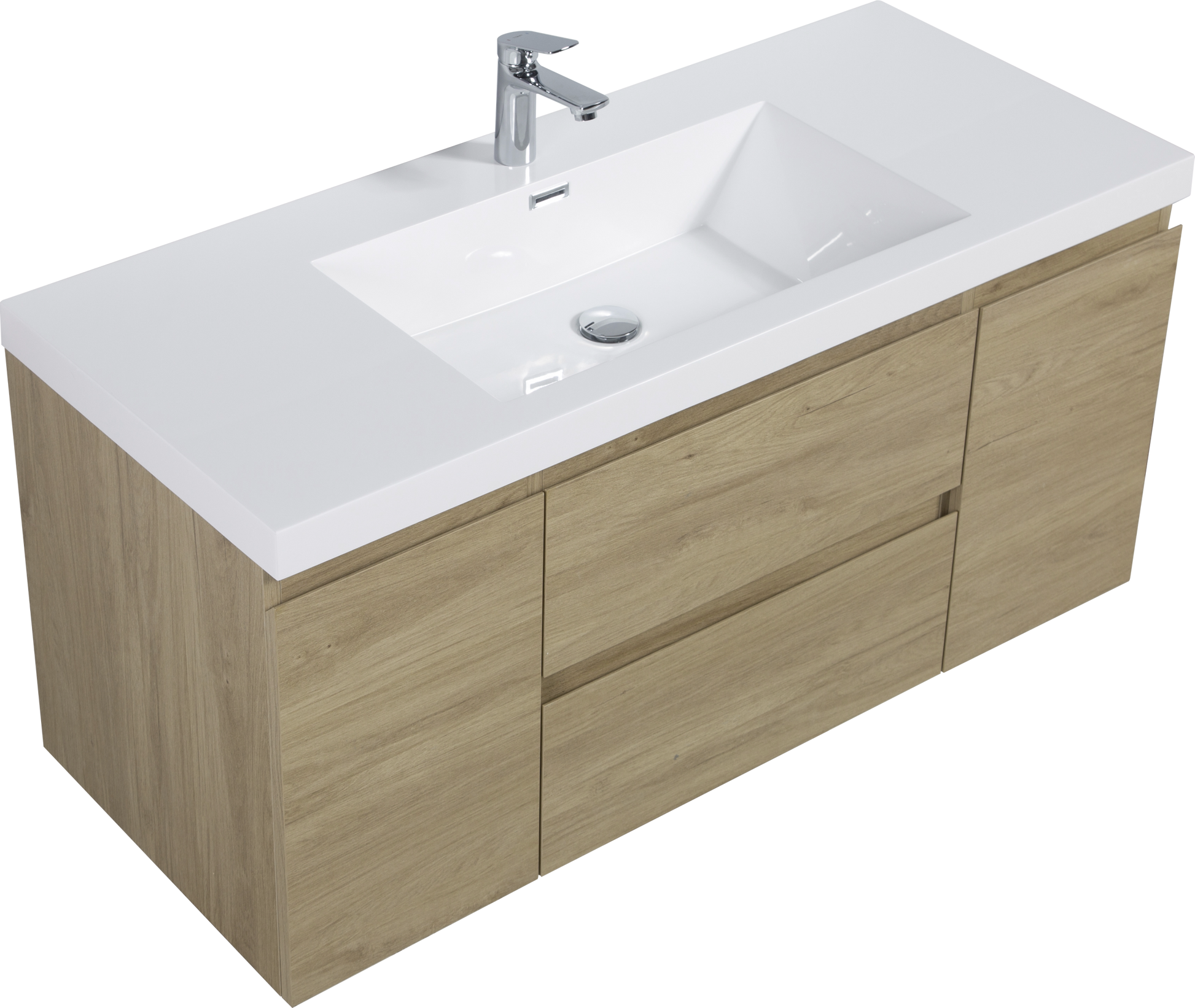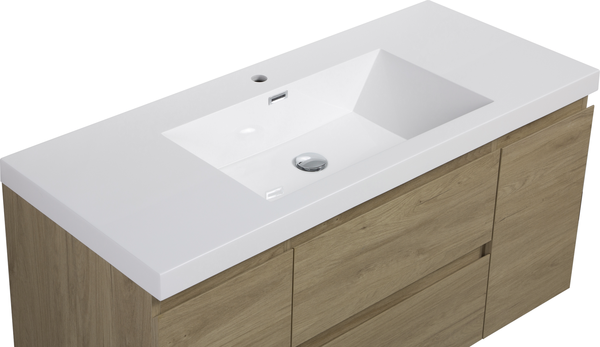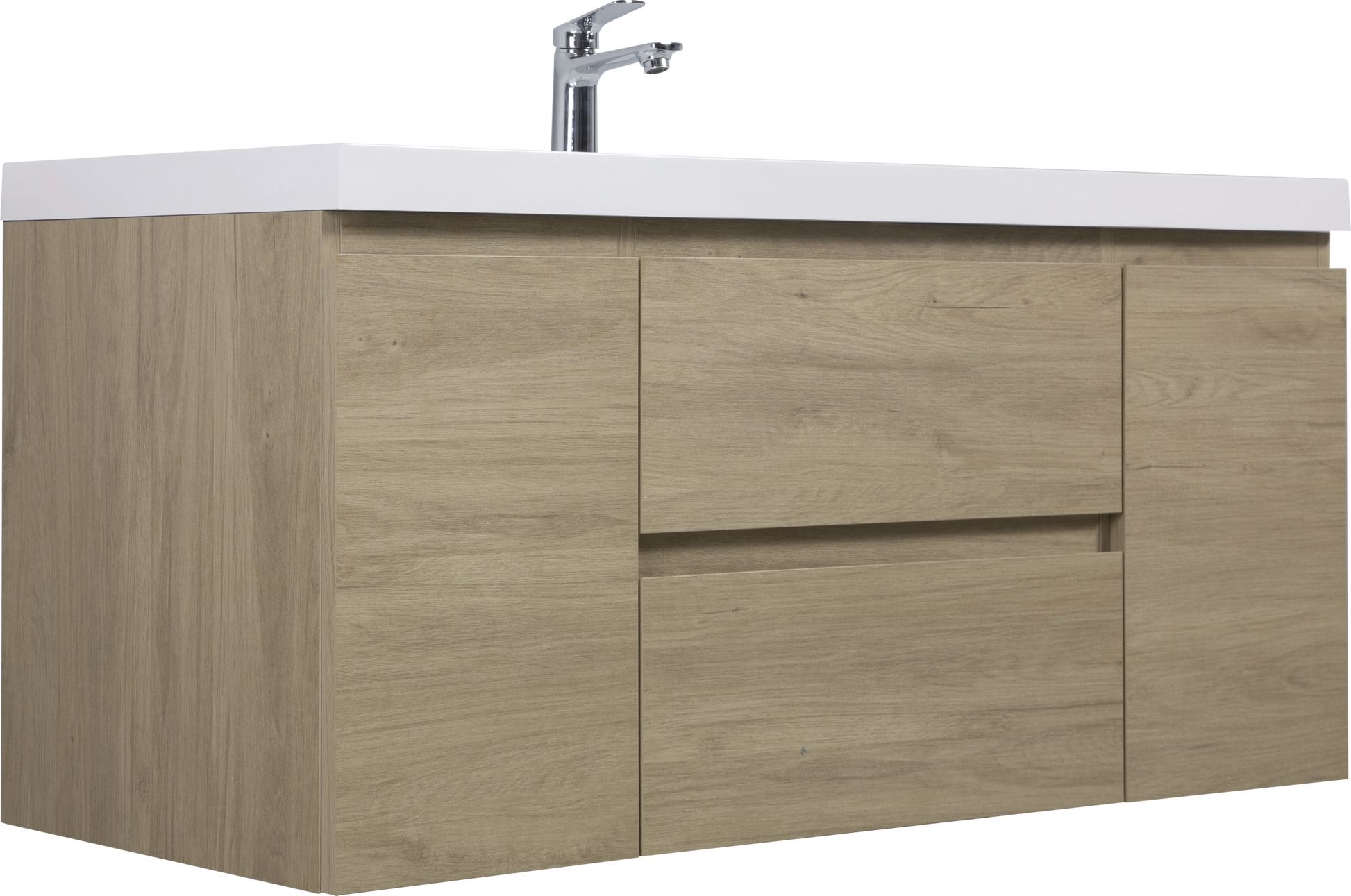 48" Floating Bathroom Vanity With Sink, Modern Wall Mounted Bathroom Storage Vanity Cabinet With Resin Top Basin And Soft Close Drawers, Natural Oak 24V11 48No 2 Oak 2 Bathroom Wall Mounted Melamine