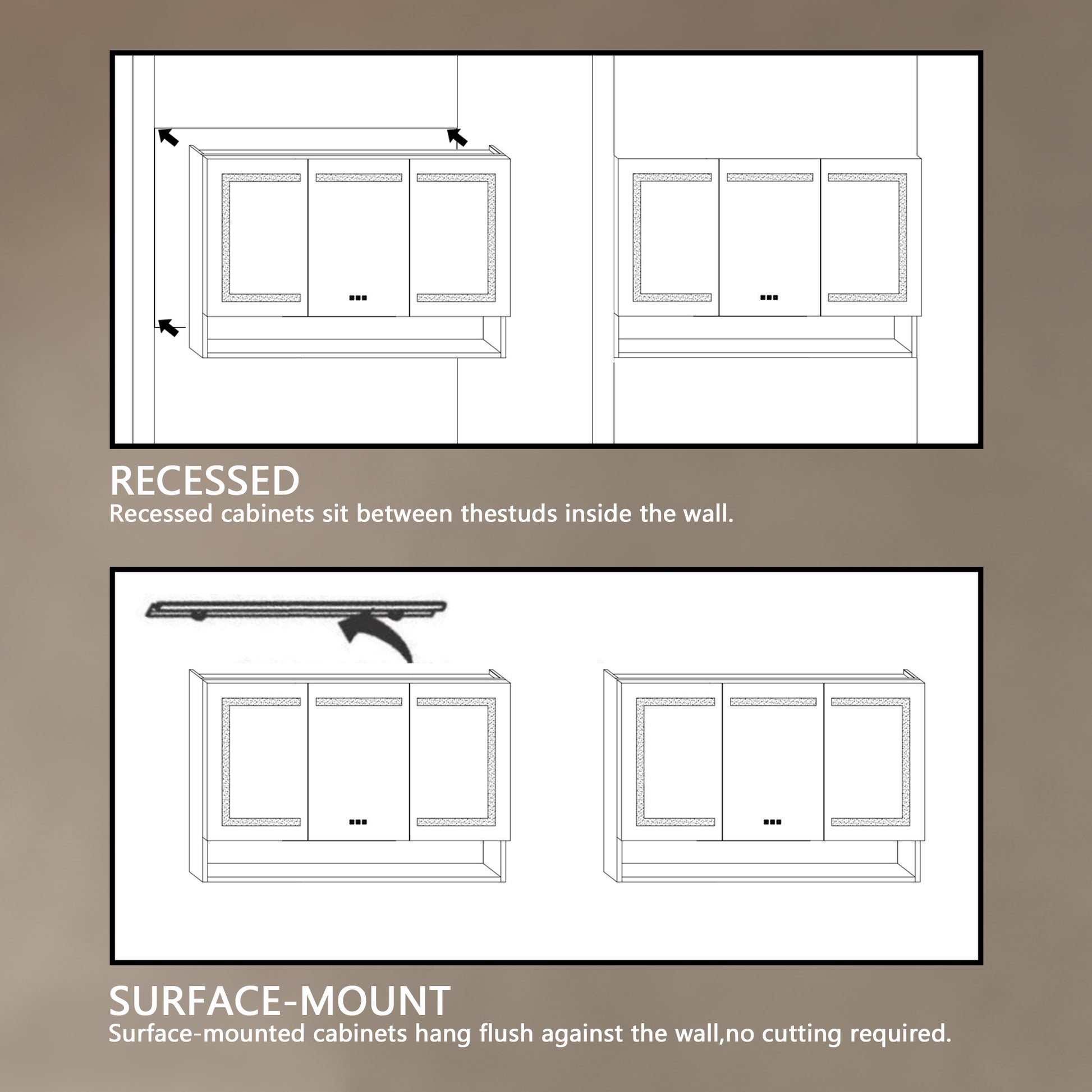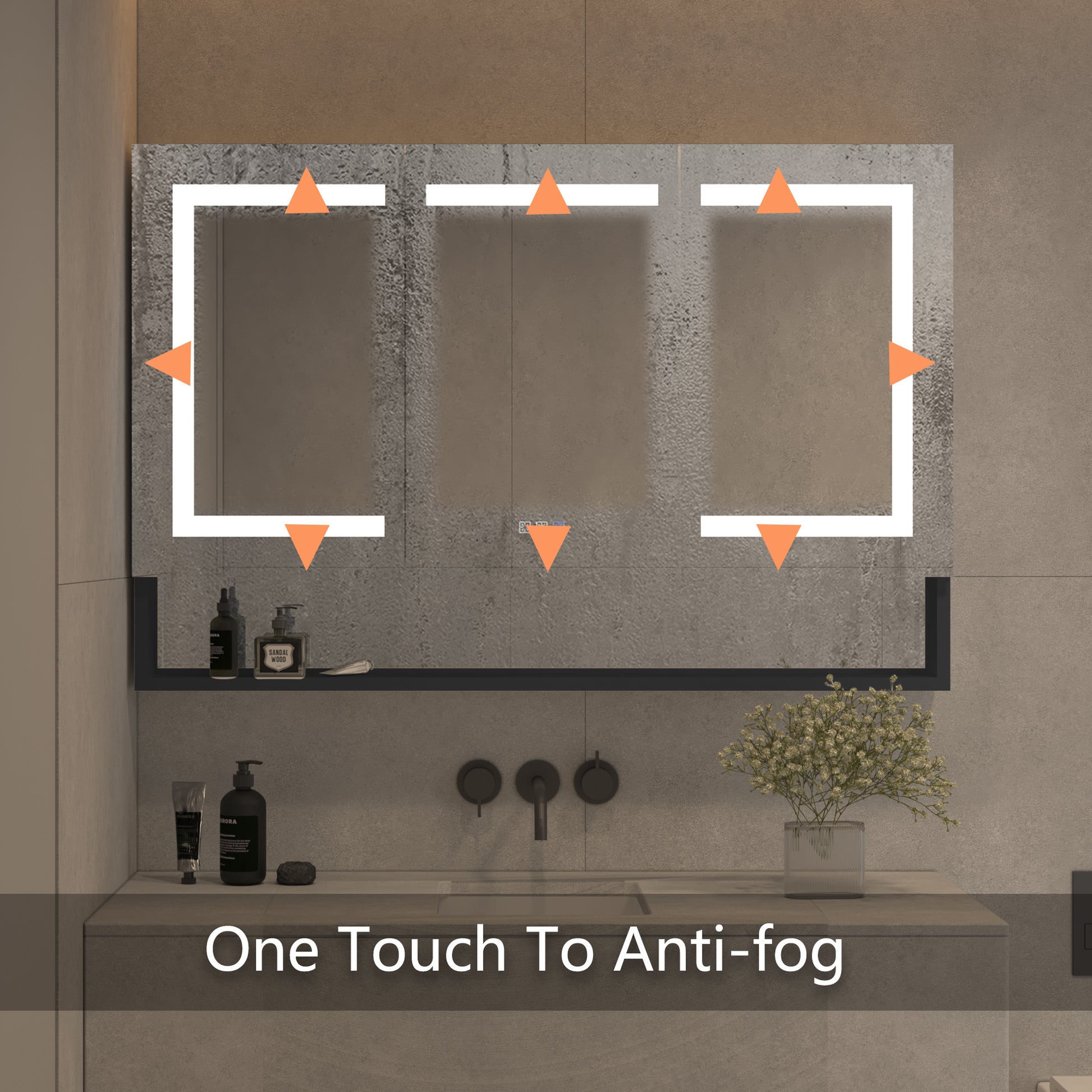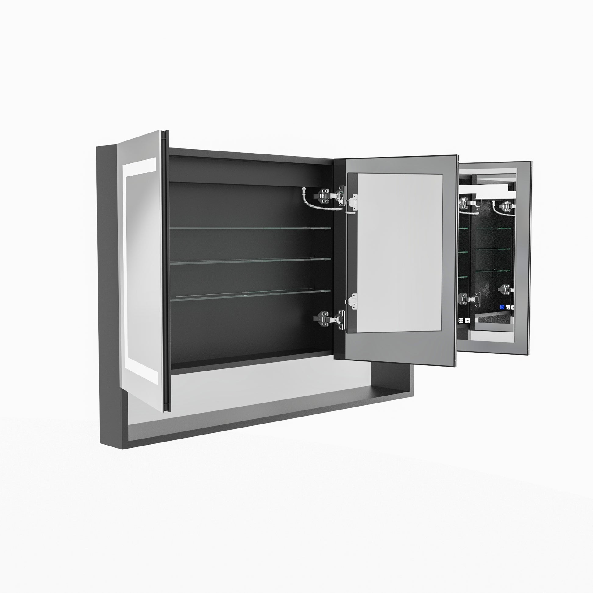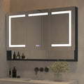 48 In. W X 32 In. H Silver Aluminum Recessed Surface Mount Dimmable Medicine Cabinet With Mirror, Led And Shelves Black Aluminium