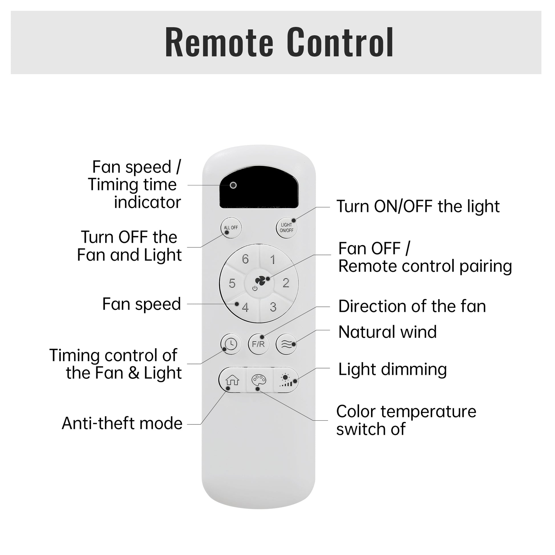 48 Inch Ceiling Fan With Dimmable Led Light And Remote Control, 5 Abs Blades Dc Motor Black Black Abs