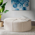 48" Ottoman,Polyester Fabric Large Cocktail Ottoman Modern Style For Living Room, Cream Cream Solid Wood